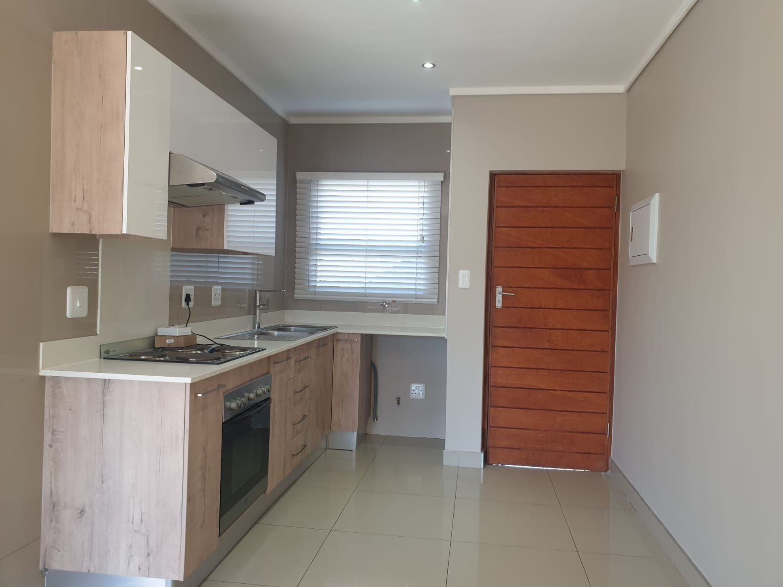 This unit screams of luxury with modern finishes. Fully tiled with an open plan living/dining area overlooking your stunning kitchen with granite tops, double sink, oven with hob and an extractor fan. 2 spacious bedrooms and 2 bathrooms, 1 en-suite. Big patio with a built-in braai over looking your luscious green garden. Double motorised garage.