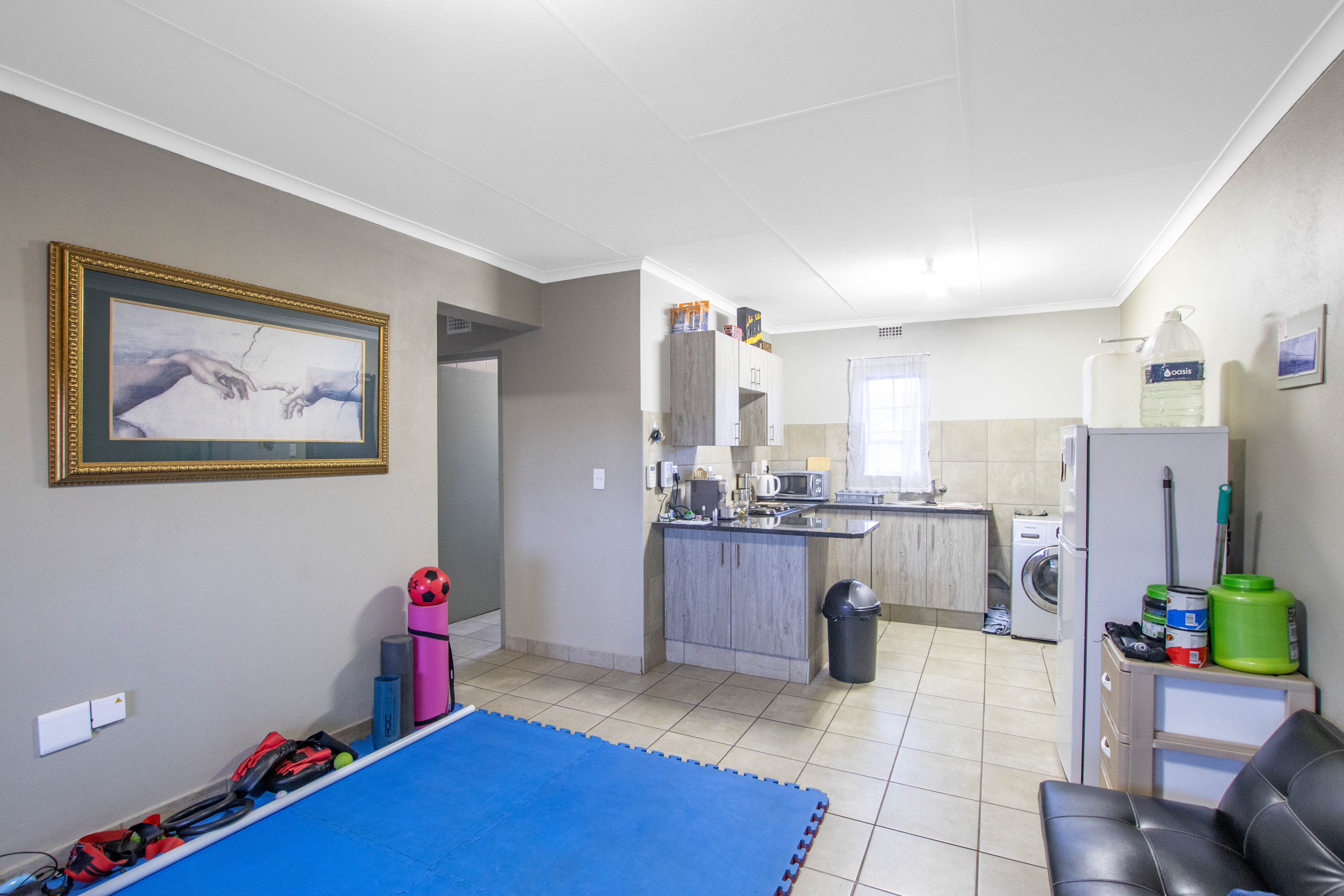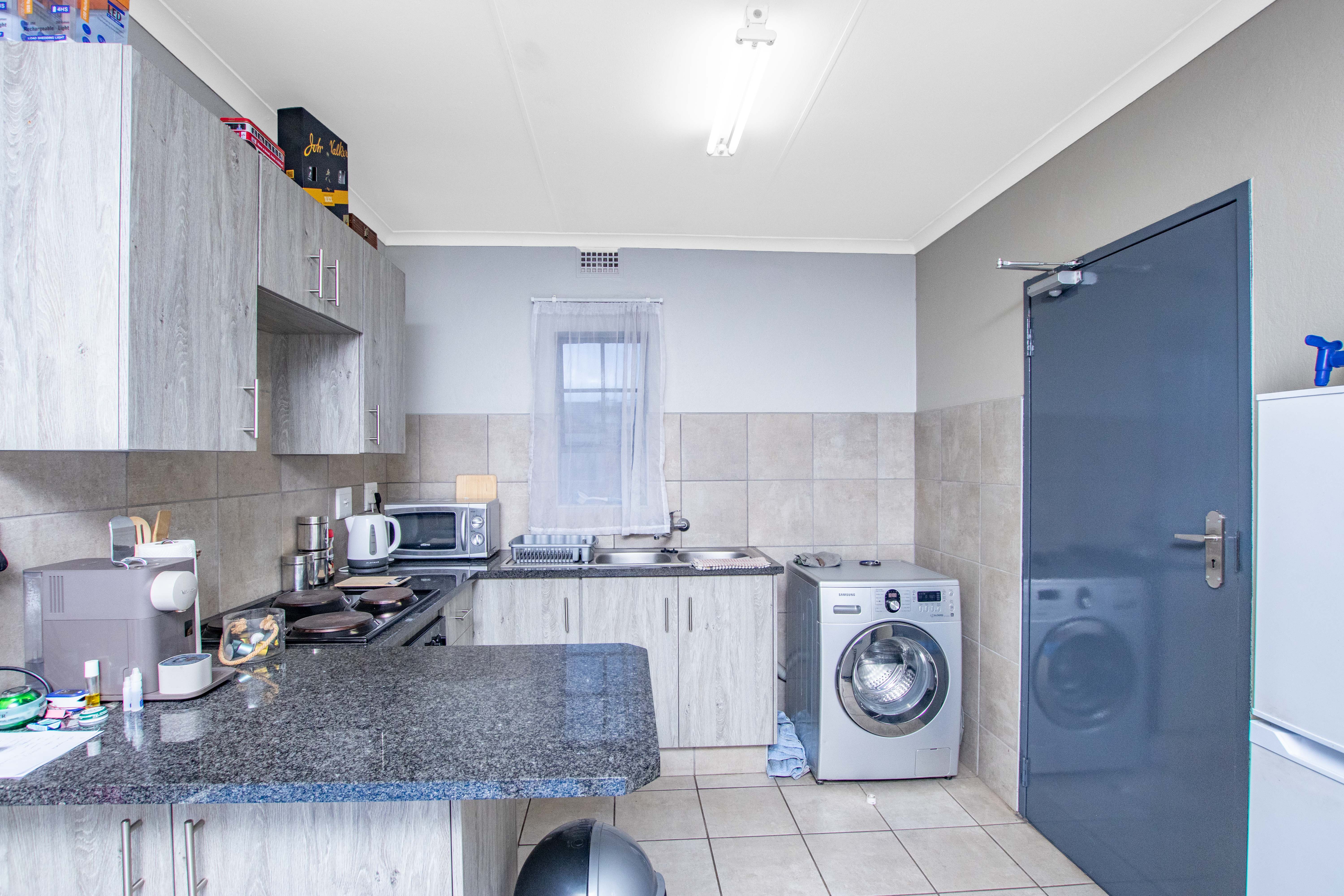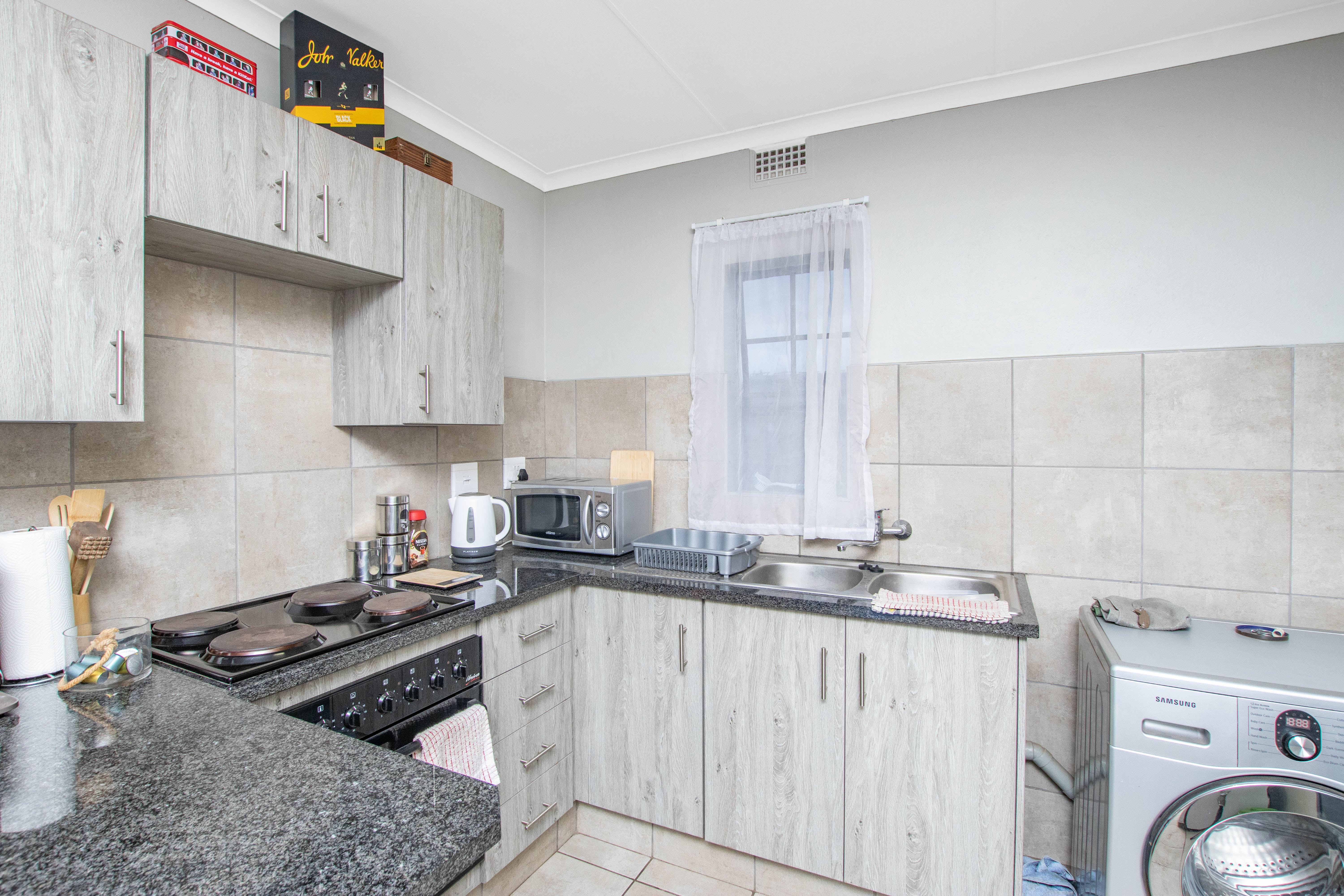 Welcome to your ideal two-bedroom, one-bathroom apartment, where modern design and comfort come together effortlessly. Step into the open-plan living area that seamlessly integrates the spacious lounge, dining space, and a stylish kitchen, creating a welcoming and airy atmosphere. The kitchen is a true highlight, featuring sleek finishes, an electric stove, and plenty of cupboard space. A dedicated spot for a single appliance and a cozy breakfast nook add both functionality and charm to this culinary space. Natural light pours into the lounge, filling the room with a bright, uplifting ambiance. Sliding glass doors lead you to a private balcony, extending your living space and offering the perfect spot to enjoy your morning coffee or evening breeze. This well-designed apartment offers two generously-sized bedrooms, each with ample cupboard space, providing cozy retreats for relaxation. The full bathroom, with its modern fixtures and finishes, completes the home, offering both luxury and practicality. Every detail of this apartment has been thoughtfully crafted to enhance your living experience. Enjoy the perfect blend of style, comfort, and convenience in this charming two-bedroom gem. Welcome home.