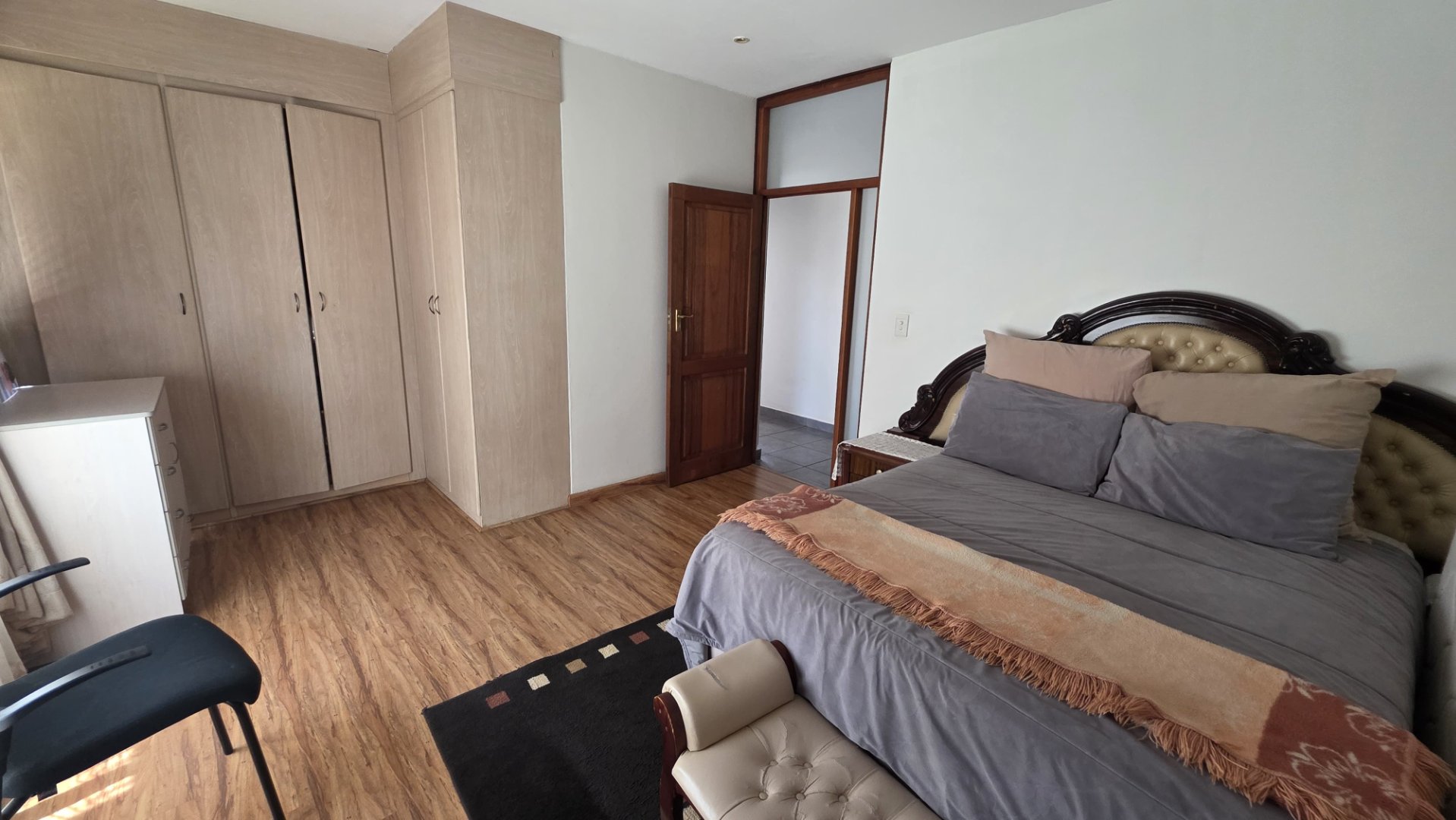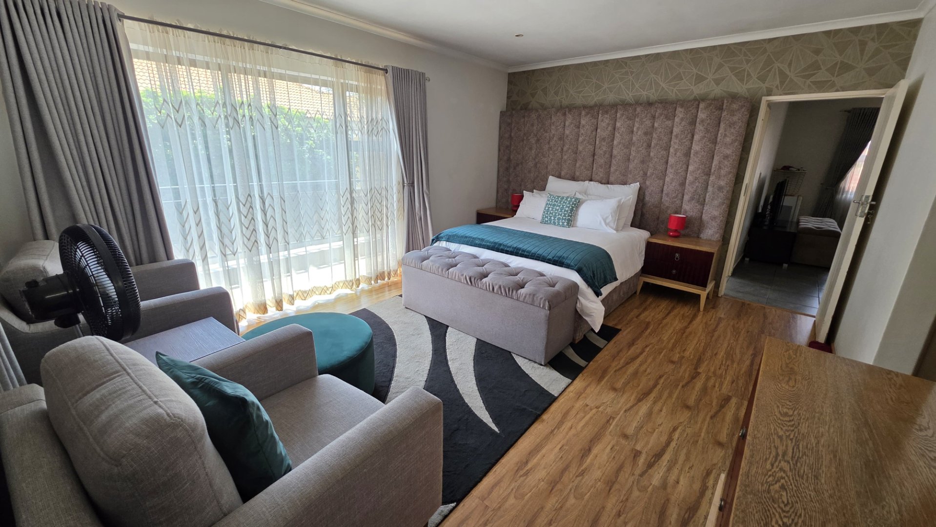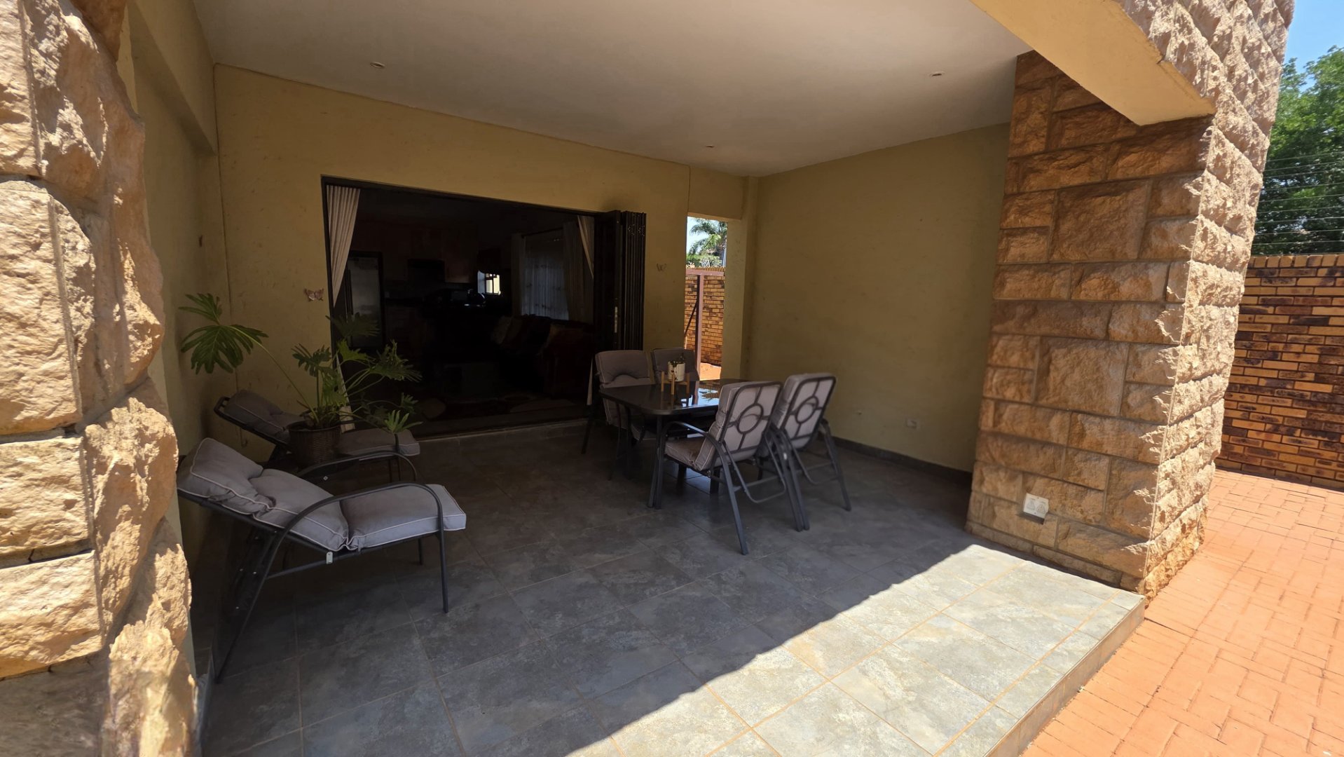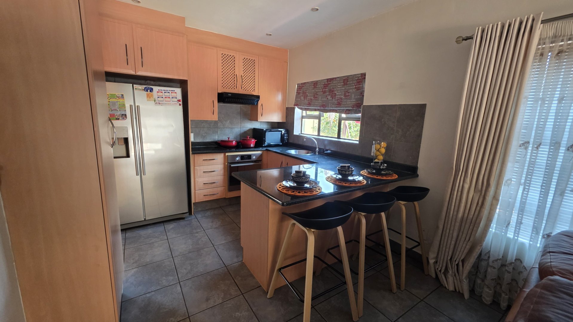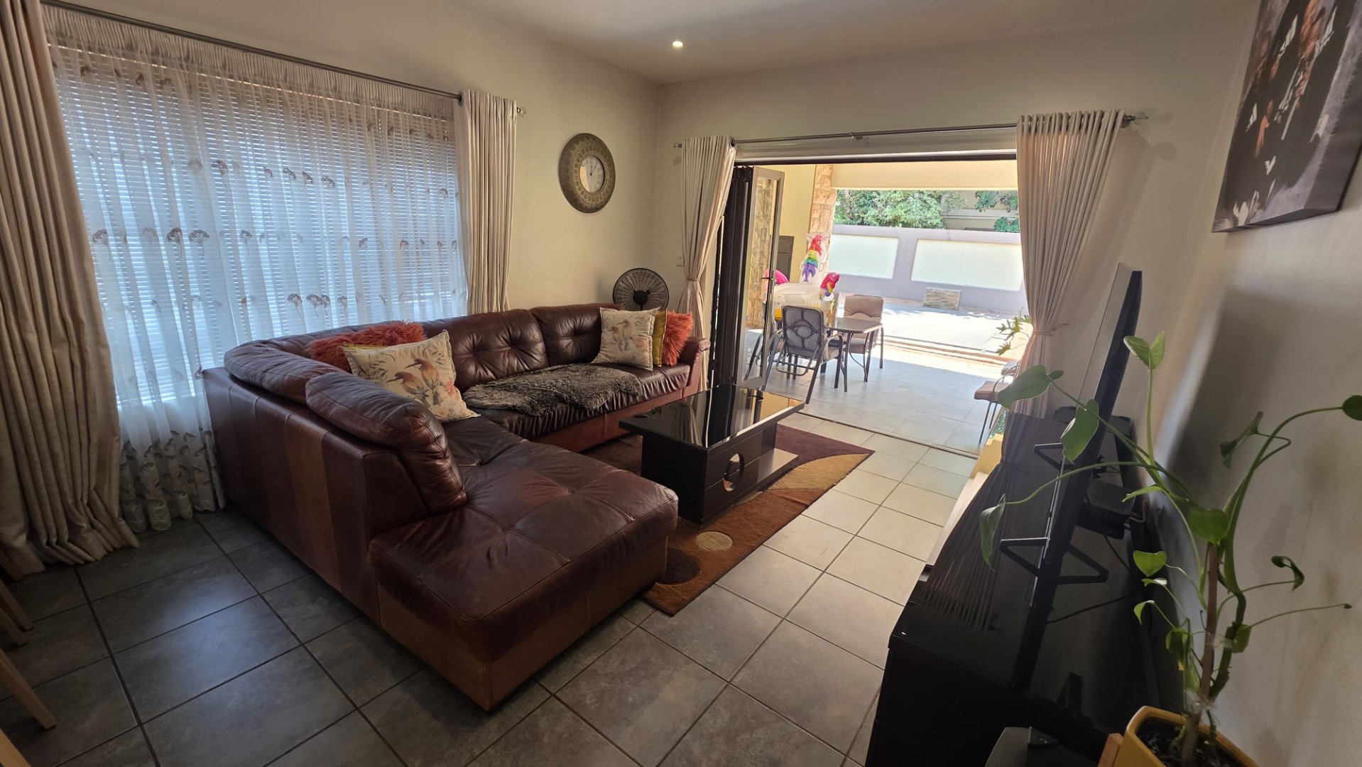 Situated in Montana Tuine with quick access to main roads, schools, hospitals, shopping malls, and nearby bus routes, this beautiful home offers comfort and convenience. It features 5 bedrooms with built-in cupboards, 2 fully tiled bathrooms, and a guest toilet. The open-plan dining and family rooms flow to an entertainment area with a built-in braai overlooking a lush garden and swimming pool with cover—perfect for entertaining. The modern kitchen includes granite countertops, a breakfast nook, and a scullery. Additional features include 2 garages, 2 open parkings, staff quarters, a Lux Power 5kW inverter with 5kW lithium battery, and a solar geyser. Located in a secure estate with 24h access control, clubhouse, communal braai area, pool, tennis court, and kids’ play area. Call today to view!