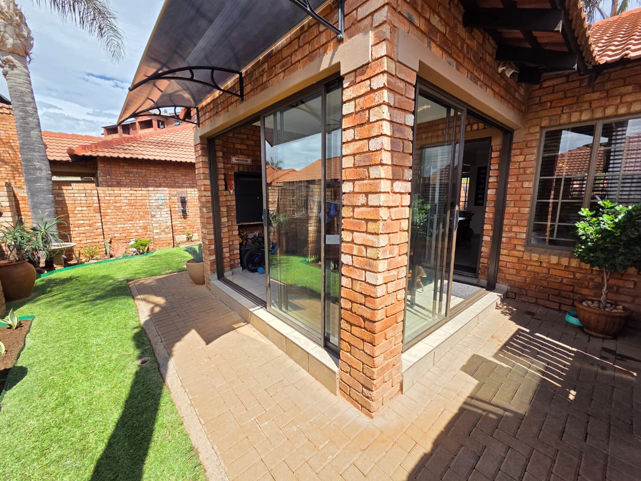 Located in a secure and sought-after complex, this charming home offers comfort, convenience, and easy access to essential amenities and main routes. The property features two well-sized bedrooms and one bathroom, making it ideal for first-time buyers, investors, or those looking to downscale. A comfortable lounge and dining area create a welcoming living space, while the beautiful open-plan kitchen is both practical and inviting for everyday living. The living area flows onto a braai patio enclosed with aluminium sliding doors and fitted with a built-in braai, perfect for year-round entertaining. A neat, well-maintained garden adds to the home’s appeal. Additional features include a single carport, extra parking space, solar geyser, air conditioning, three ceiling fans, prepaid electricity, and a convenient tool shed.