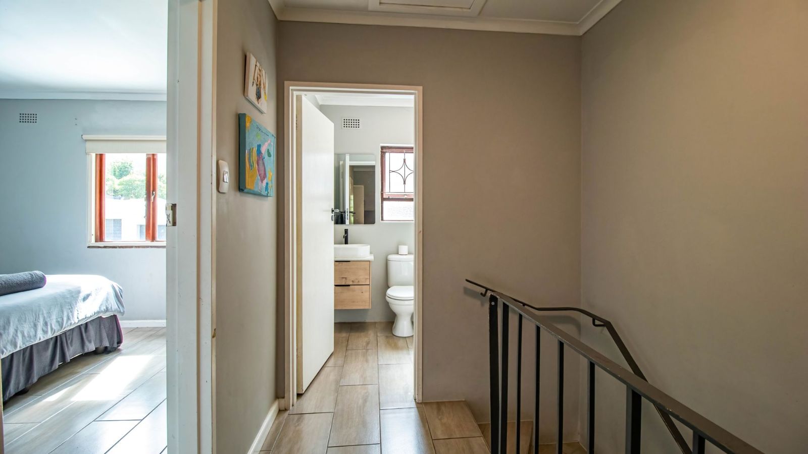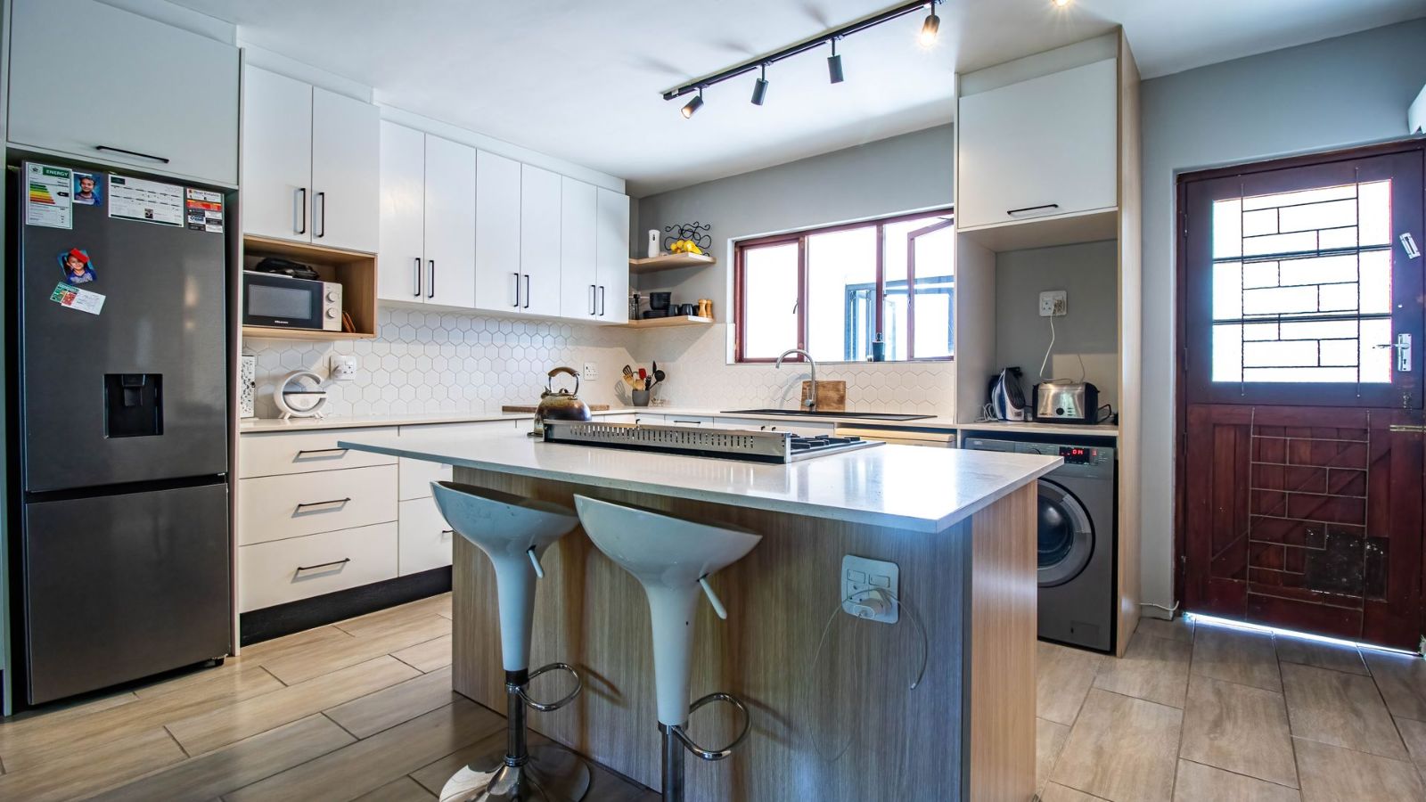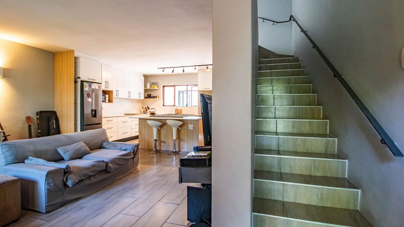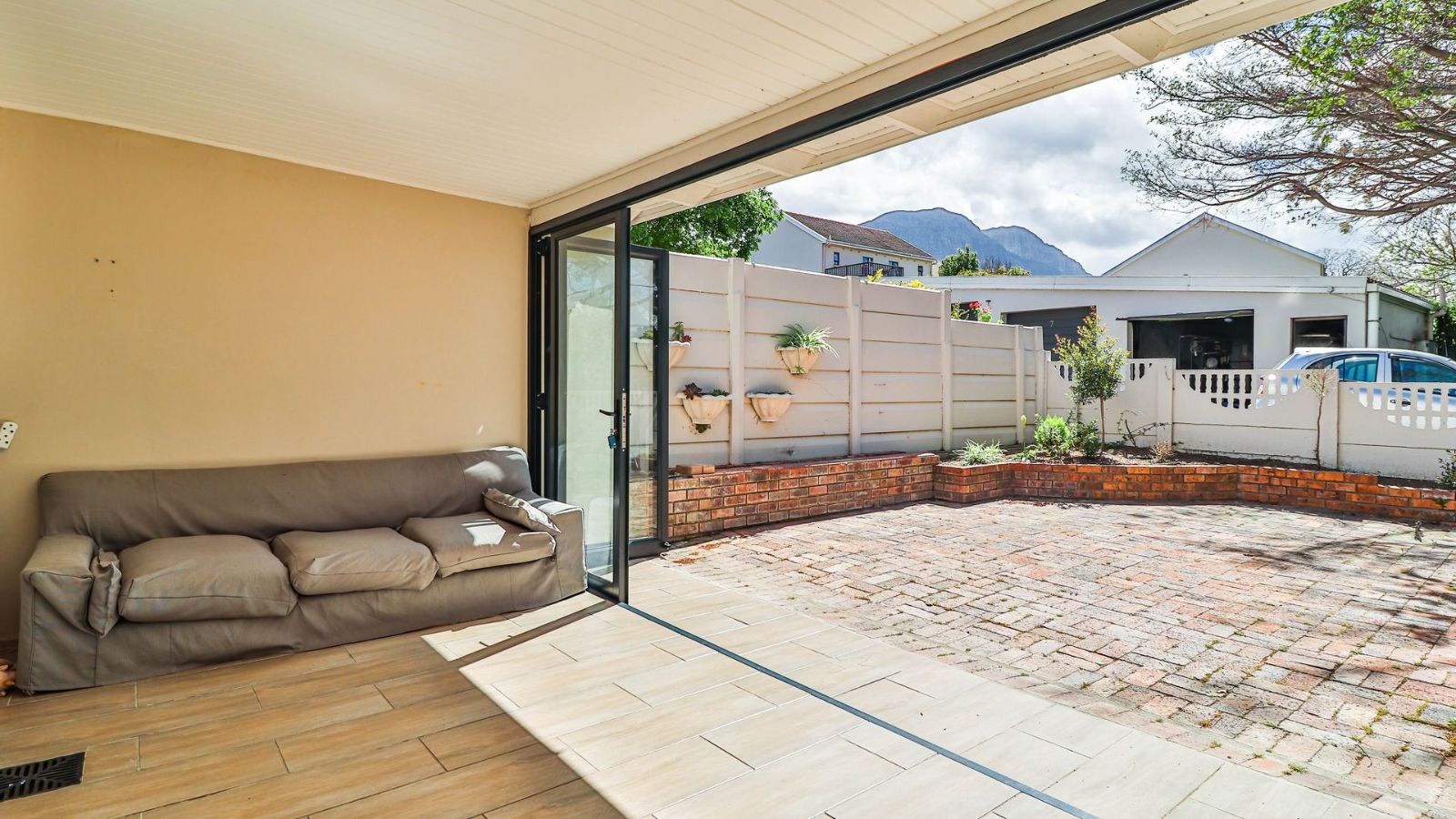 Situated in the "green heart" of Somerset West, this home is one of only eight double-story properties in a secure estate. It offers a central base for exploring the region's surrounding mountains, wine estates, nature reserves, and the sea.