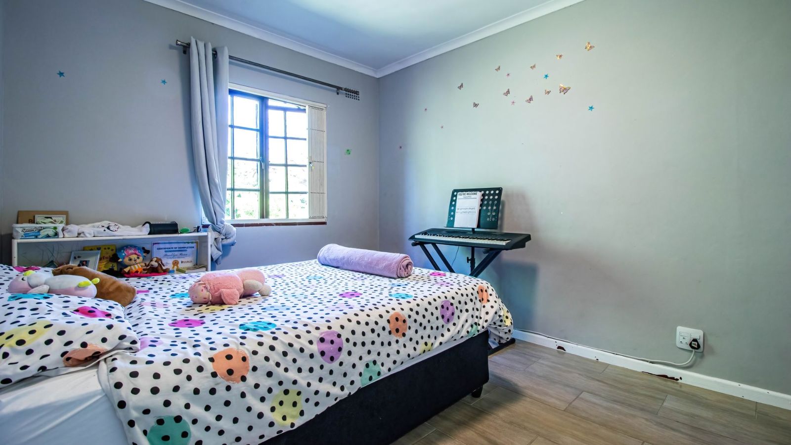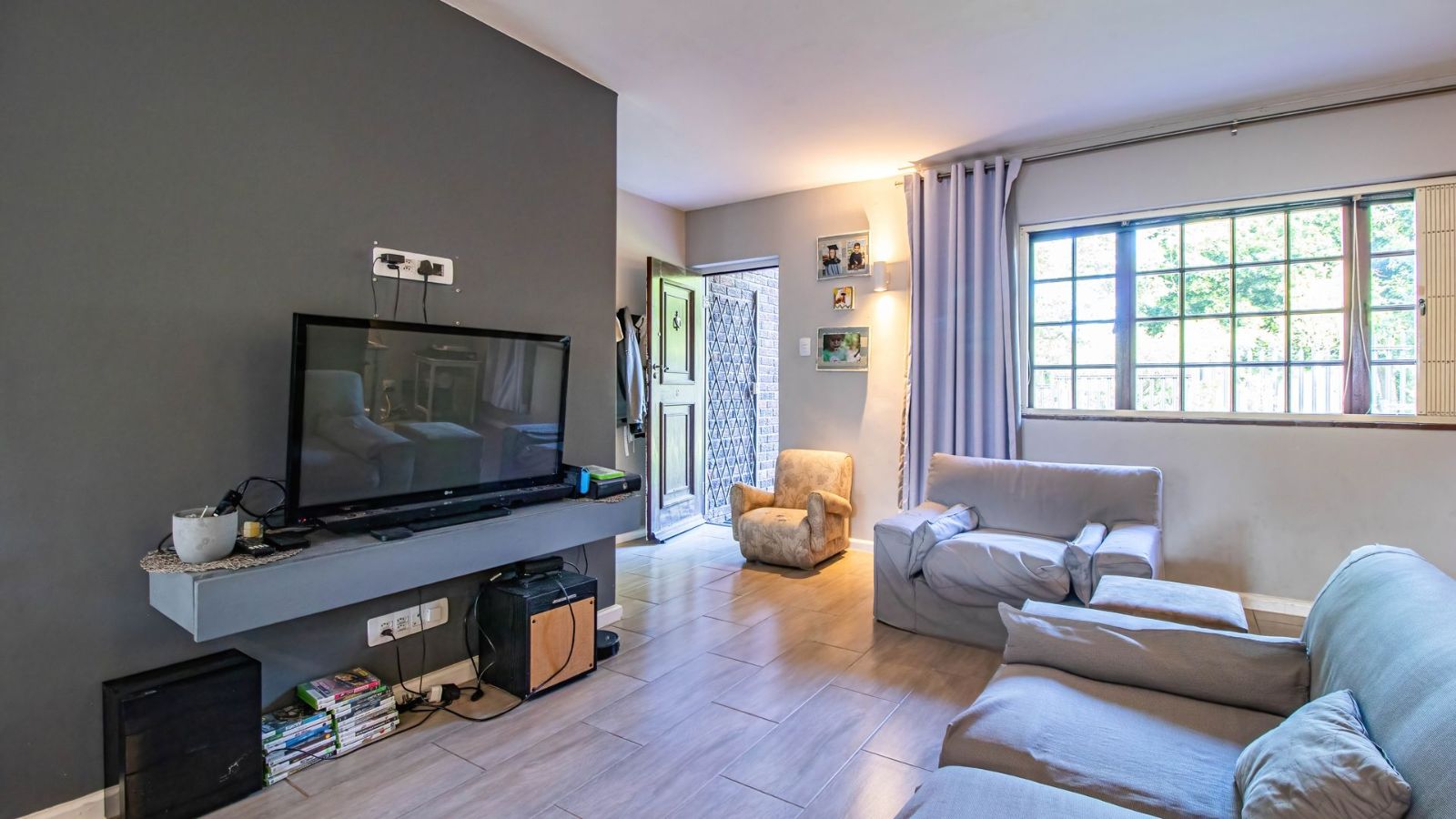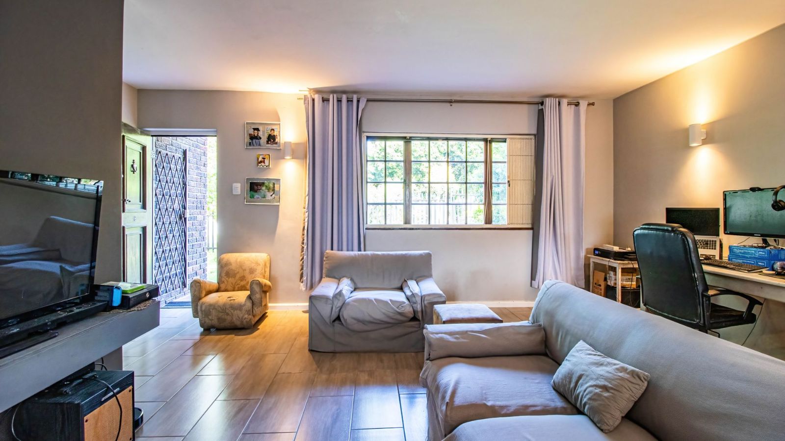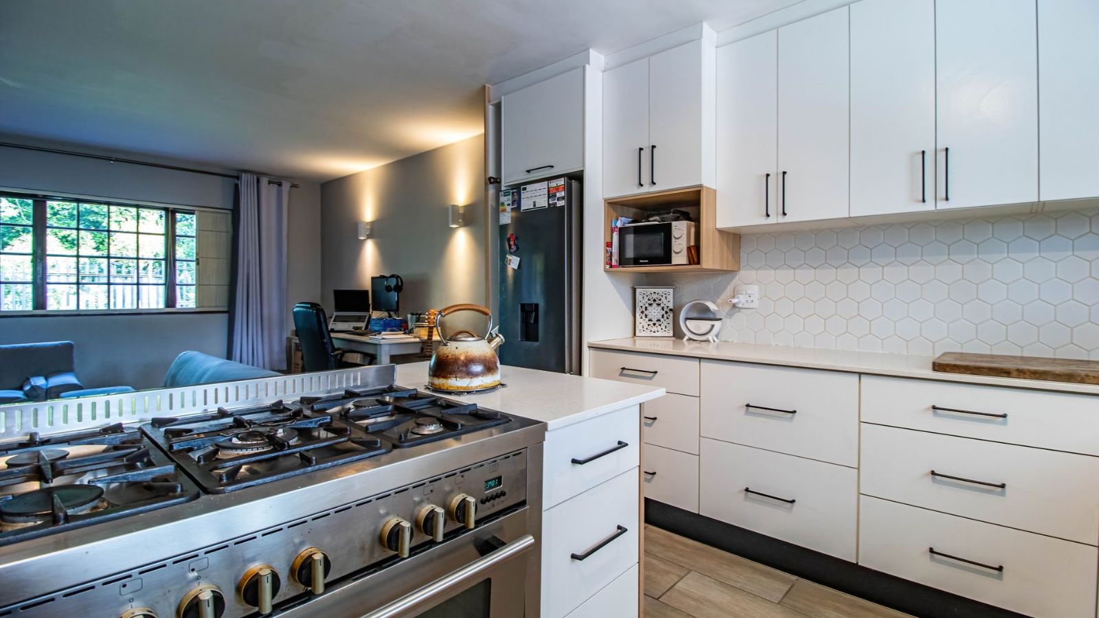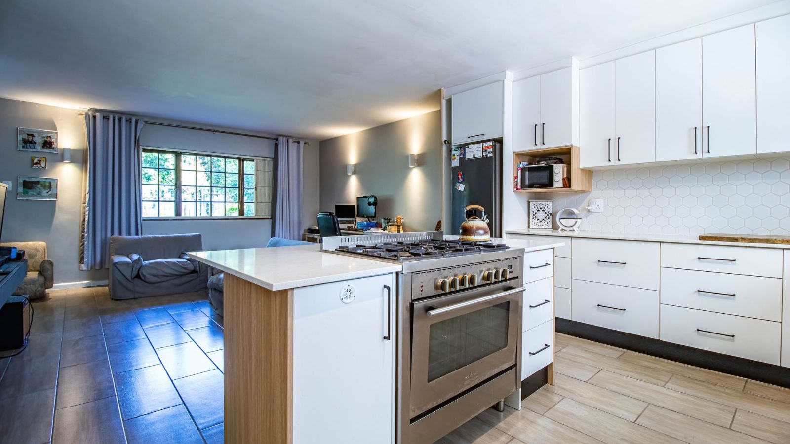 Situated in the "green heart" of Somerset West, this home is one of only eight double-story properties in a secure estate. It offers a central base for exploring the region's surrounding mountains, wine estates, nature reserves, and the sea.