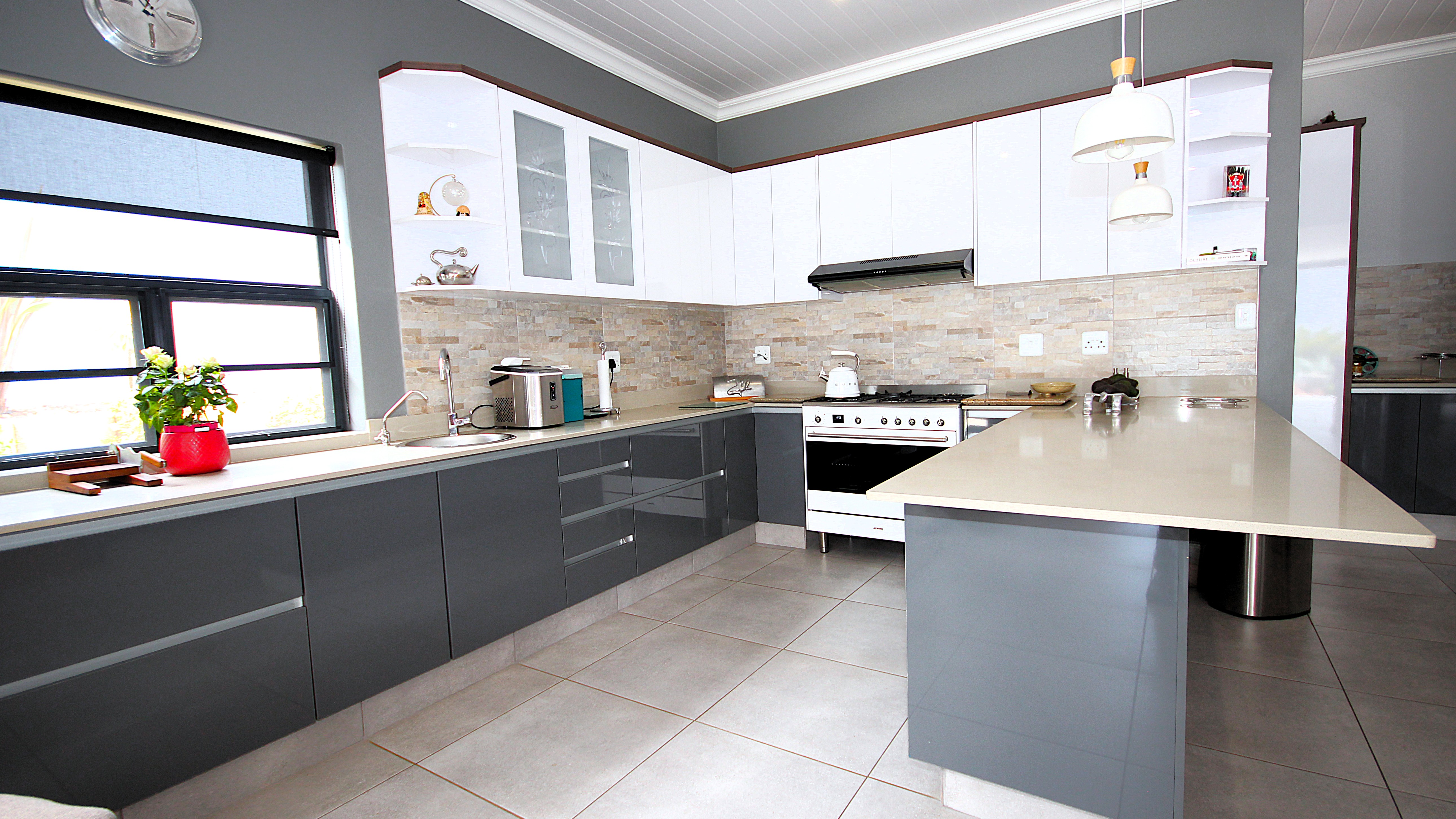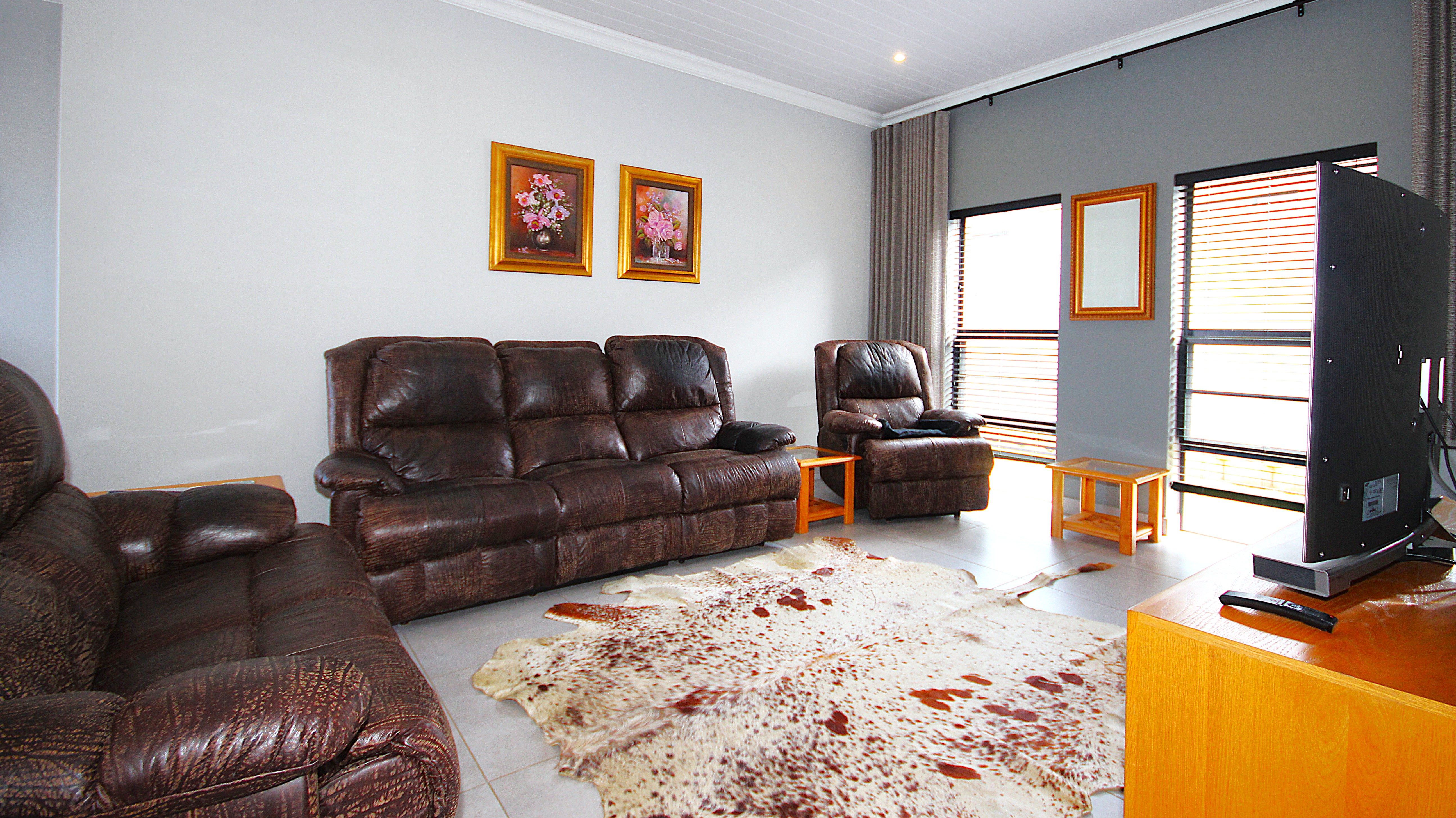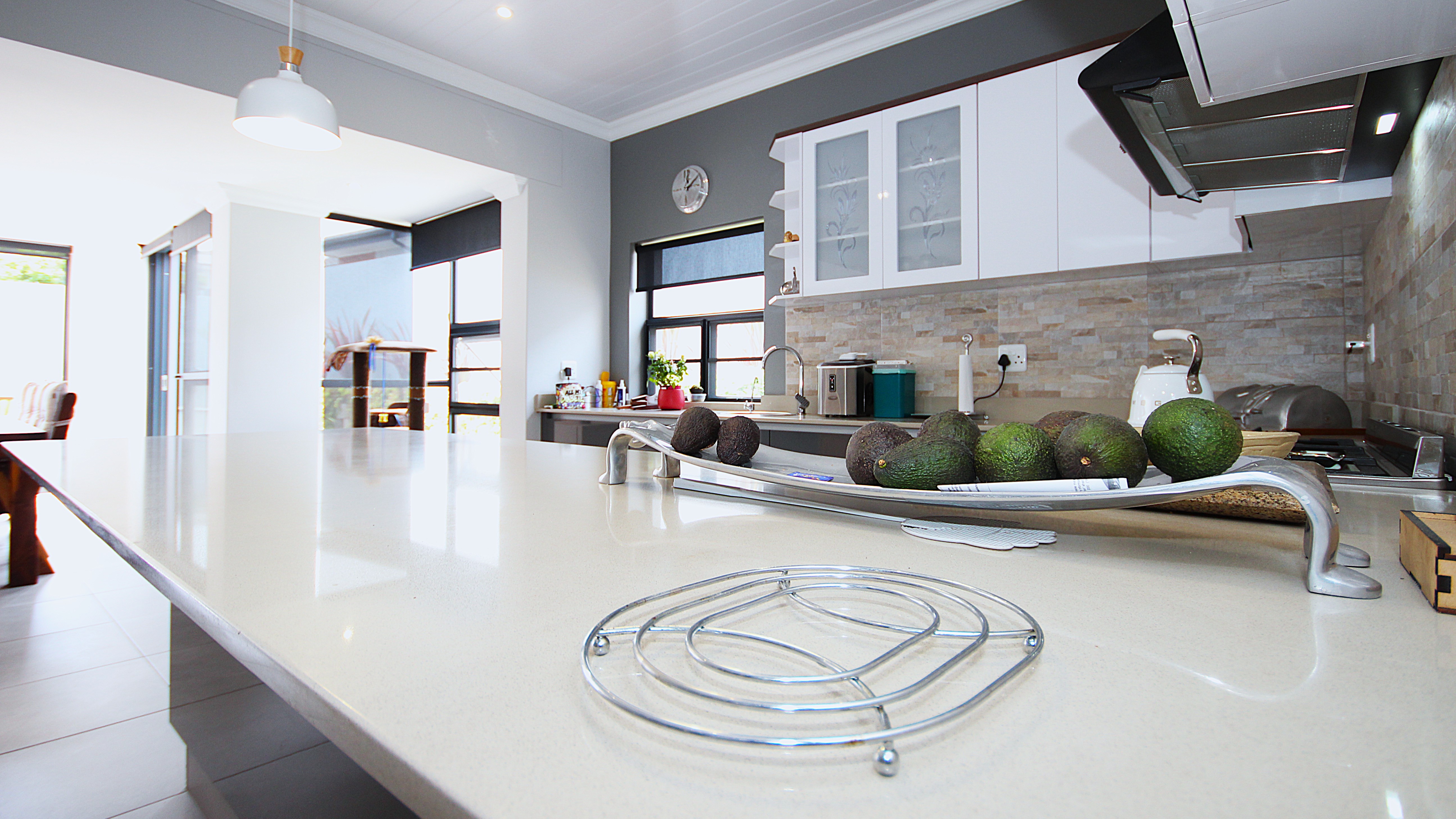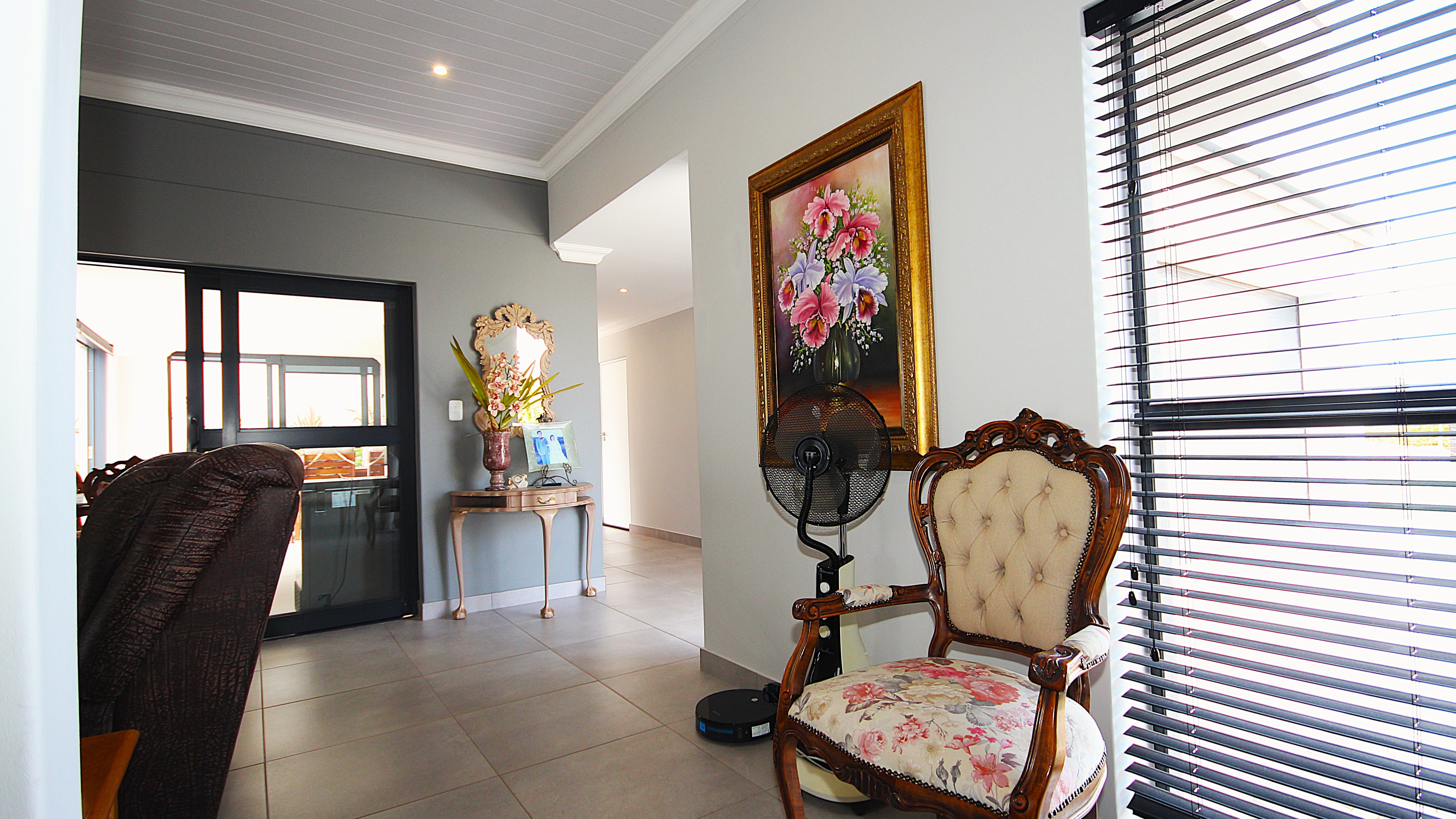 The practical kitchen is truly any cook’s dream, complete with a brand-new Smeg gas stove. The indoor built-in braai flows seamlessly into the open dining area, creating a warm and inviting space for entertaining.