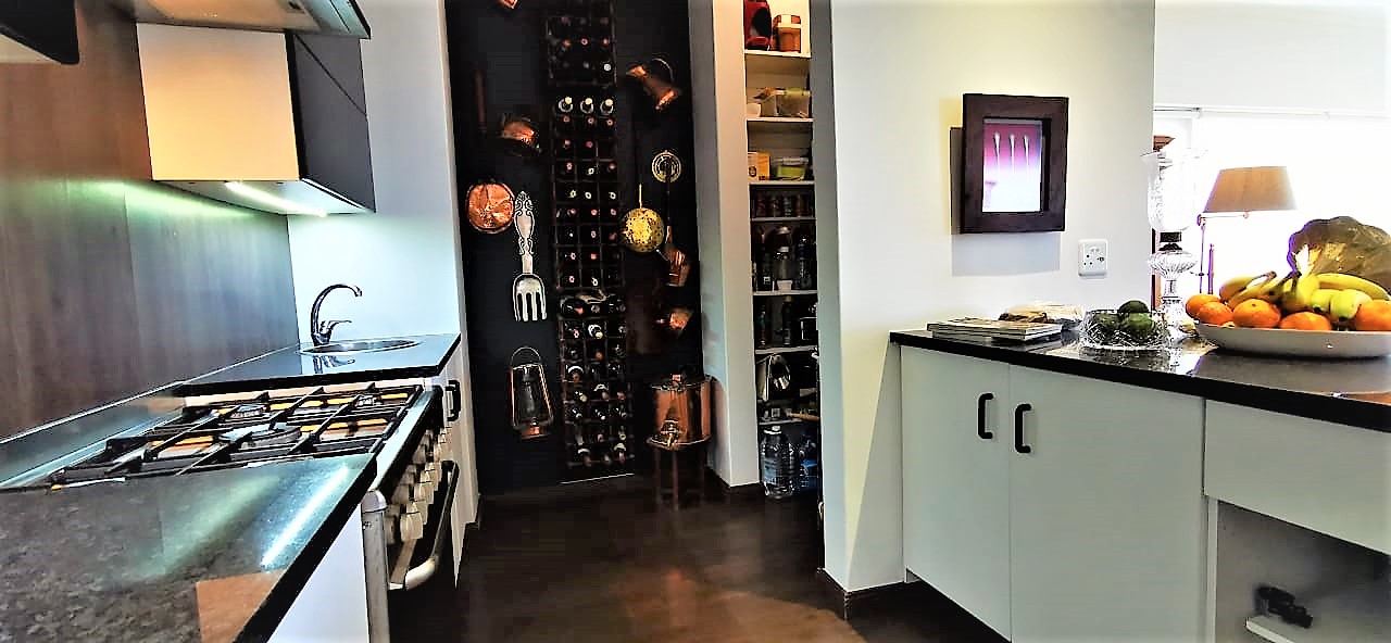 Open plan, centrally located Jetmaster, spacious patio, and dining room. Well-designed kitchen with pantry and linen cupboard. 3 spacious bedrooms, each with en-suite bathrooms and a guest toilet. At the back of the home: a covered patio bordering Outeniquashbosch, enjoying roaming bucks and mountain views. Also a *Wendy house,* which can be used as needed for extra guests or as a study or hobby room.