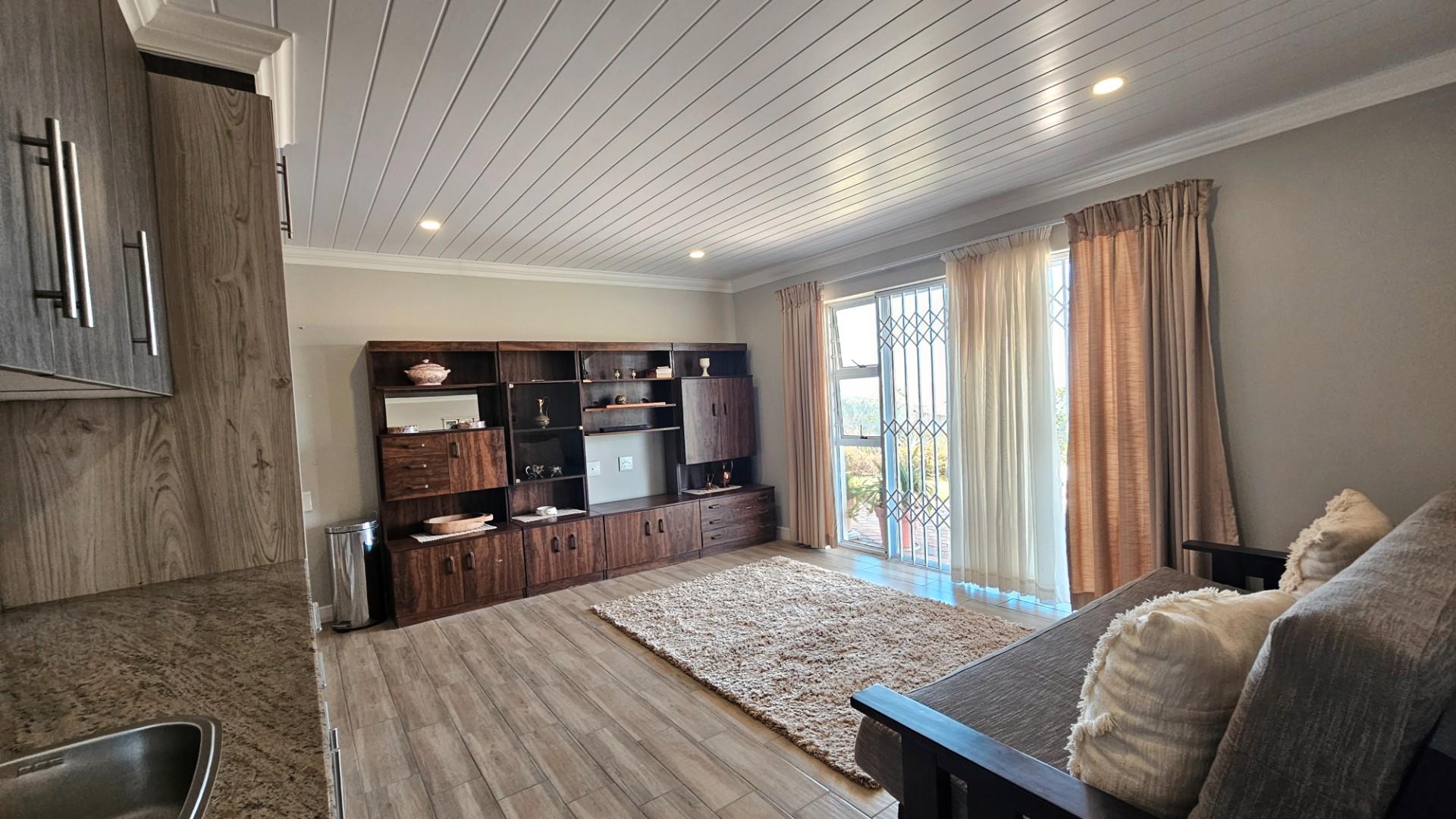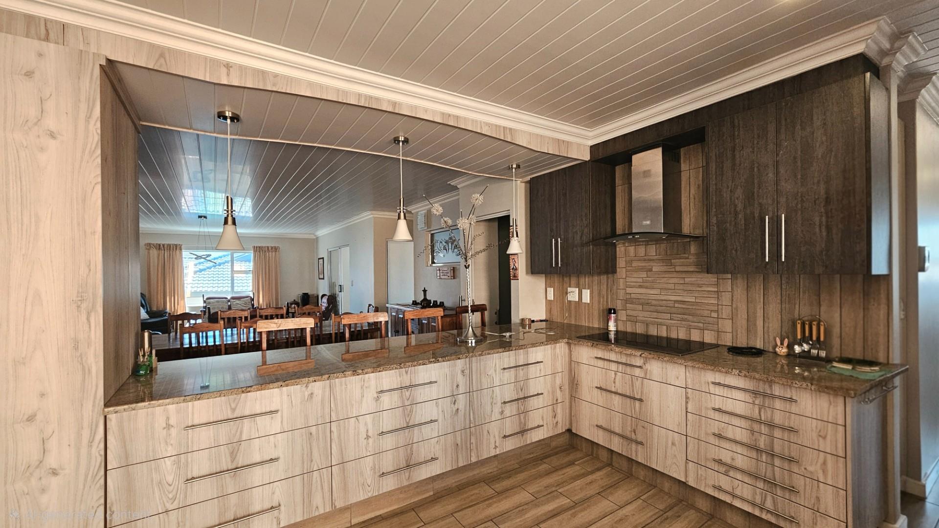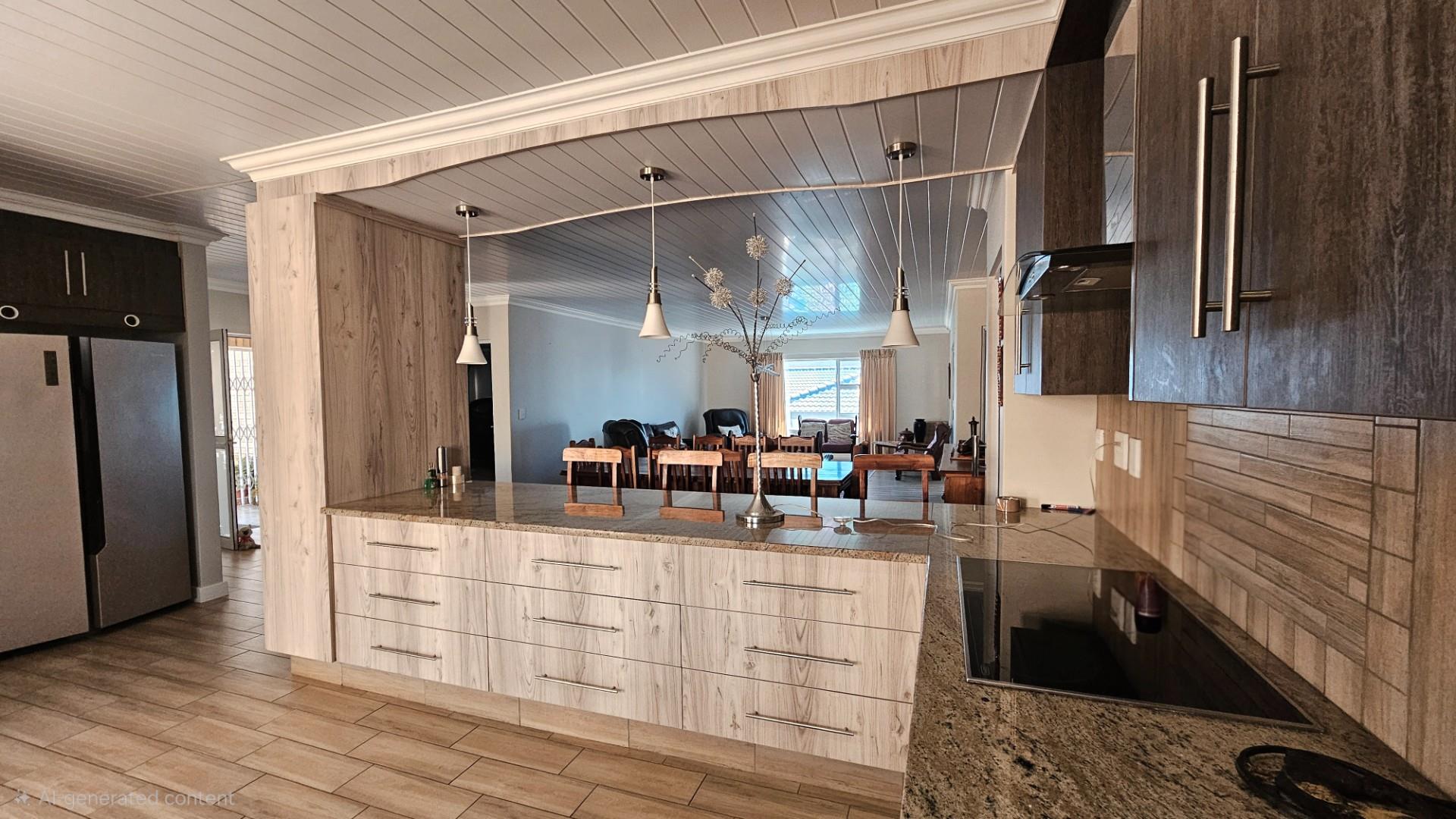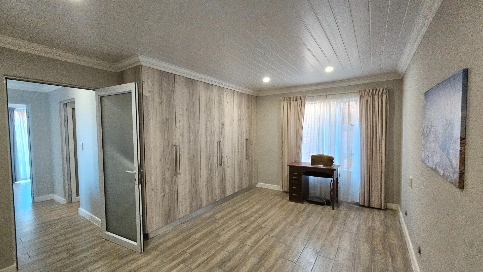 Upon entering on street level, you are welcomed into an inviting reception area that flows seamlessly into the expansive open-plan living and dining areas. The extra-large kitchen is a chef’s delight, offering ample cupboard space, a breakfast counter, separate scullery and walk in pantry. The living areas extend into a spacious TV and entertainment room with an indoor braai, all air-conditioned for year-round comfort.