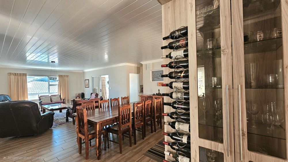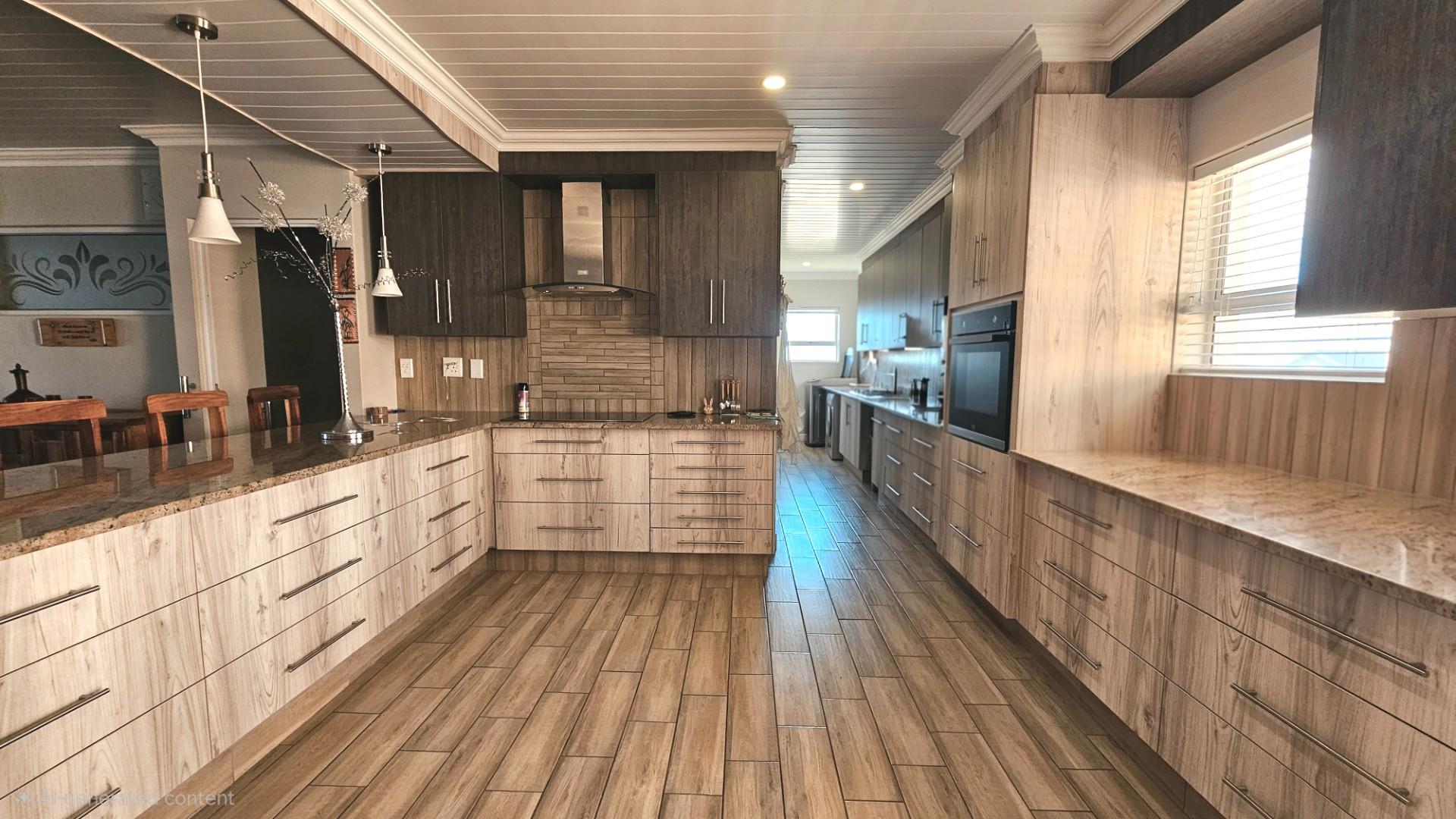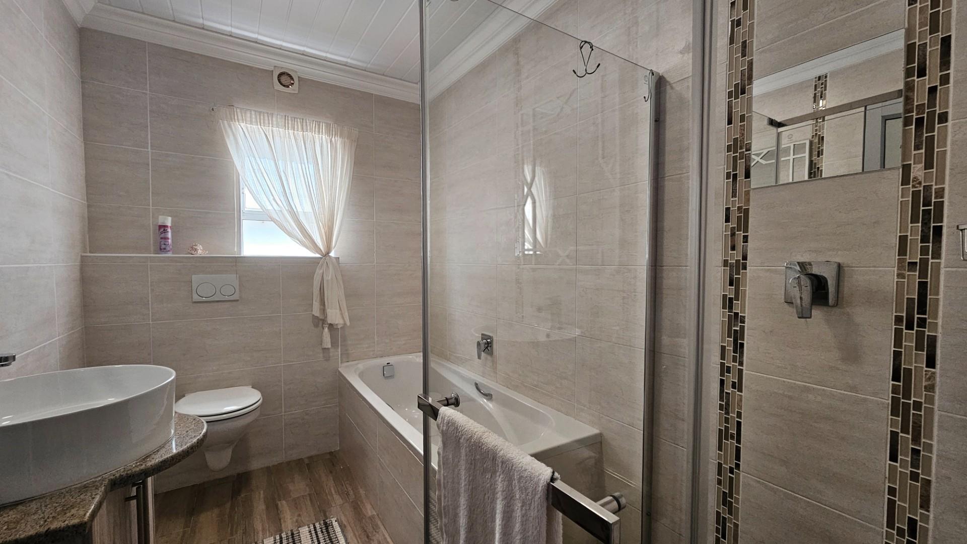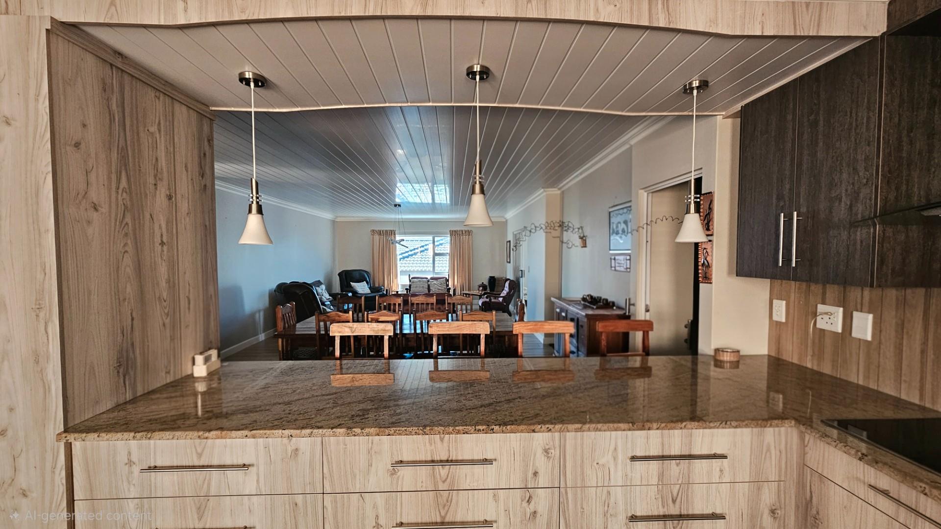 Upon entering on street level, you are welcomed into an inviting reception area that flows seamlessly into the expansive open-plan living and dining areas. The extra-large kitchen is a chef’s delight, offering ample cupboard space, a breakfast counter, separate scullery and walk in pantry. The living areas extend into a spacious TV and entertainment room with an indoor braai, all air-conditioned for year-round comfort.