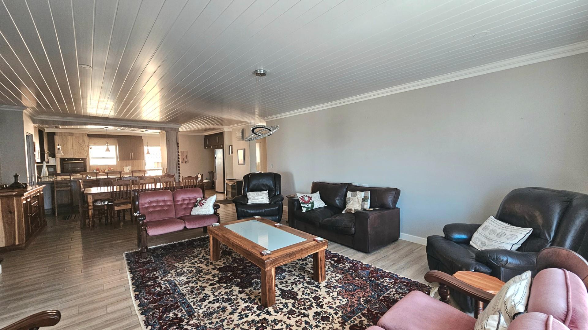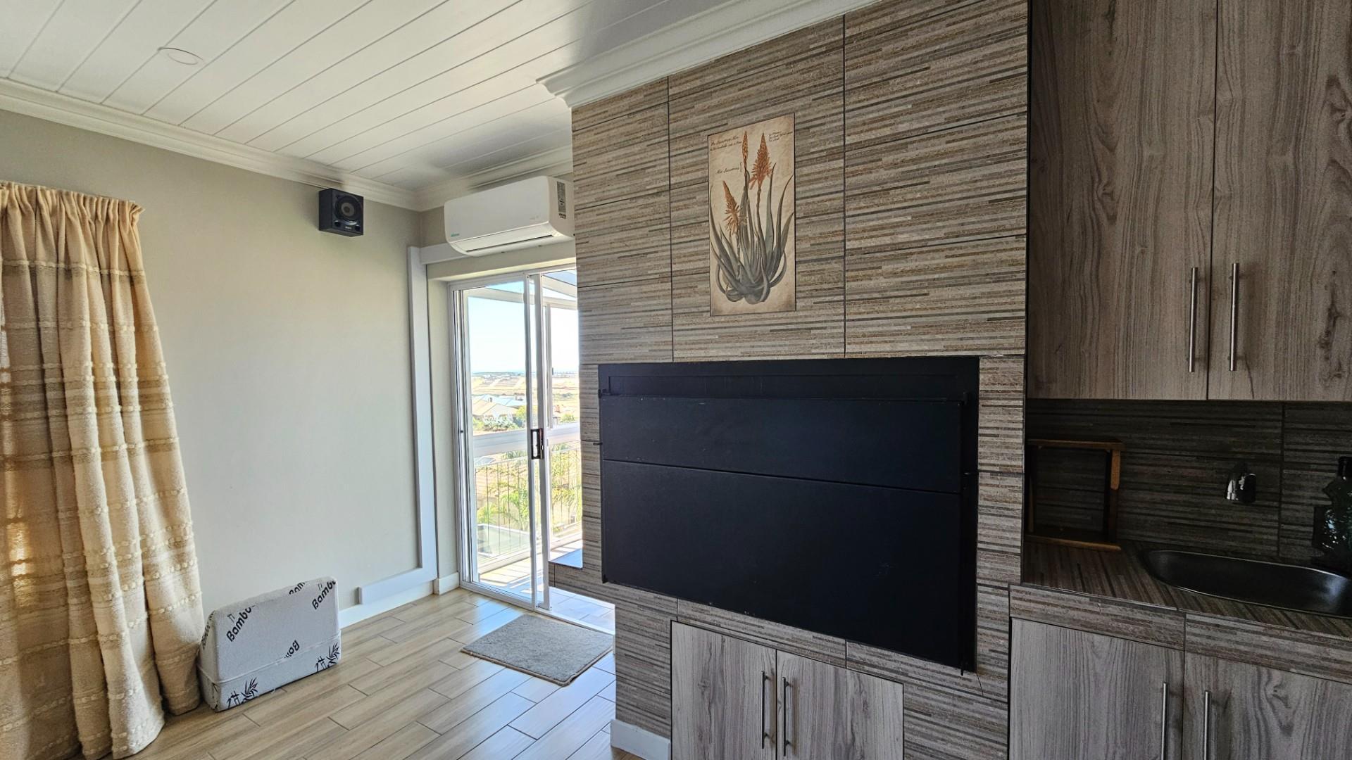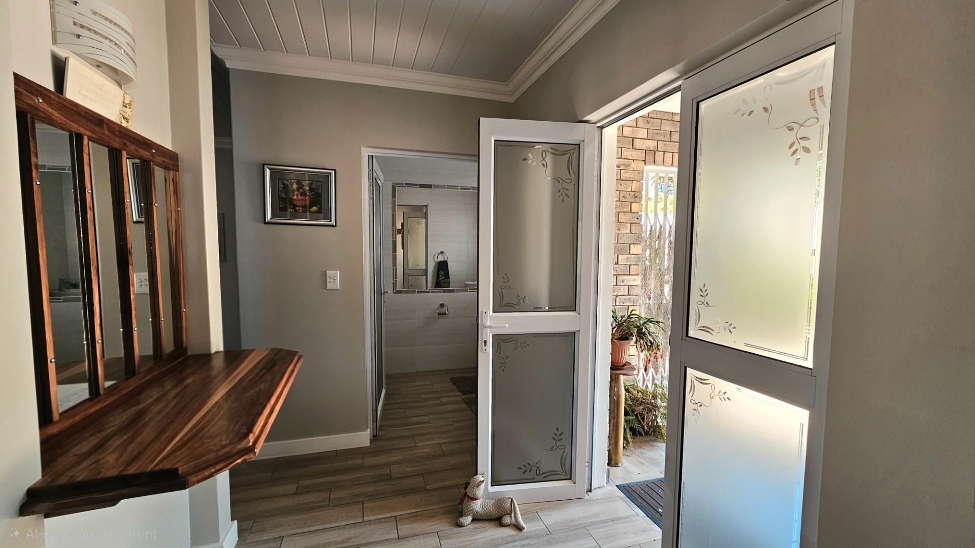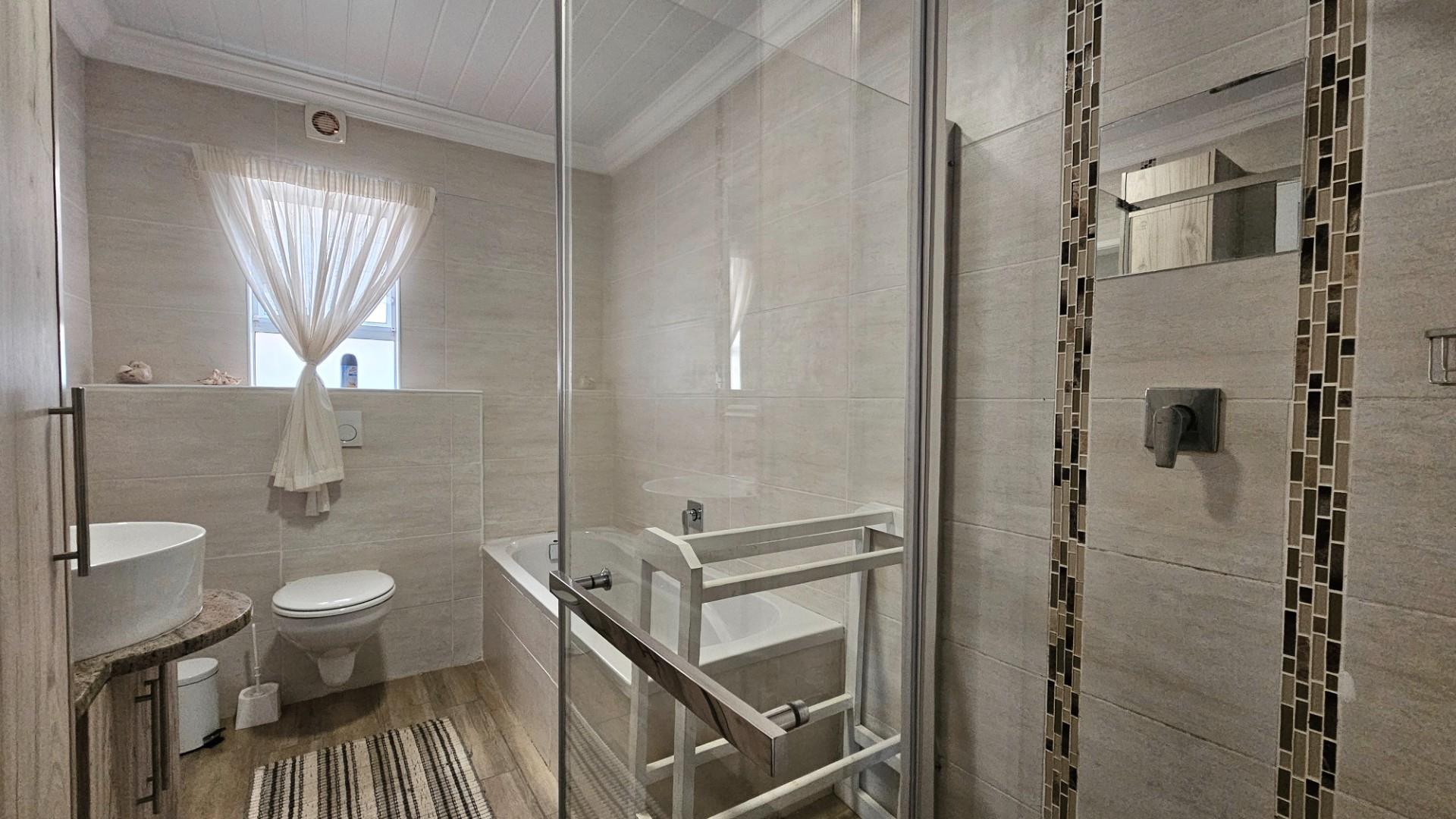Upon entering on street level, you are welcomed into an inviting reception area that flows seamlessly into the expansive open-plan living and dining areas. The extra-large kitchen is a chef’s delight, offering ample cupboard space, a breakfast counter, separate scullery and walk in pantry. The living areas extend into a spacious TV and entertainment room with an indoor braai, all air-conditioned for year-round comfort.