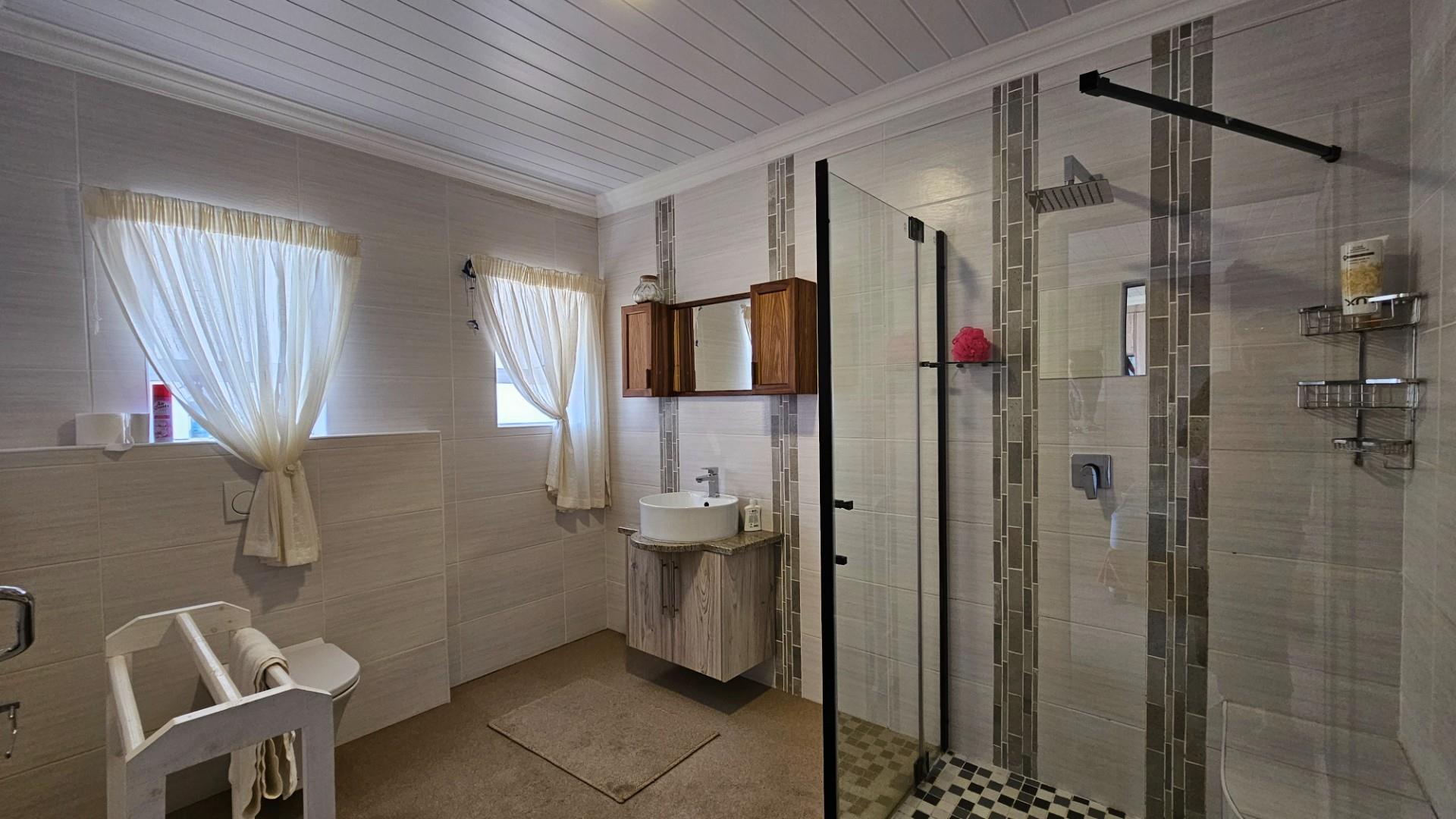 In addition, there is a separate tiled room with built-in cupboards, its own en-suite bathroom and a private external entrance. Currently used as a workshop, this space can easily function as a fifth bedroom, guest suite, home office or studio, offering excellent flexibility.