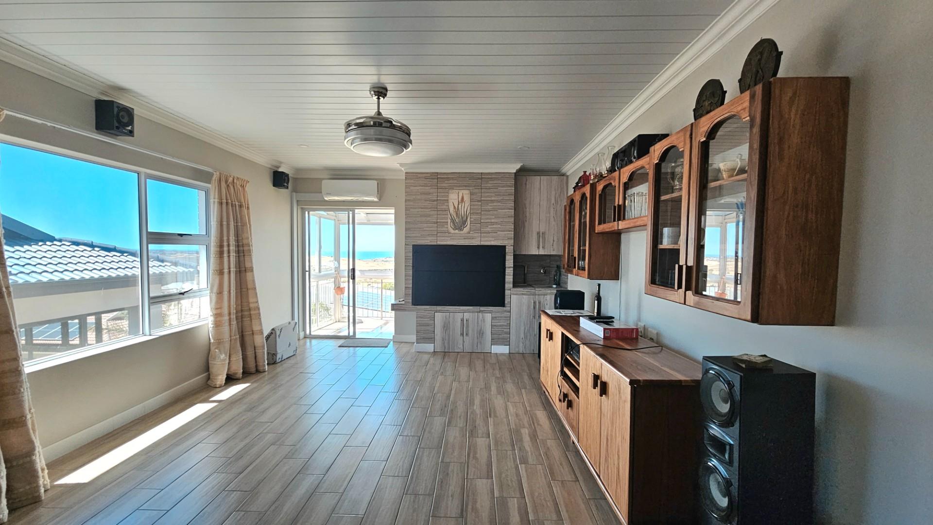 Also on this level is the generously sized main bedroom, complete with an en-suite bathroom, cupboards along two of the walls as well as a walk in cupboard and beautiful sea views. Three of the four main bedrooms in the home enjoy ocean vistas. An enclosed balcony with glass panels and sliding windows provides the perfect vantage point to enjoy the views in any weather, whether entertaining or relaxing quietly.