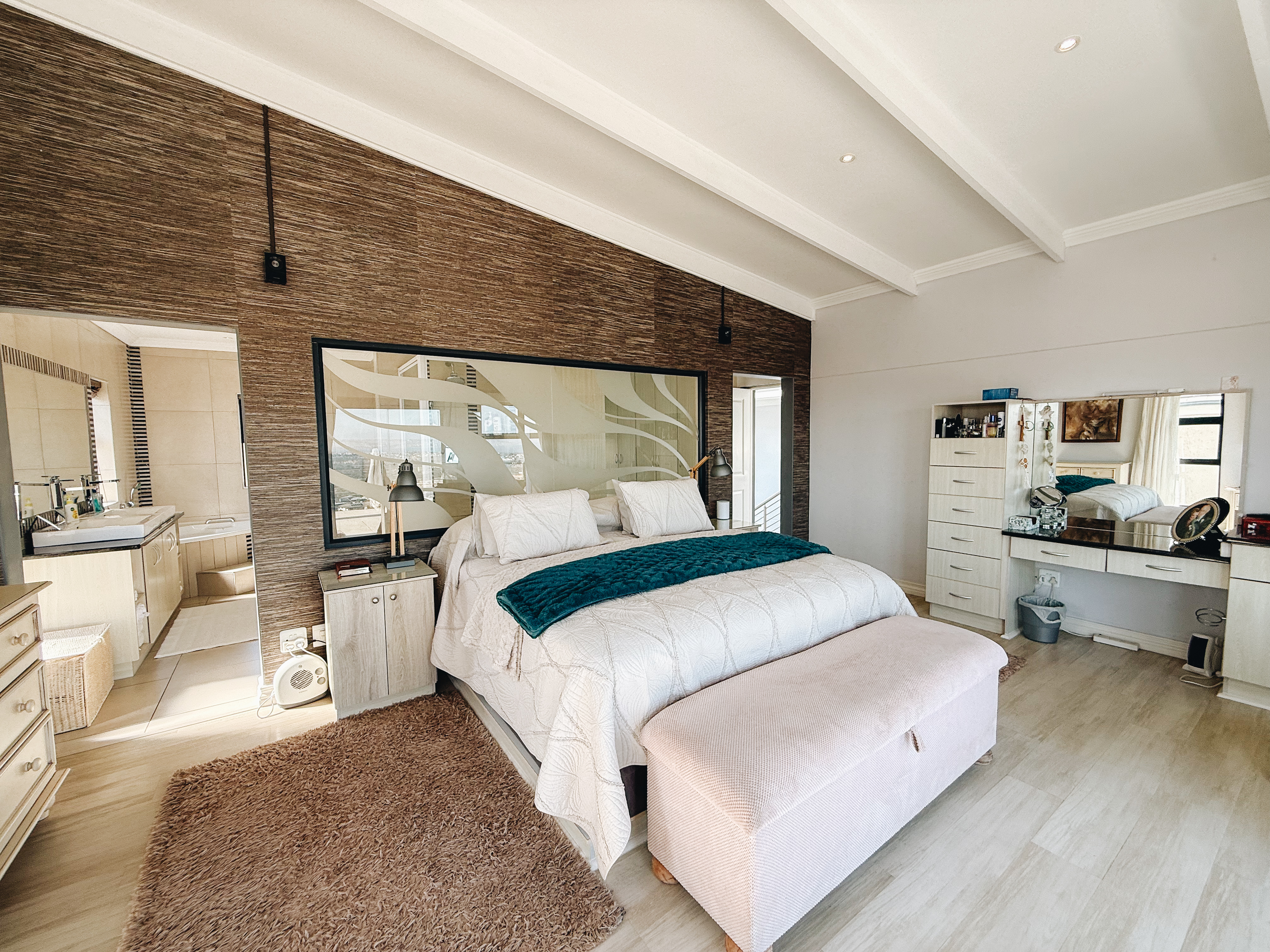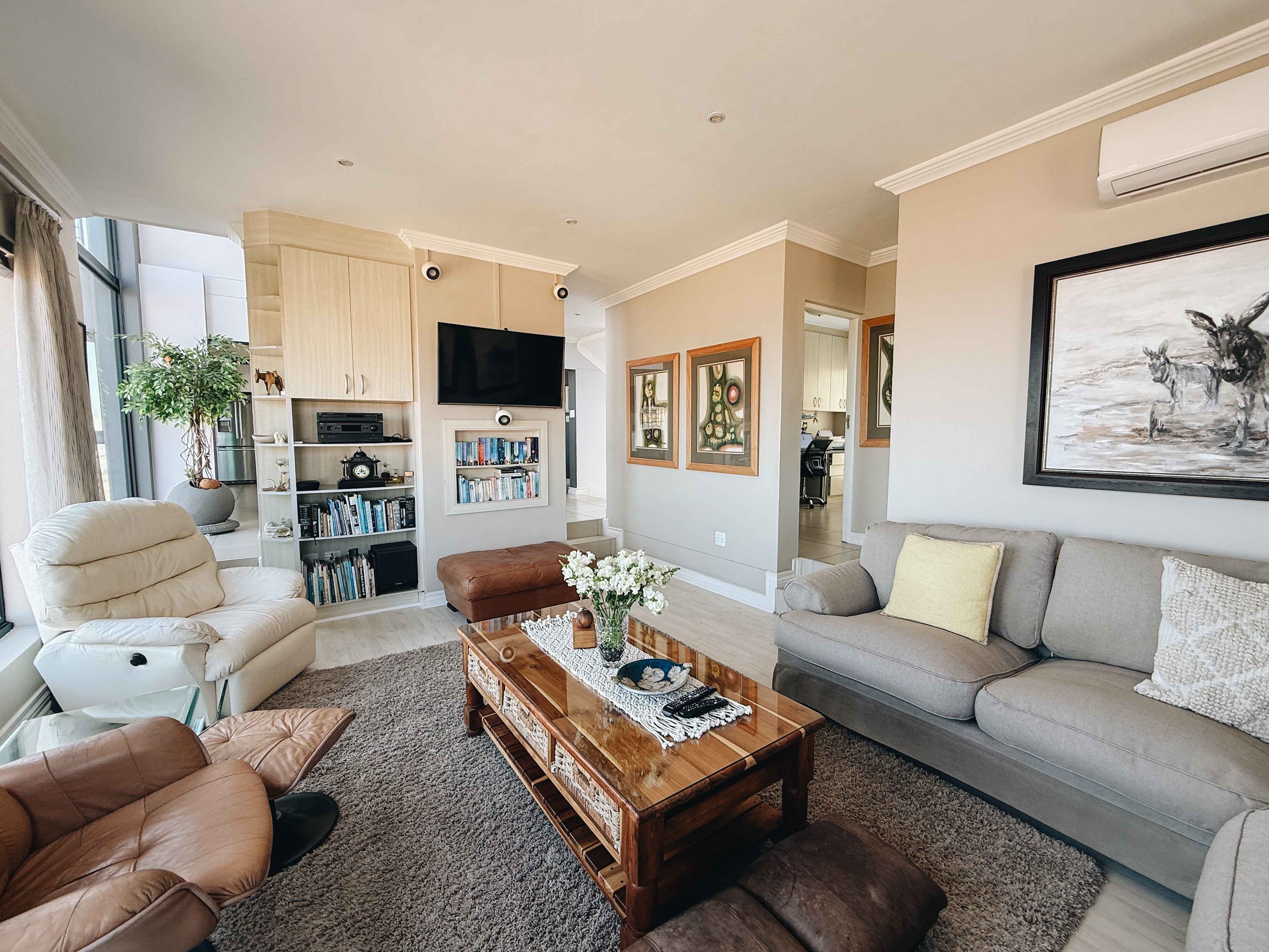 As the seasons shift, the home transforms with equal grace—underfloor heating and a wood-burning fireplace in the main suite create a cozy haven, complemented by soothing melodies from the built-in sound system.