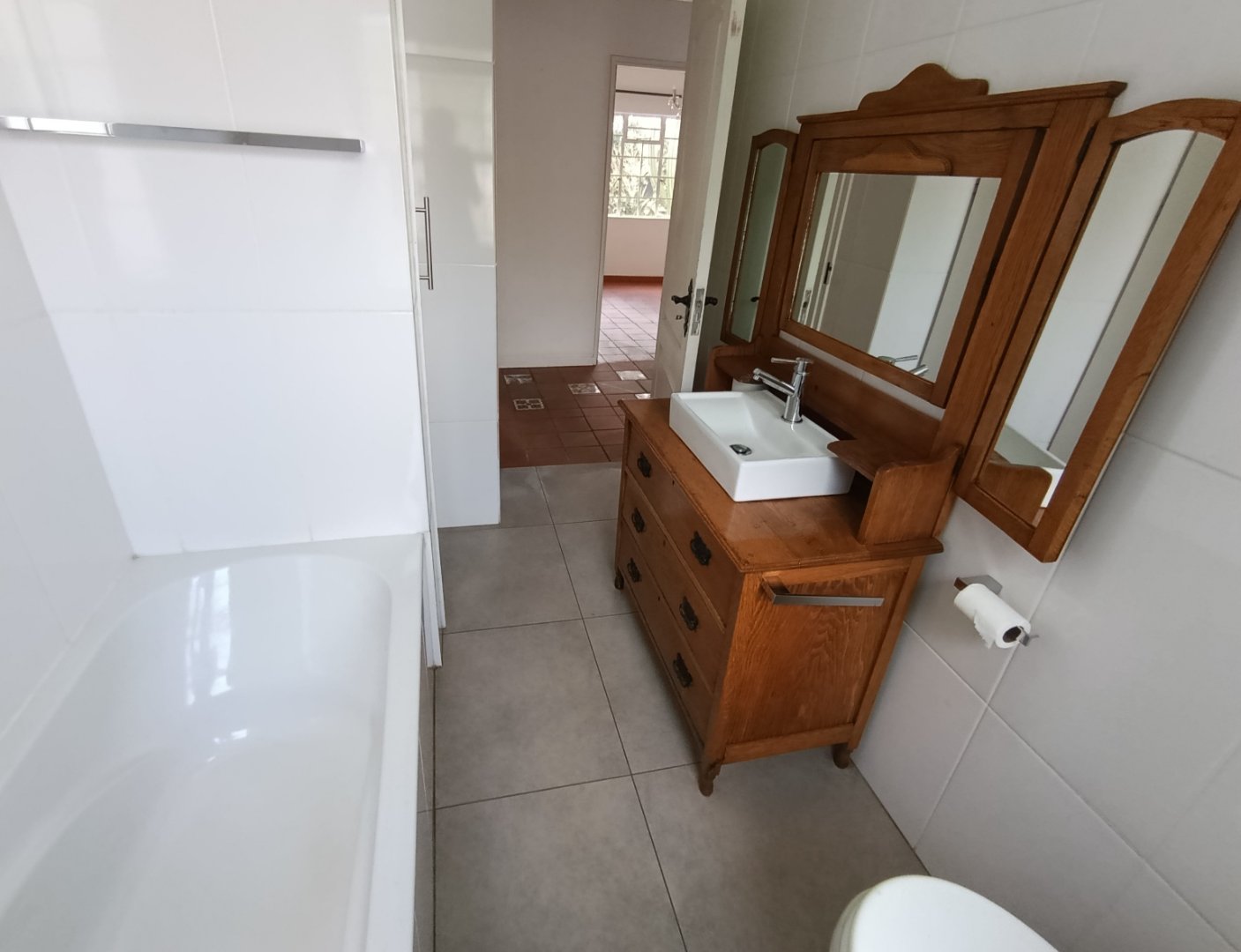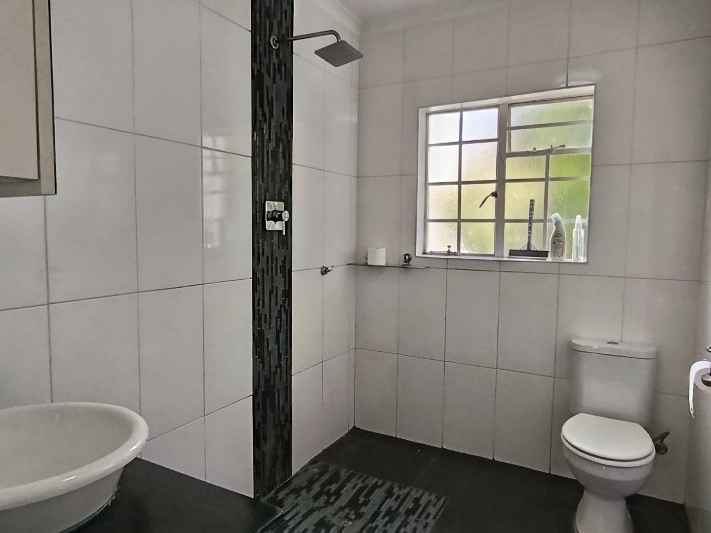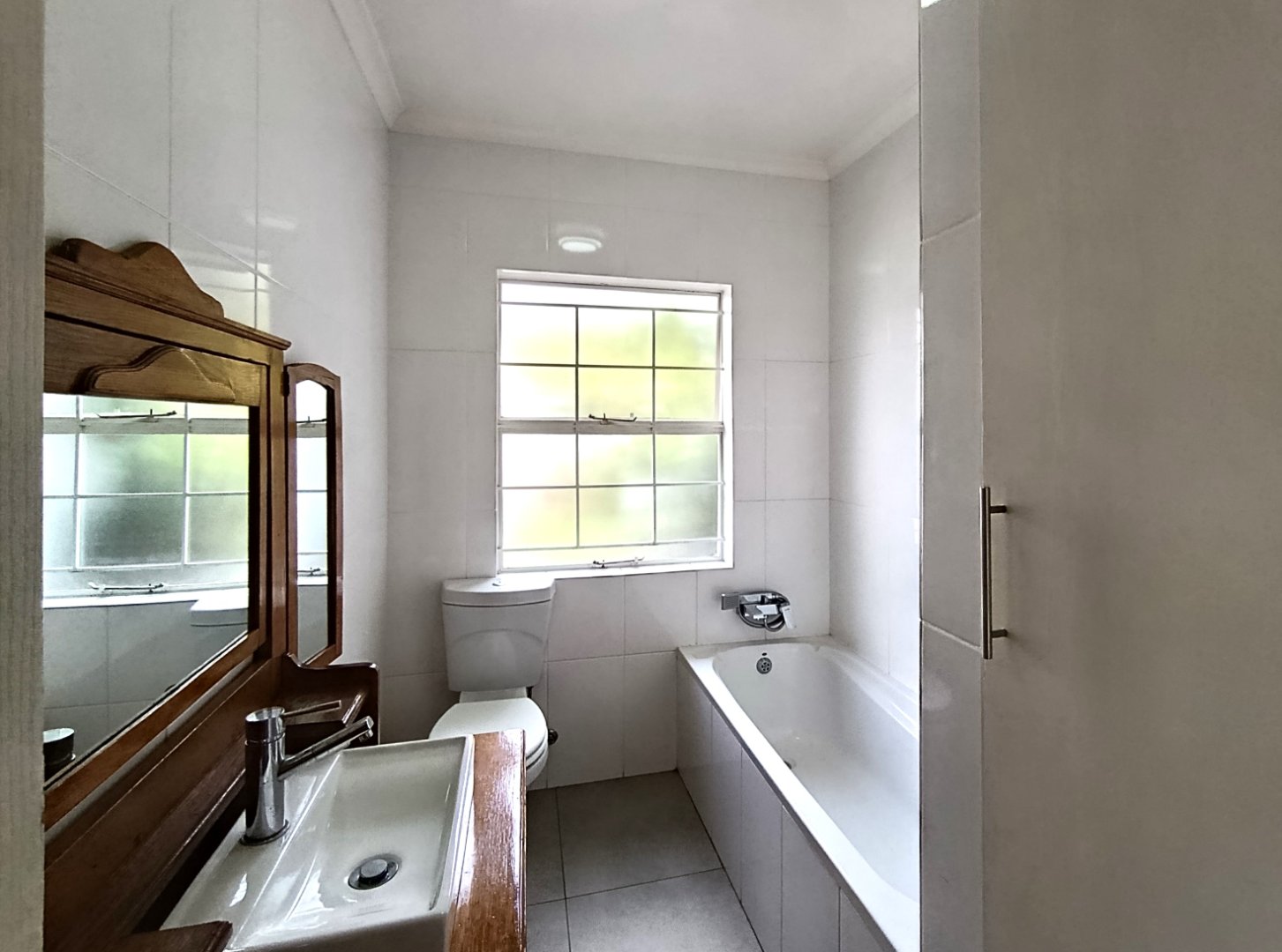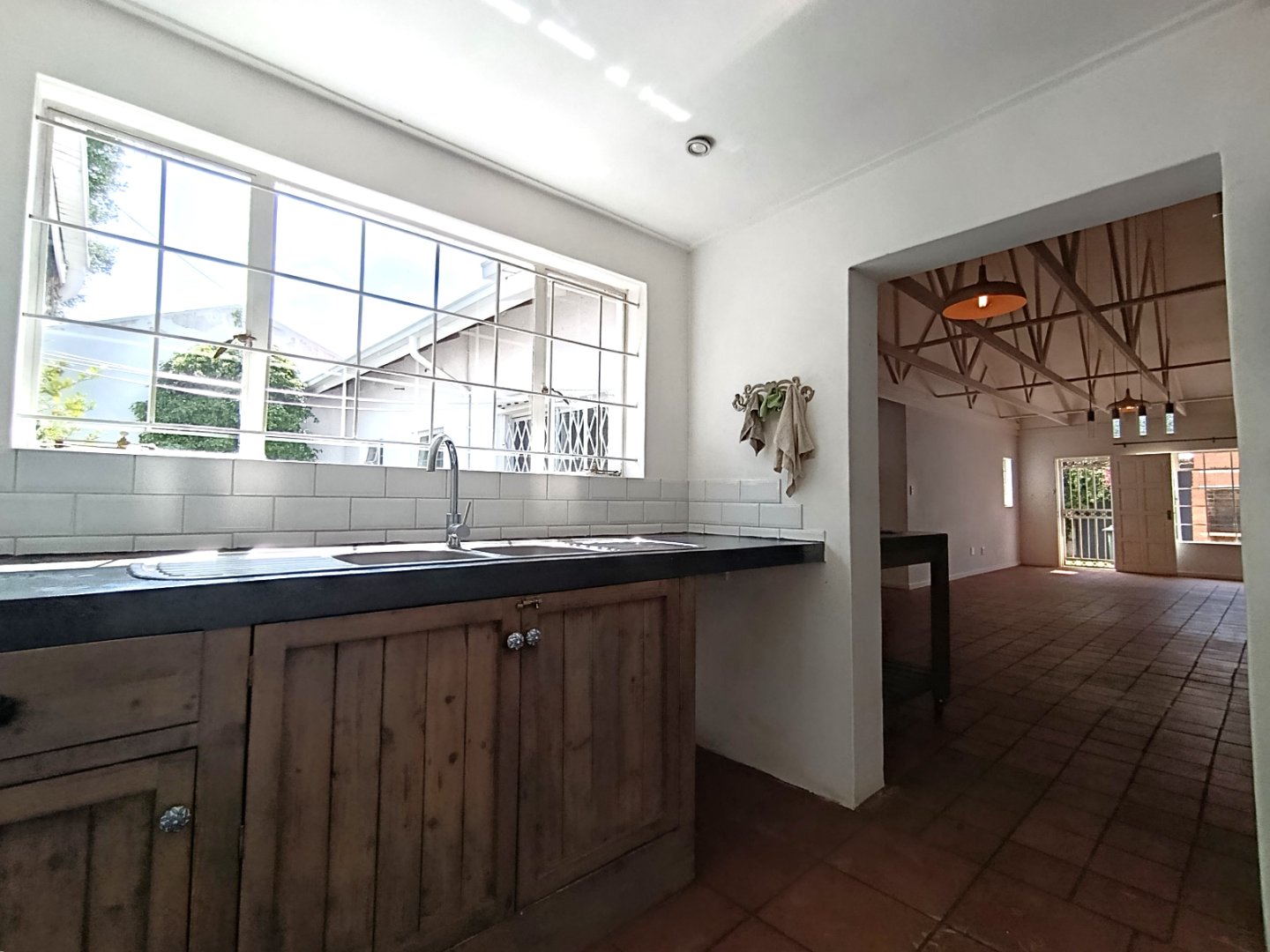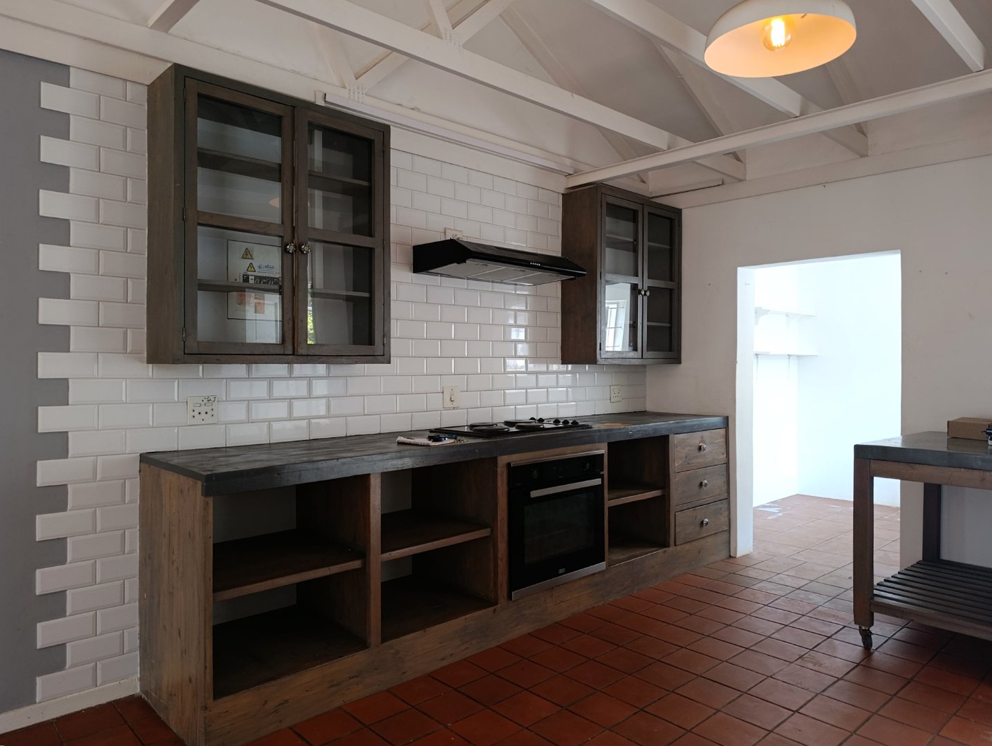 Beyond the entrance hall, you'll find a spacious lounge and dining room area adorned with a beautiful tiled floors and magnificent ceiling beams, offering the perfect setting for everyday living and memorable gatherings alike. At the heart of the home, an open-plan kitchen beckons with ample workspace and classic design, ready to inspire creativity and culinary skills . There is also a laundry/ scullery room adjacent to the kitchen with a dishwasher connection.
