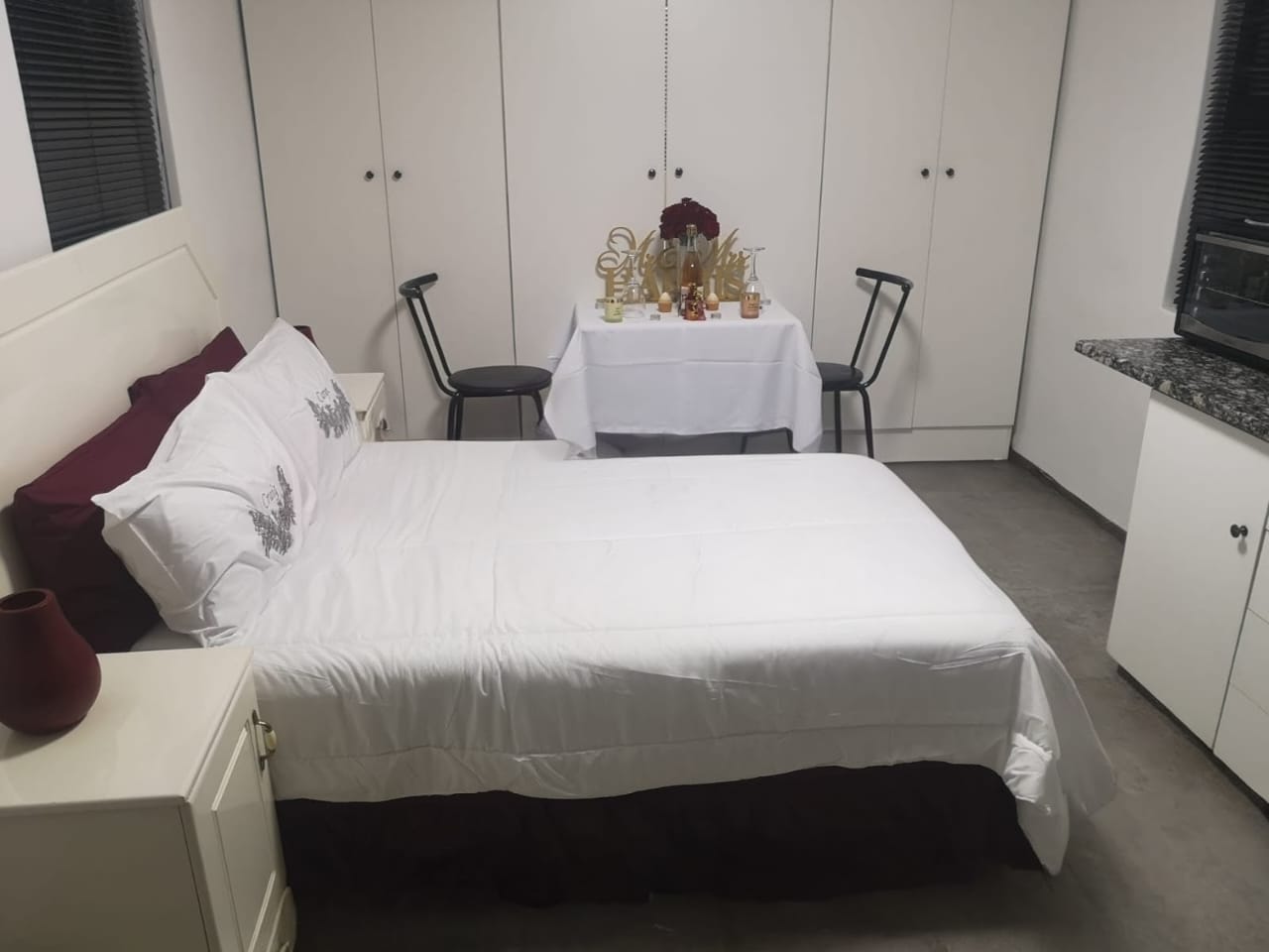 The bedroom features an en-suite bathroom for added convenience .