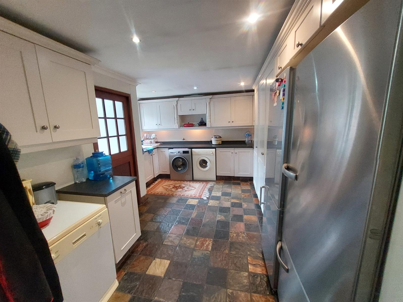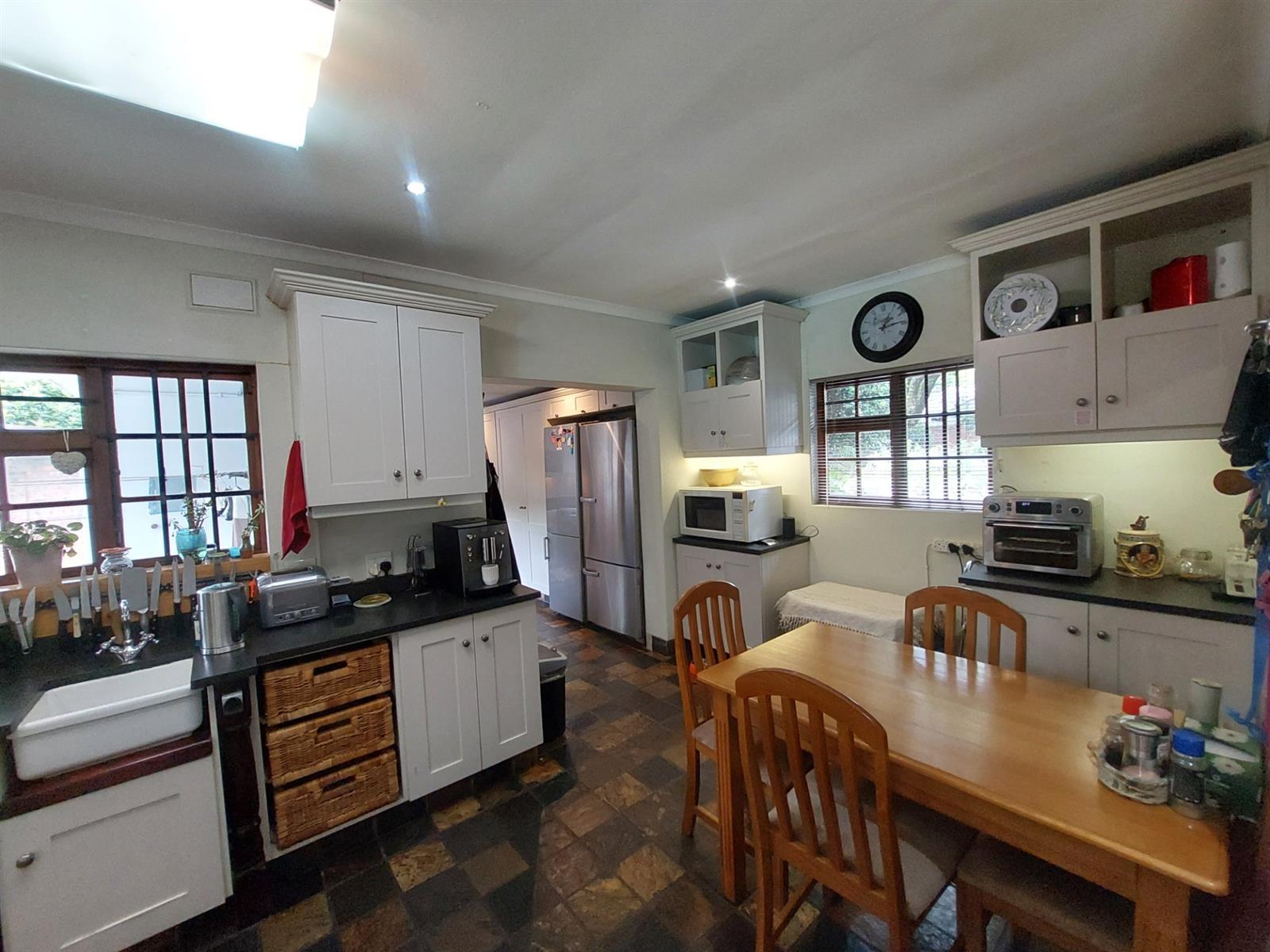 This residence also includes three flatlets, adding versatility for guests or rental income potential. With two garages and a yard that is totally walled for privacy, security is paramount. The property features an electric gate, an alarm system, and armed response for peace of mind.