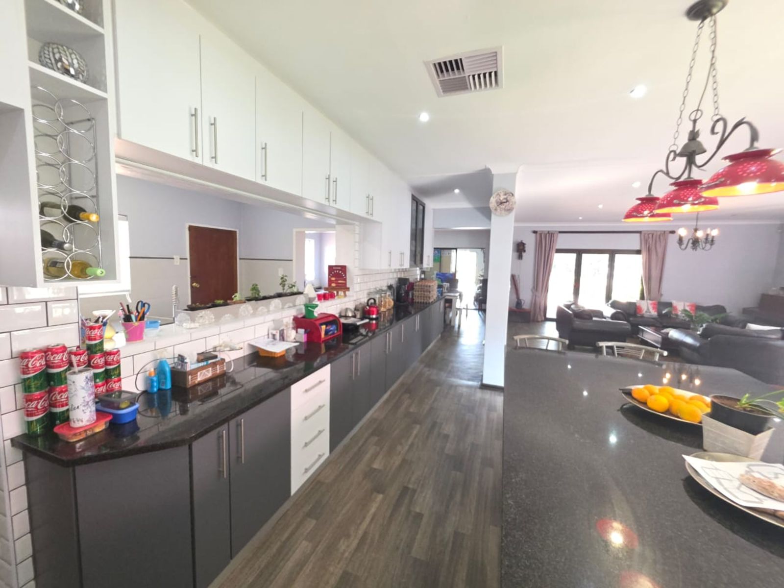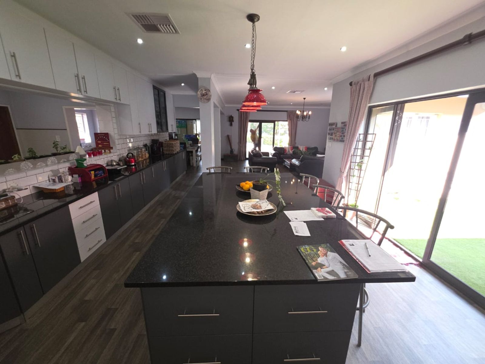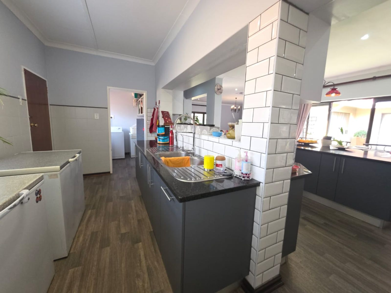Stylish Kitchen – Modern open-plan design with granite tops, gas hob, electric oven, scullery, laundry, and pantry.