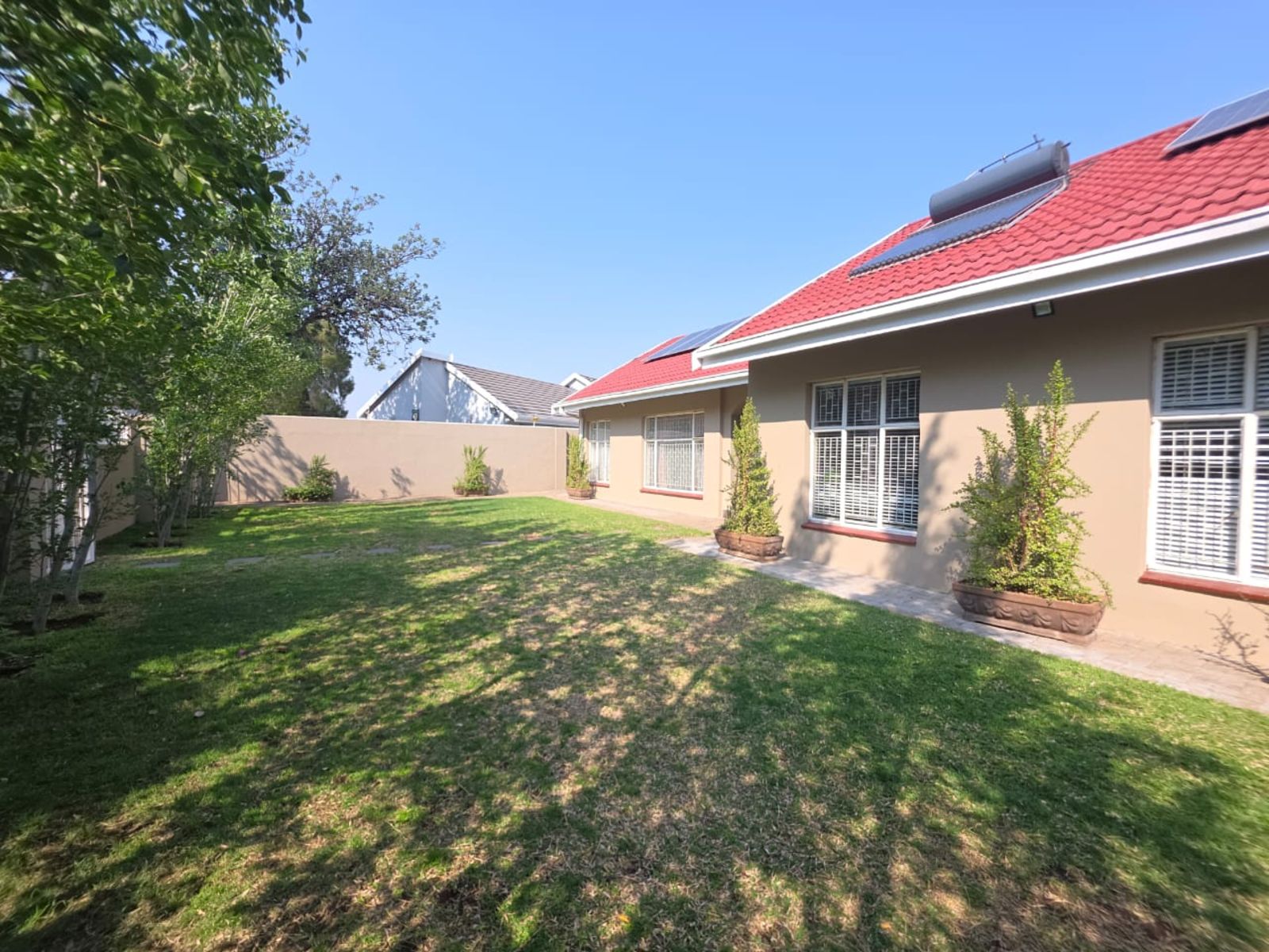 Entertainment Hub – Spacious braai area overlooking the pool and immaculate garden.