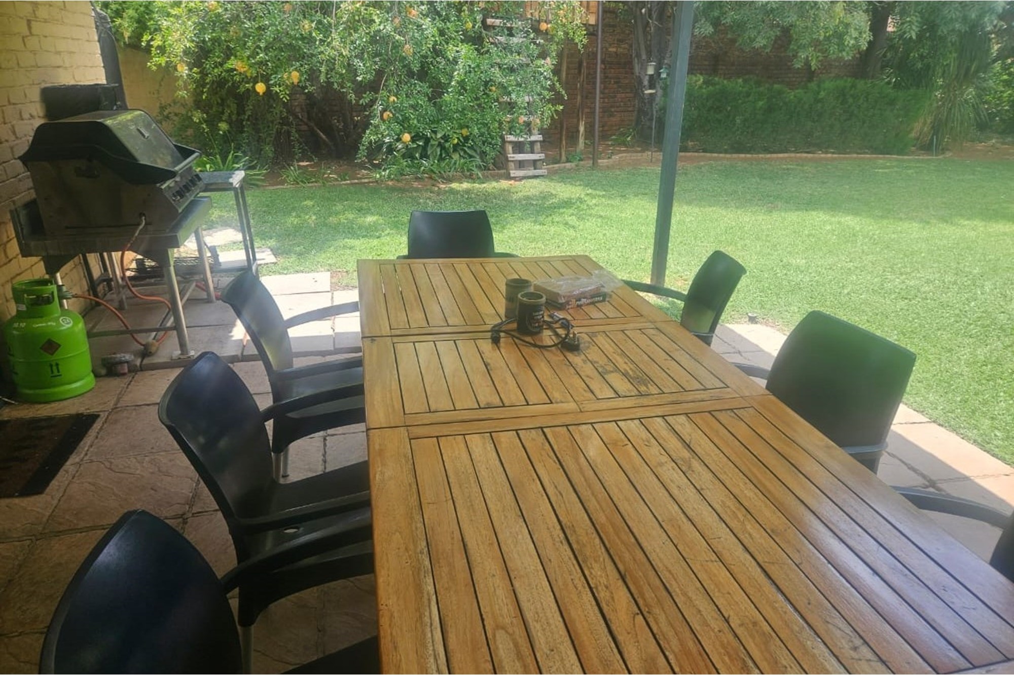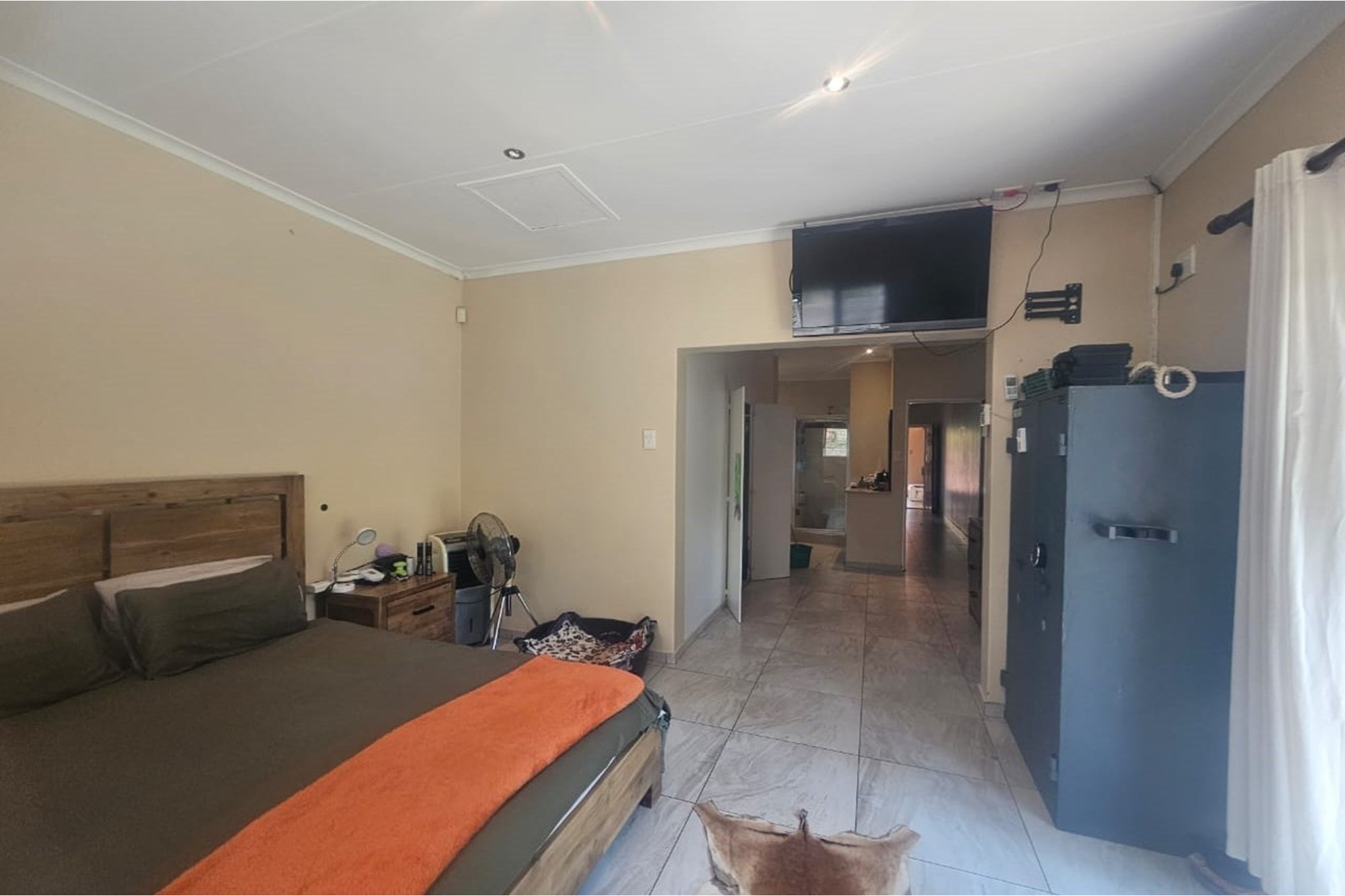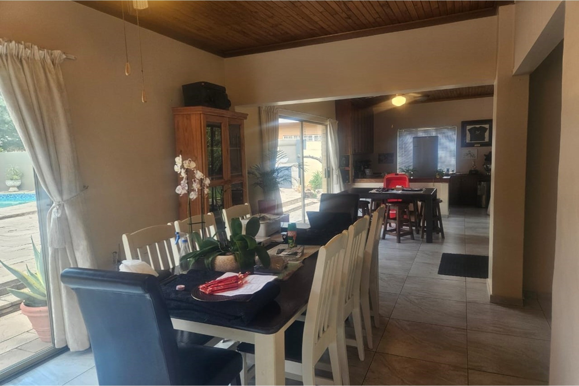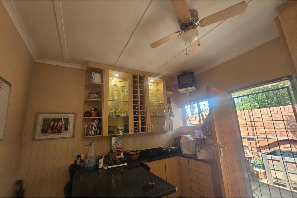 Parking is ample, with a double garage fitted with electric doors and secure parking for up to seven vehicles. The property is fully fenced and offers excellent security features, including electric fencing, burglar bars, and an alarm system. A water cooler ensures comfort during warmer months.