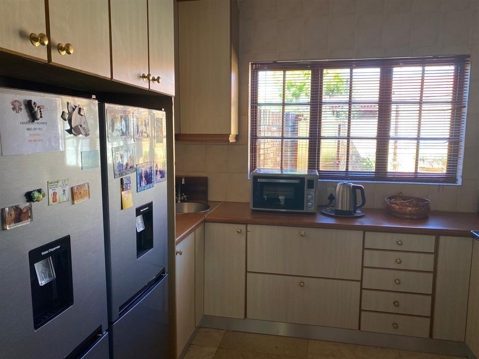 Enjoy open-plan living with a spacious lounge, family room, dining area, and a modern kitchen featuring built-in cupboards, an extractor fan, under-counter oven and hob, plus a convenient scullery and laundry area. A water cooler adds to the home’s everyday comfort.