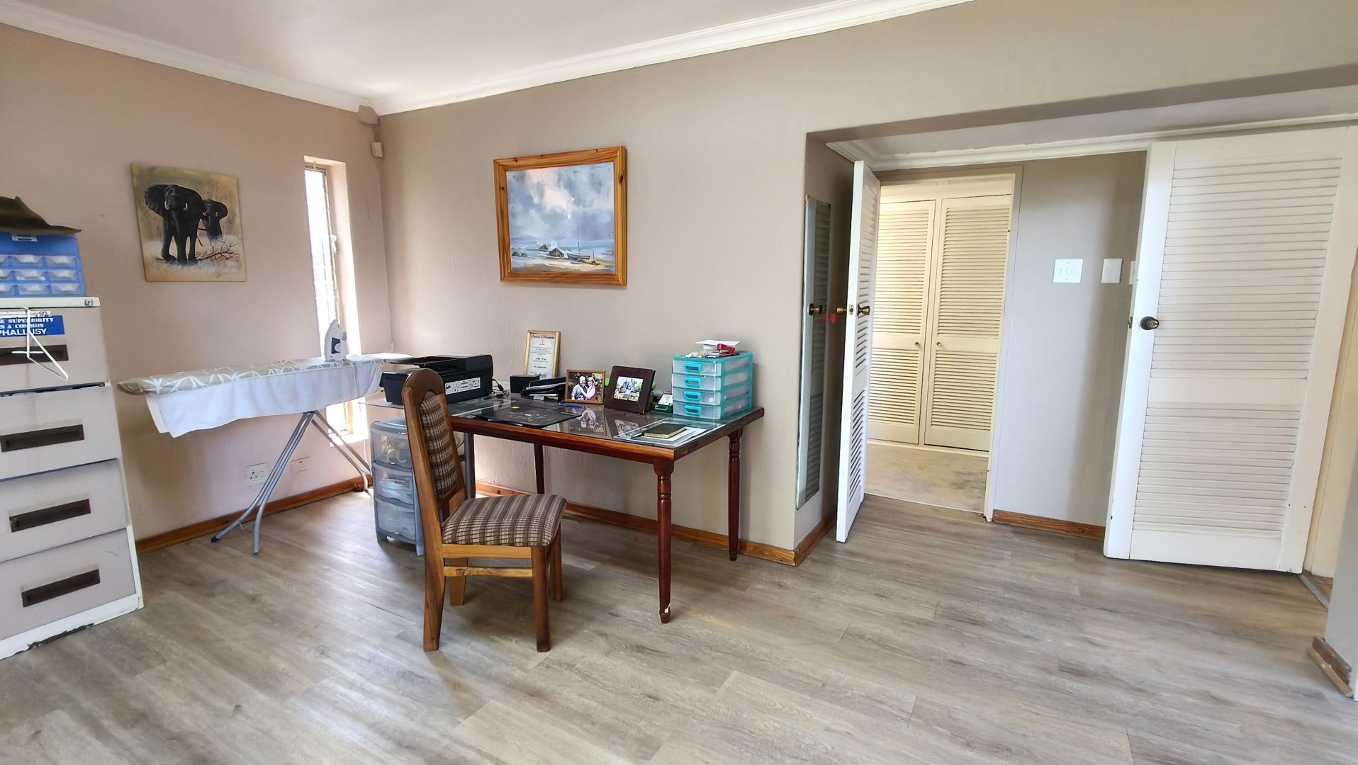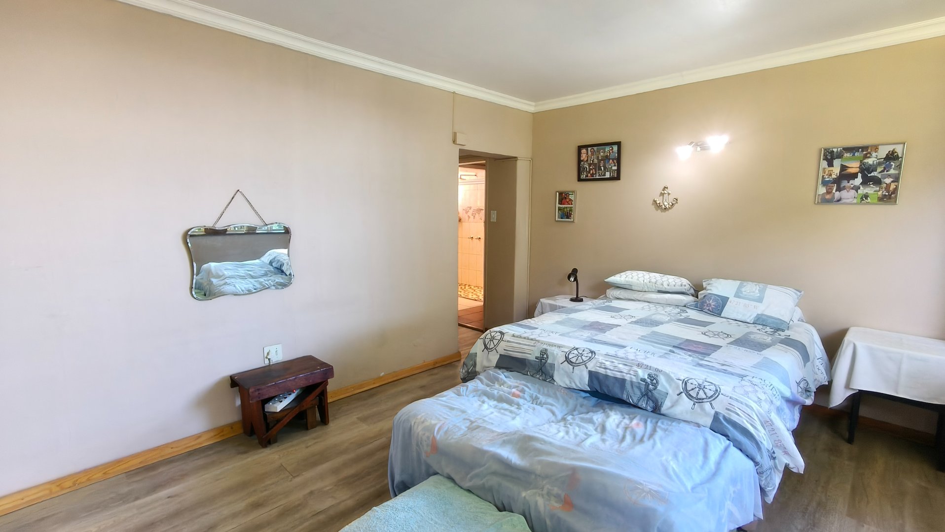 Accommodation includes an impressive main bedroom suite with a private lounge or study, dressing room, and en-suite bathroom. Three further bedrooms with built-in cupboards are well above average in size, serviced by a separate bathroom and toilet, bringing the total to 3.5 bathrooms in the main house.