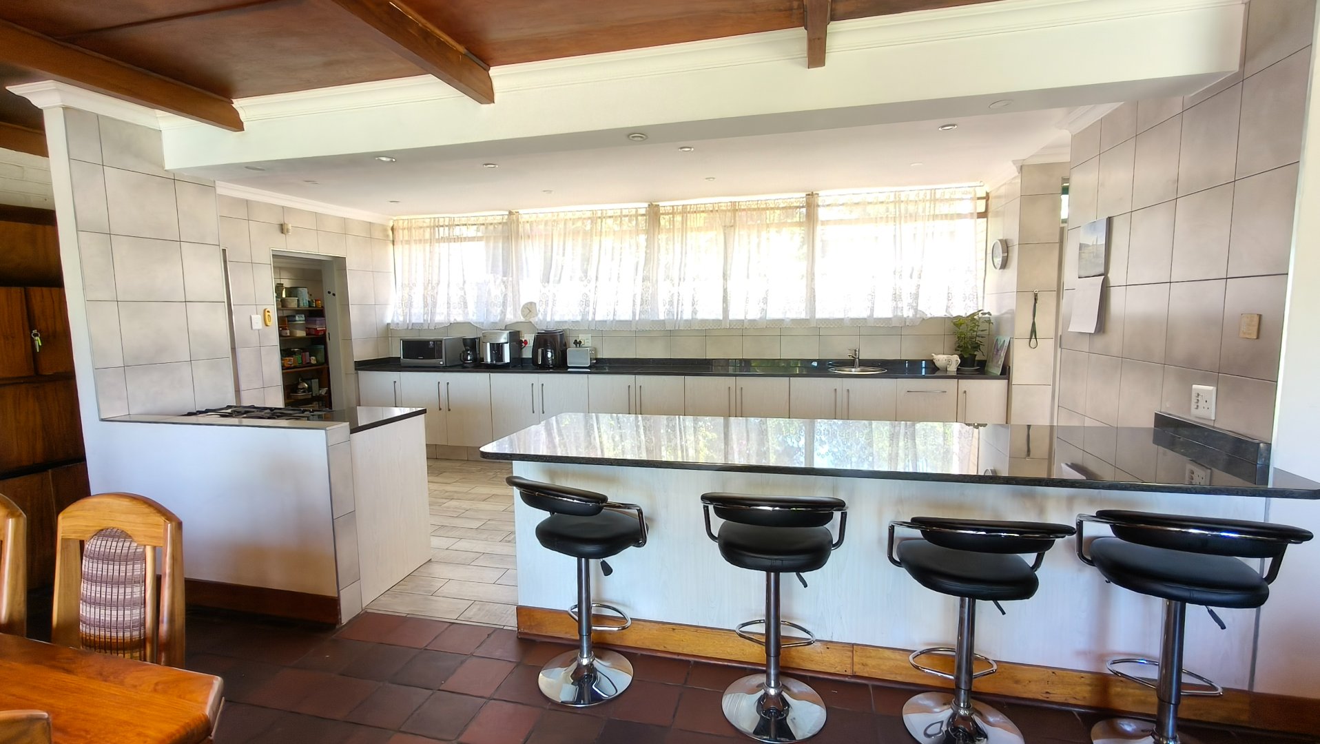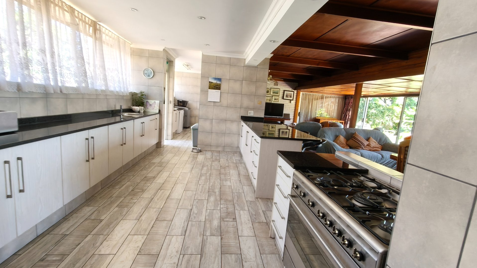 Rarely found in Monument, this exceptionally spacious five-bedroom home offers far more accommodation than most properties in the area, with oversized bedrooms and multiple self-contained living options — ideal for large families or buyers seeking flexibility and value. The home features a large open-plan lounge and dining area, filled with natural light and flowing towards a beautiful view, perfect for family living and entertaining. The spacious kitchen is fitted with granite countertops, ample cupboard space, and a separate scullery, complemented by an additional multi-purpose room ideal as a gym, study, or hobby space.