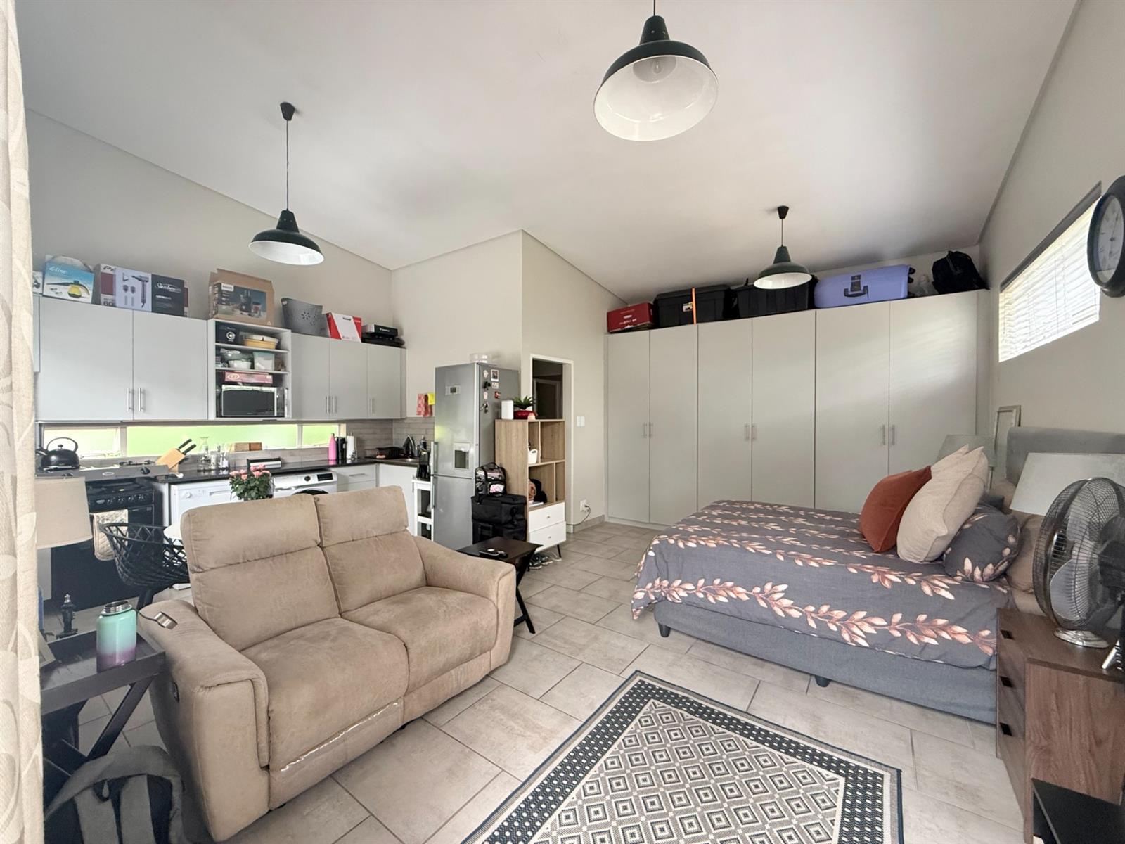 Flatlet: Kitchenette, bathroom, built-in cupboards, private shade-net parking — separate but connected to the house