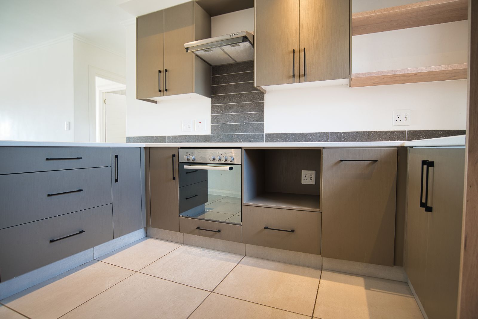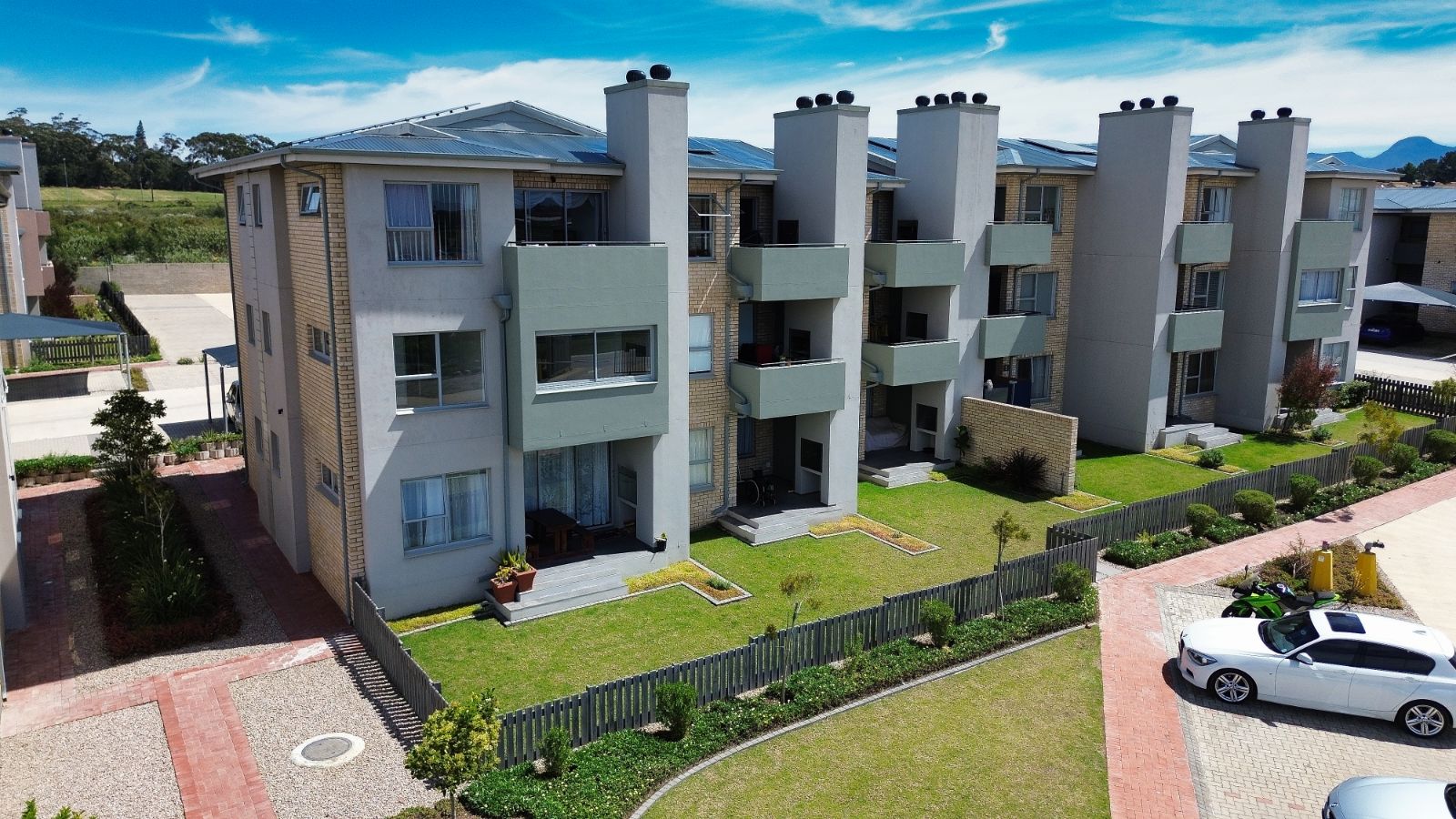 Step into this inviting first-floor apartment, where comfort and style blend seamlessly. Upon entering, you are welcomed into a modern open-plan kitchen and living area, perfect for both relaxation and entertaining. The space is enhanced by a built-in braai and a large window that fills the room with natural light while offering a delightful view.