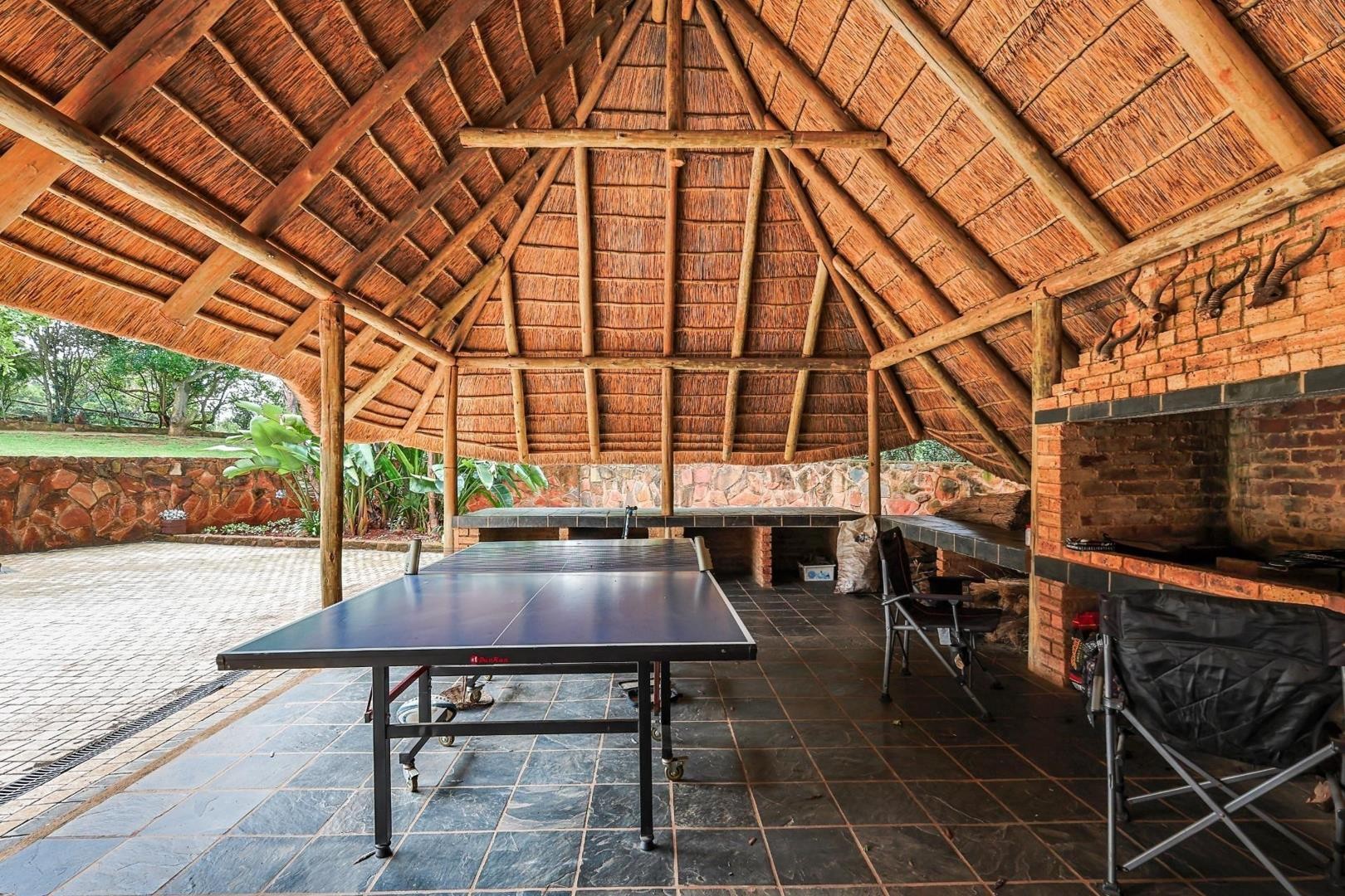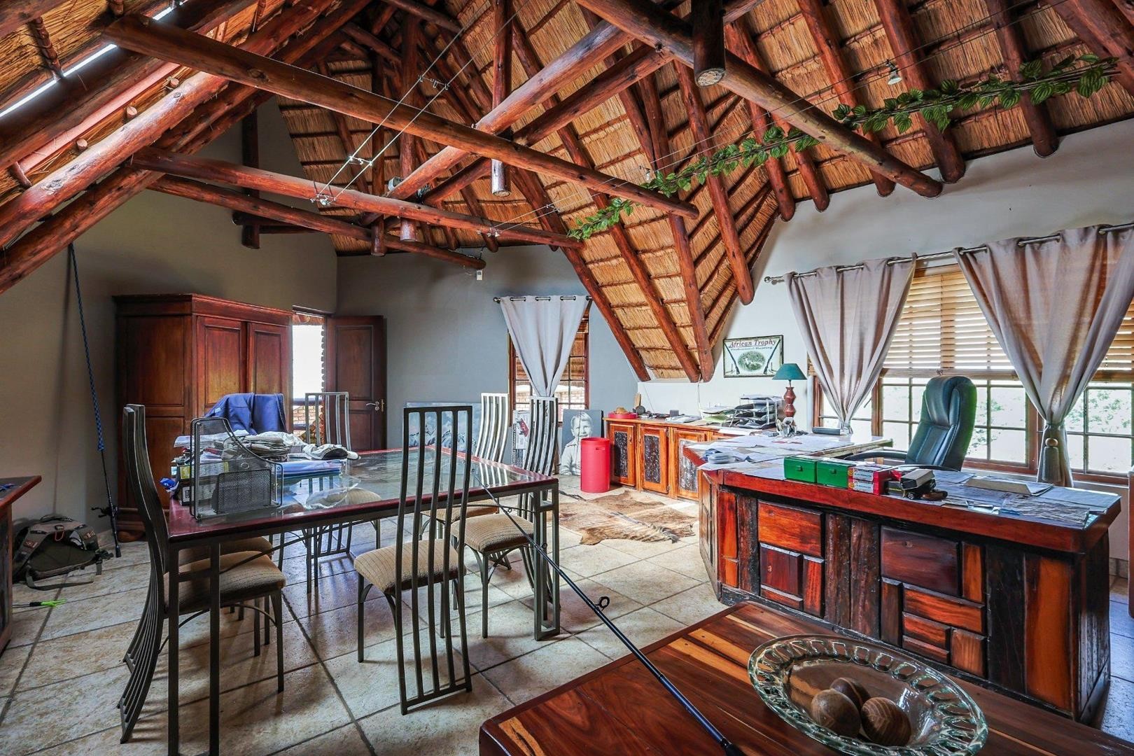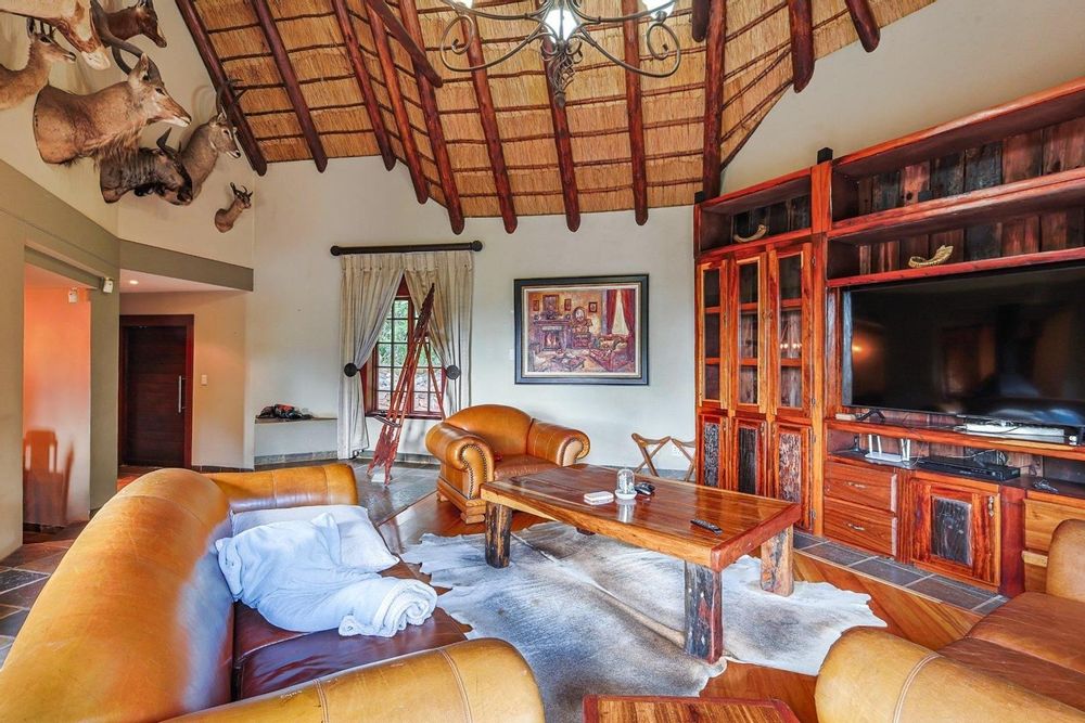 Discover an extraordinary thatch residence masterfully crafted to evoke the tranquillity, warmth and timeless charm of a luxury Bush lodge. Situated within the prestigious Mooikloof Equestrian Estate, this exceptional 5-bedroom home offers an unmatched blend of exclusivity, natural beauty and refined family living.