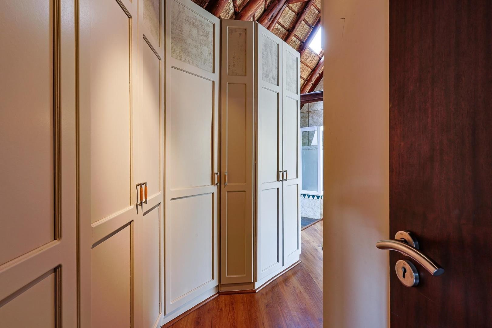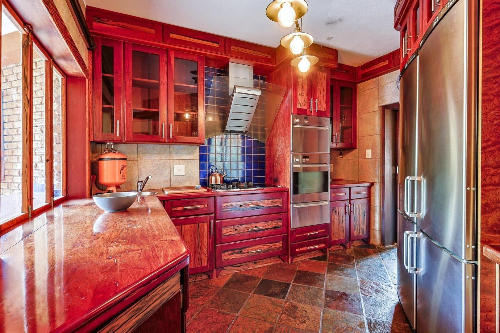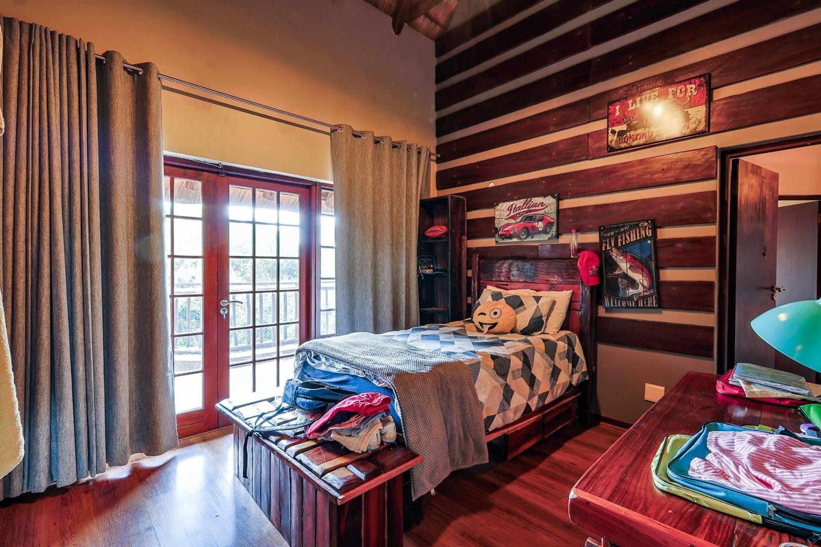 Discover an extraordinary thatch residence masterfully crafted to evoke the tranquillity, warmth and timeless charm of a luxury Bush lodge. Situated within the prestigious Mooikloof Equestrian Estate, this exceptional 5-bedroom home offers an unmatched blend of exclusivity, natural beauty and refined family living.