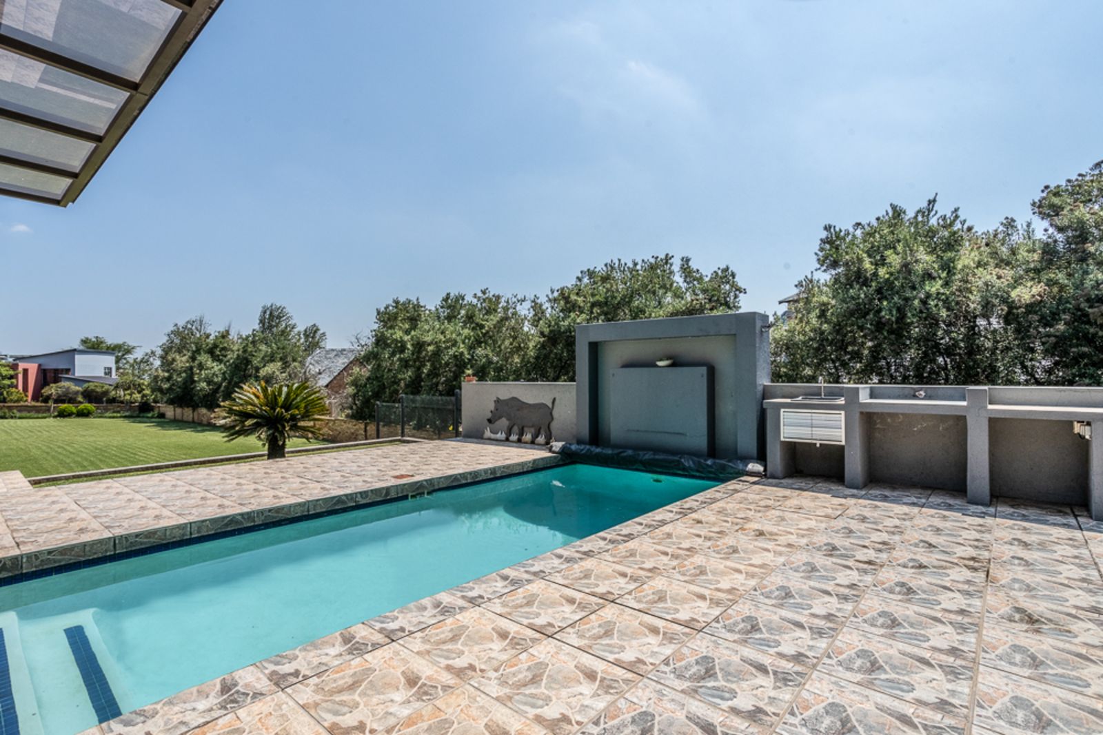 Entertain with ease in the dedicated bar area, around the boma, or by the built-in braai. The beautifully landscaped garden with an irrigation system surrounds a sparkling heated pool—creating an idyllic outdoor retreat.