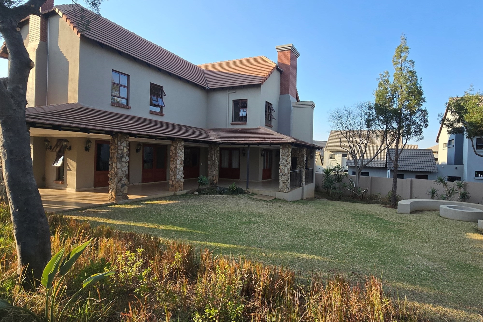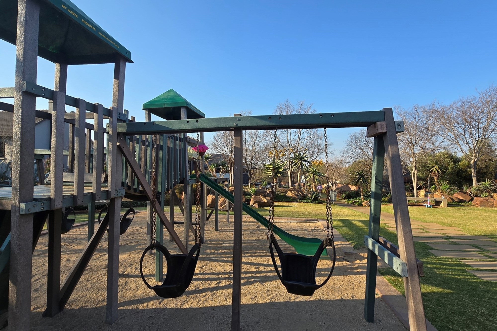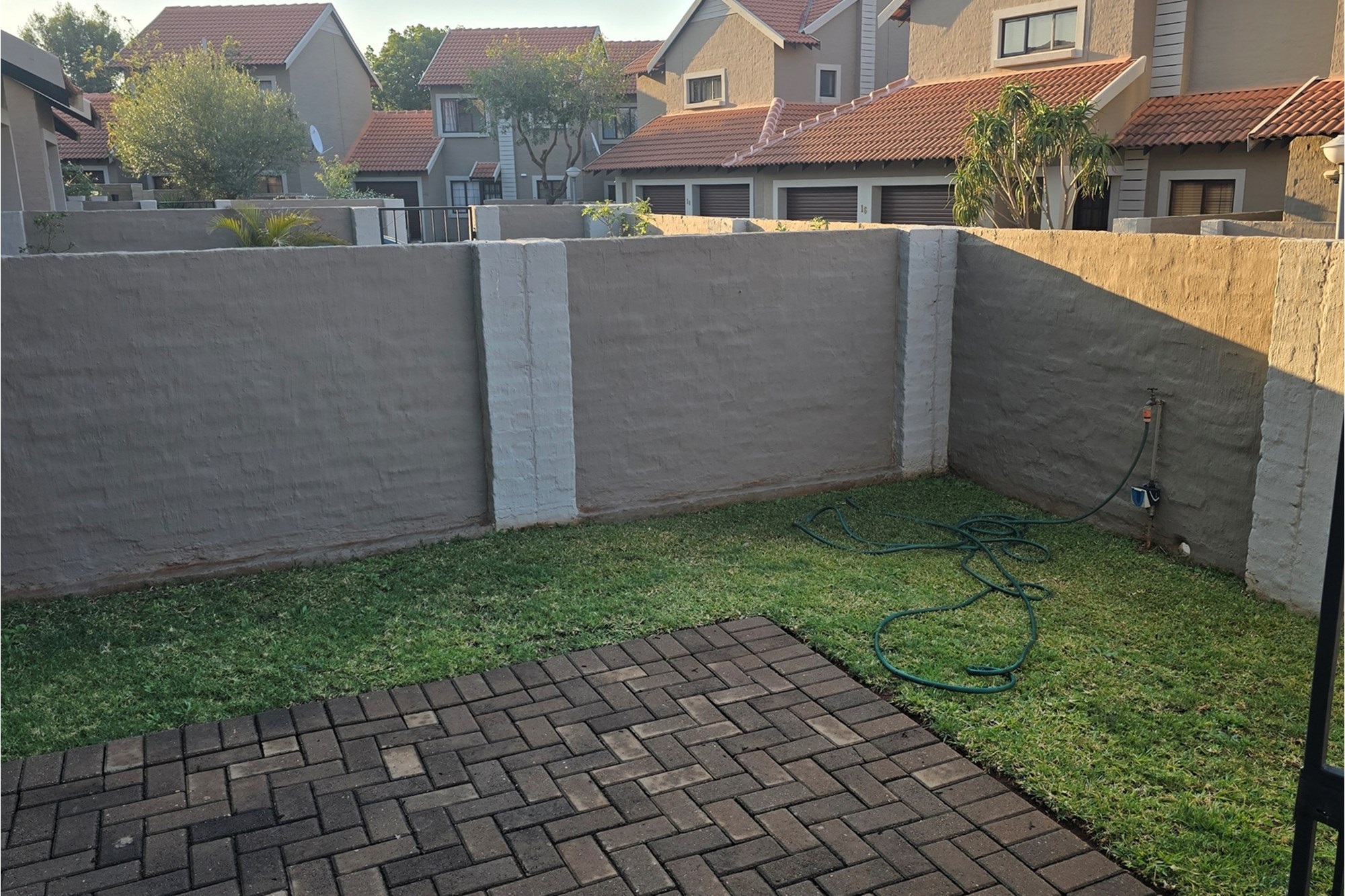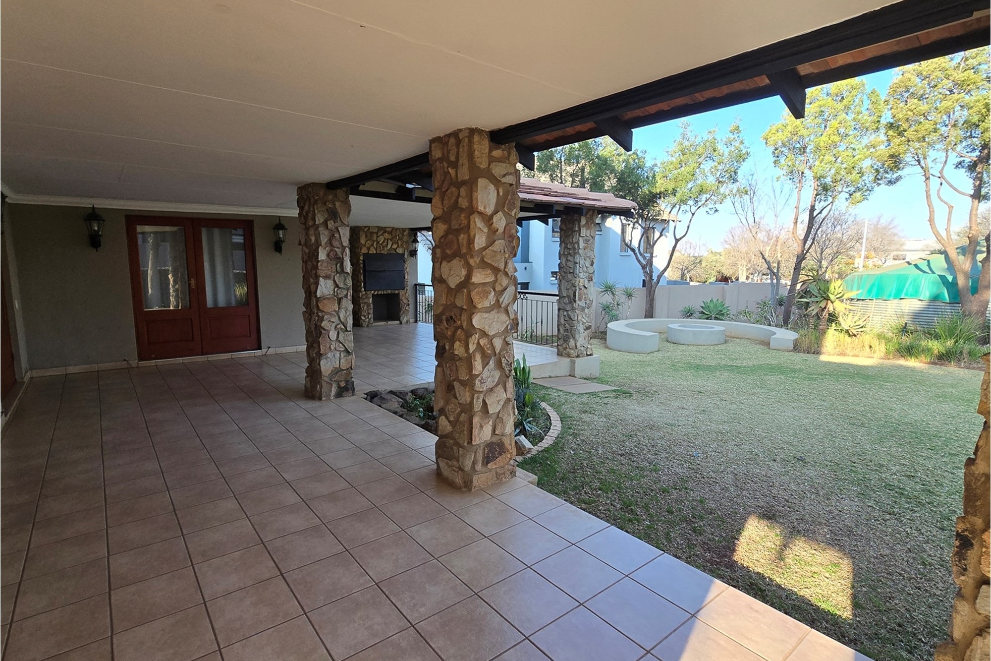 There is one garage with extra space for a working bench and a parking space. nother parking space is next to the duplex for visitors.The estate offers a wide open space with benches and jungle gyms for kids or anyone who needs some alone time and fresh air. The clubhouse has a gym, squash courts, a swimming pool and a lovely boma for private parties. The paths inspires you to jog, walk or ride a bicycle.