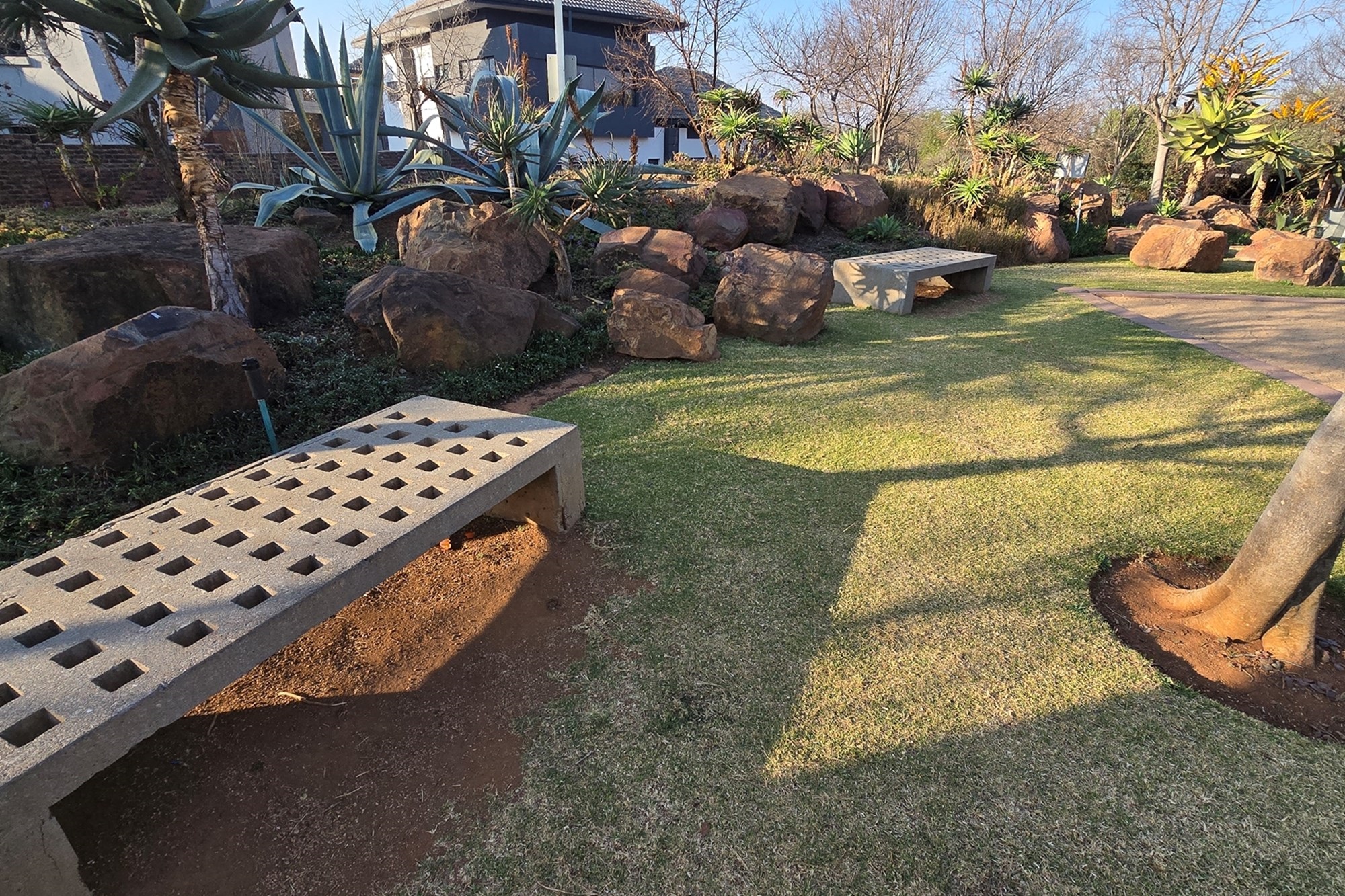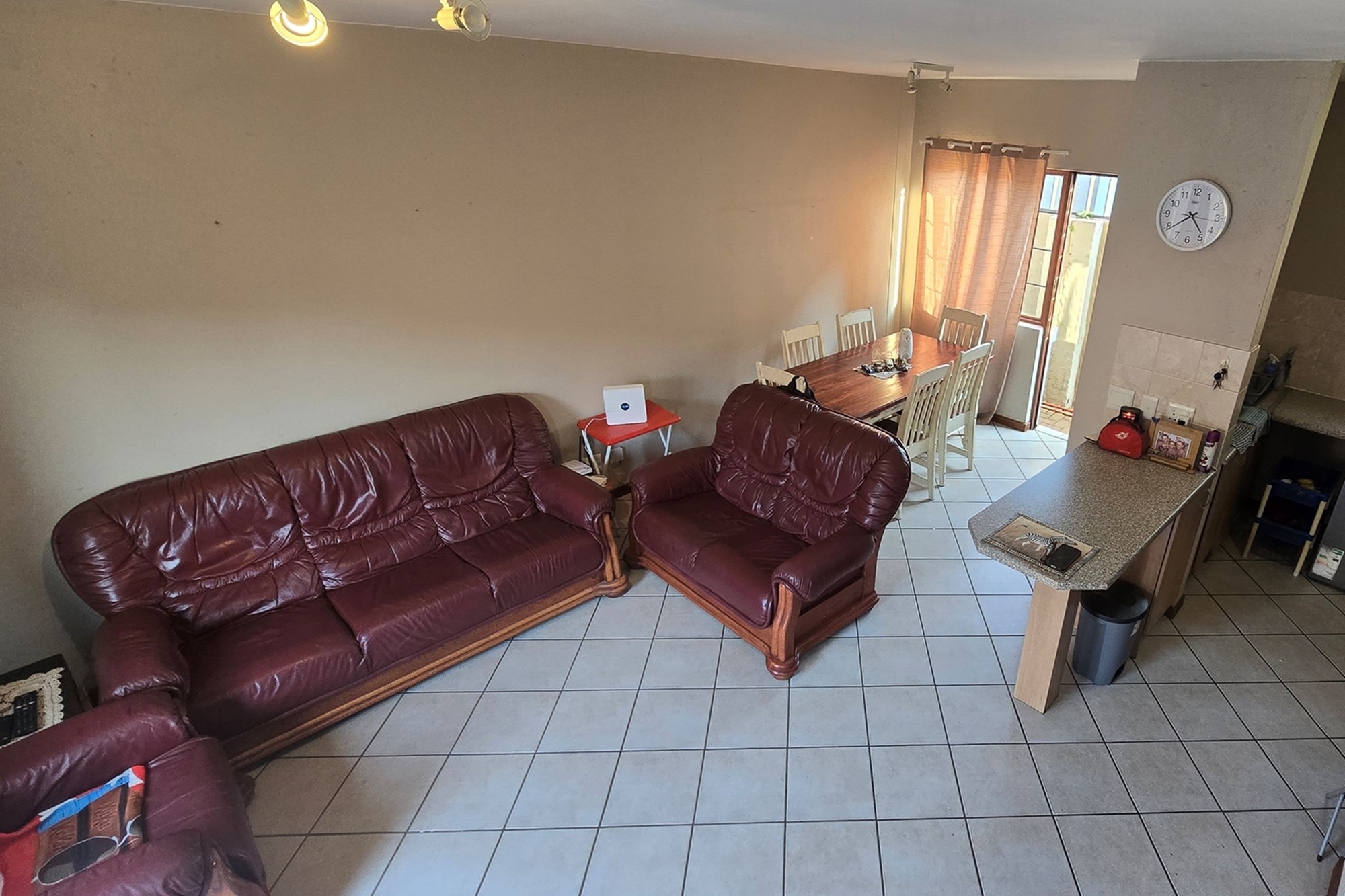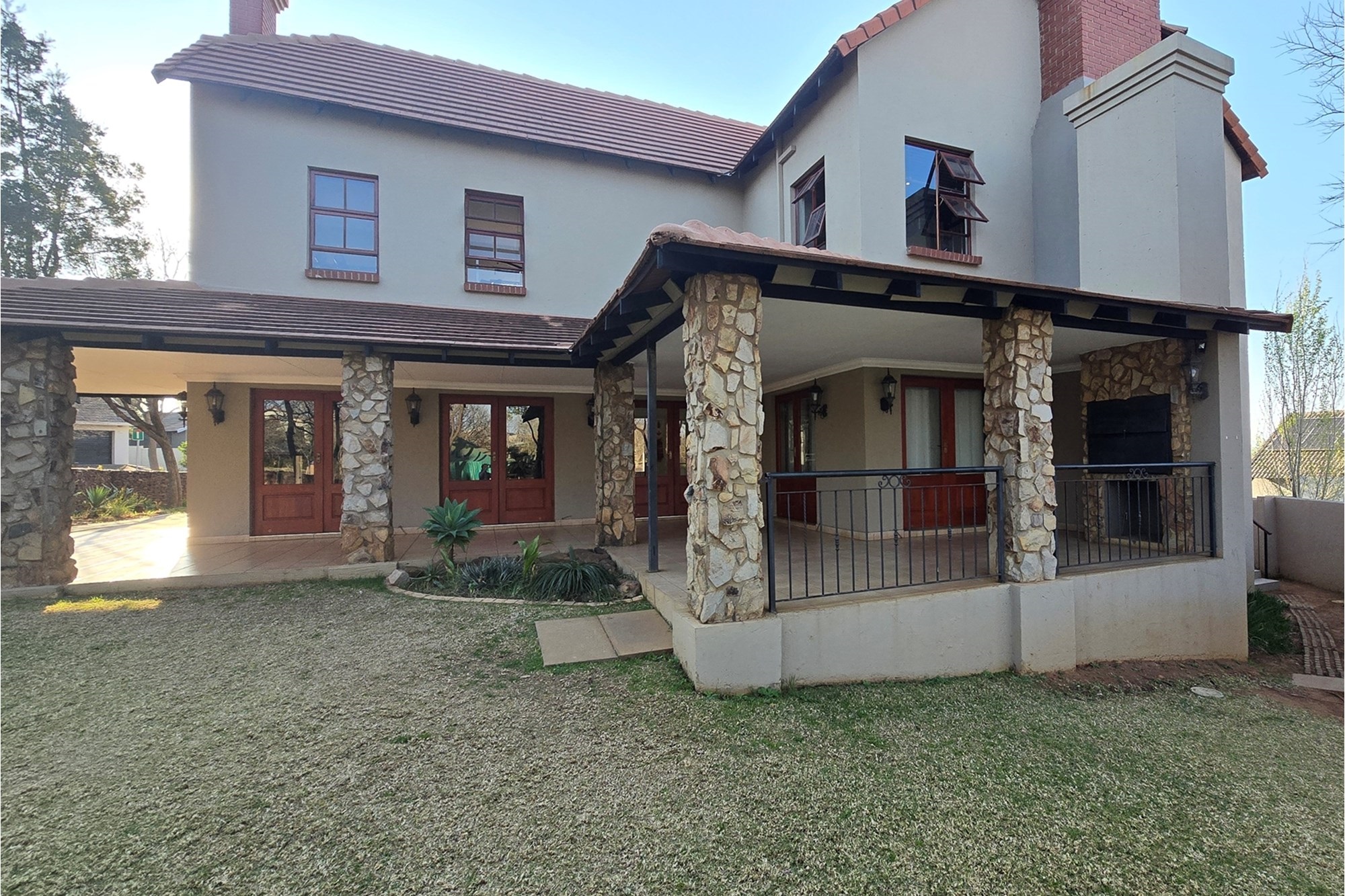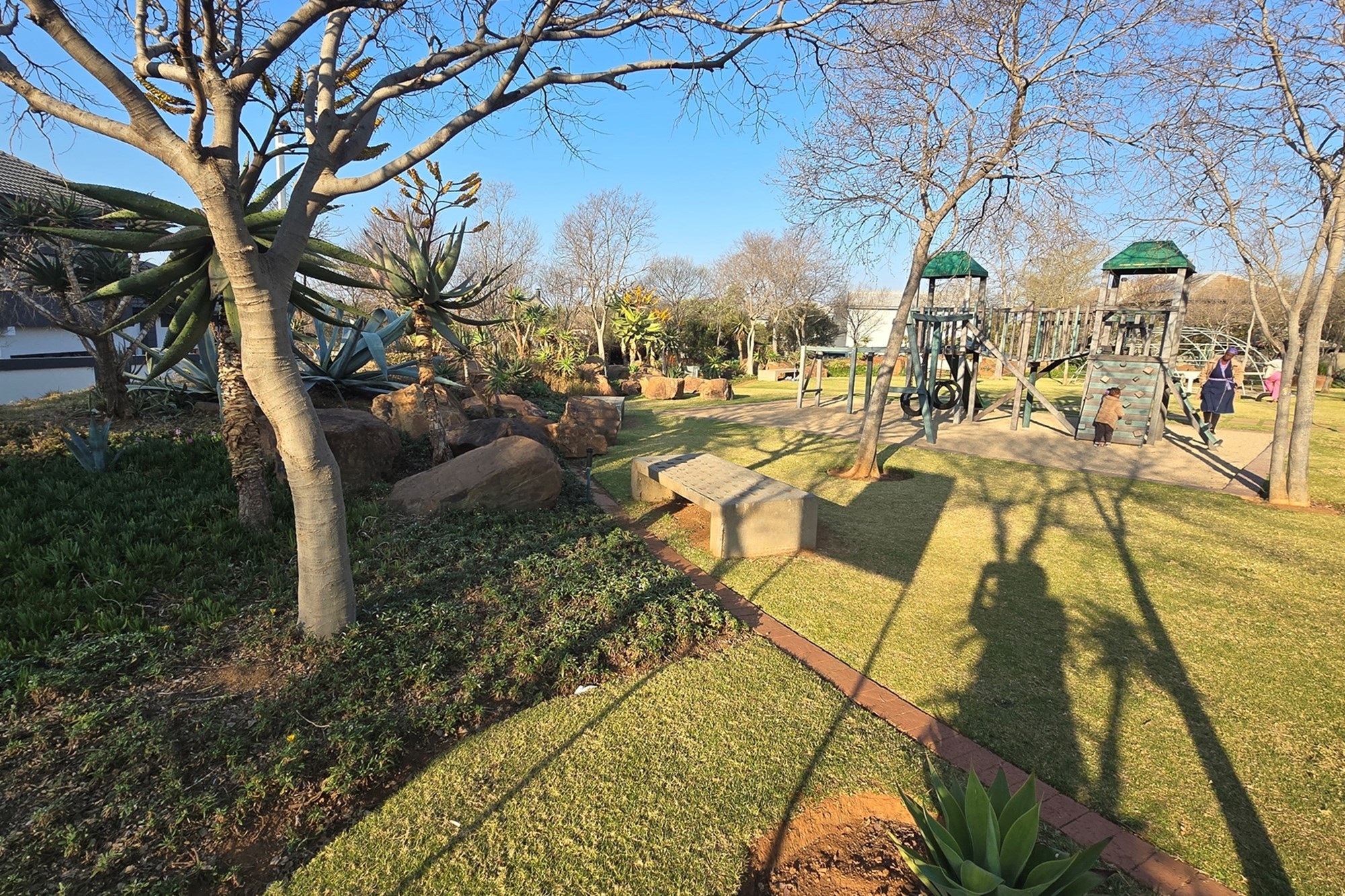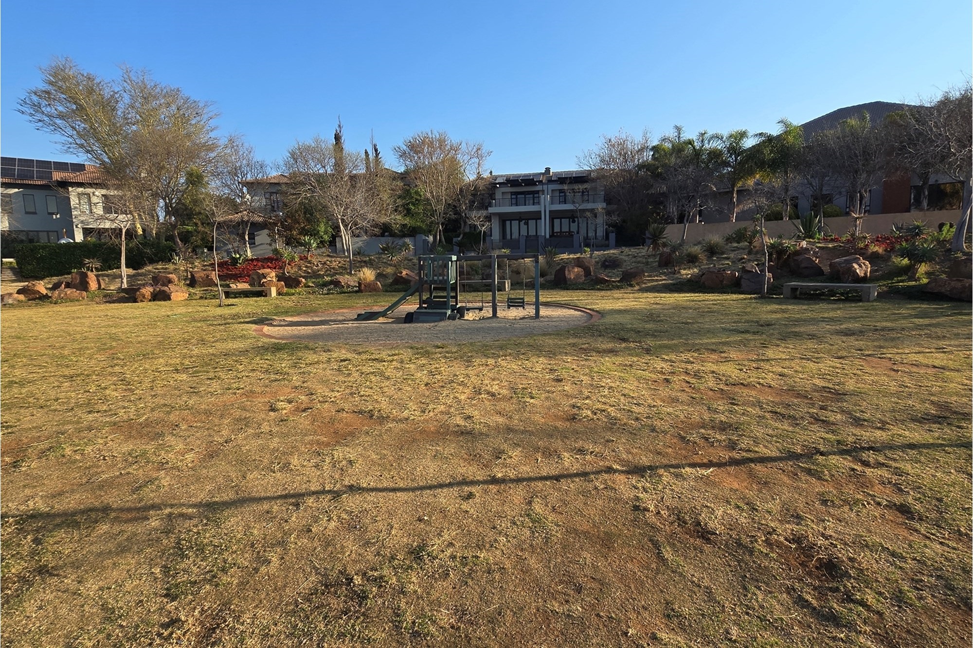 There is one garage with extra space for a working bench and a parking space. nother parking space is next to the duplex for visitors.The estate offers a wide open space with benches and jungle gyms for kids or anyone who needs some alone time and fresh air. The clubhouse has a gym, squash courts, a swimming pool and a lovely boma for private parties. The paths inspires you to jog, walk or ride a bicycle.