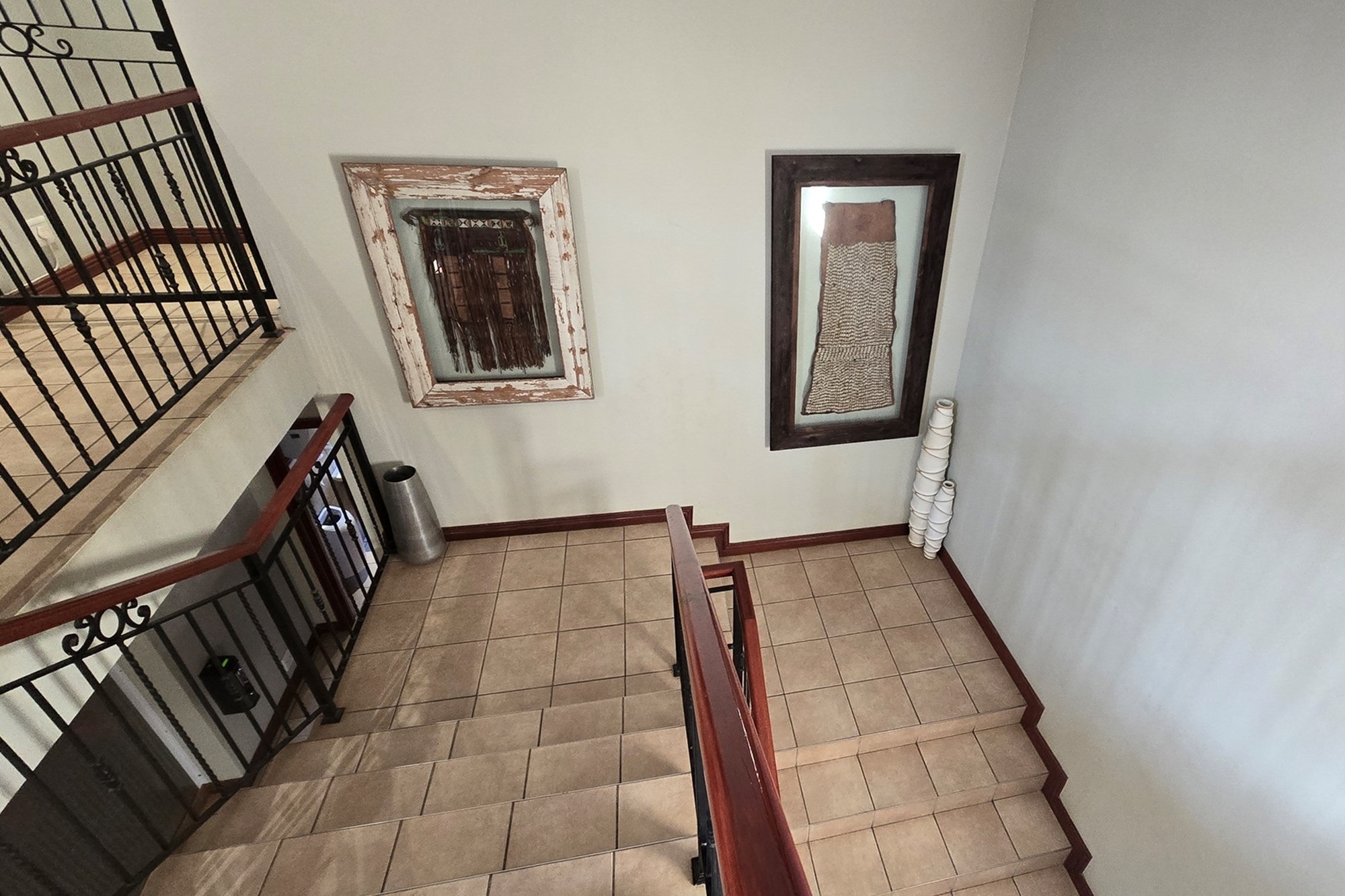 Down stairs: