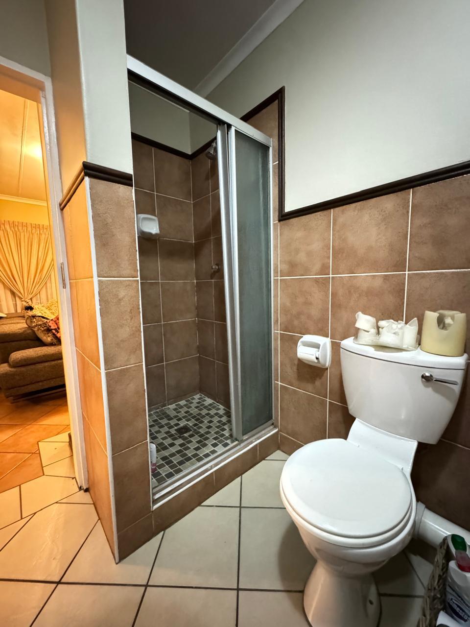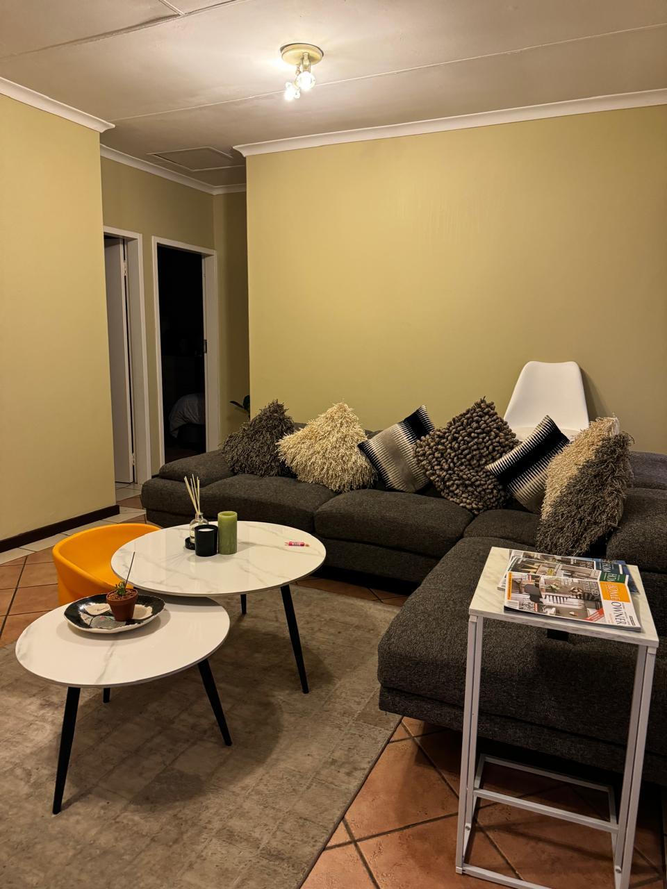 The TV and dining area flows out through sliding doors onto a private balcony, where you can unwind while enjoying lovely views over the hills of Pretoria East.