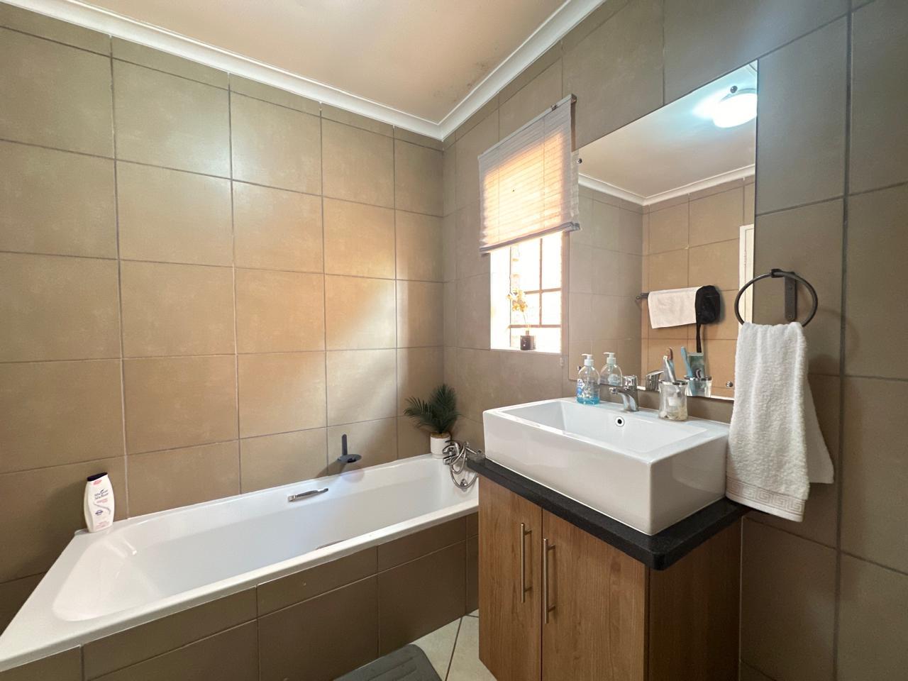 Call today to view this spacious modern 2 bedroom, 2 bathroom simplex with a double garage and a private garden in the secure Stone Forest, Mooikloof Ridge.