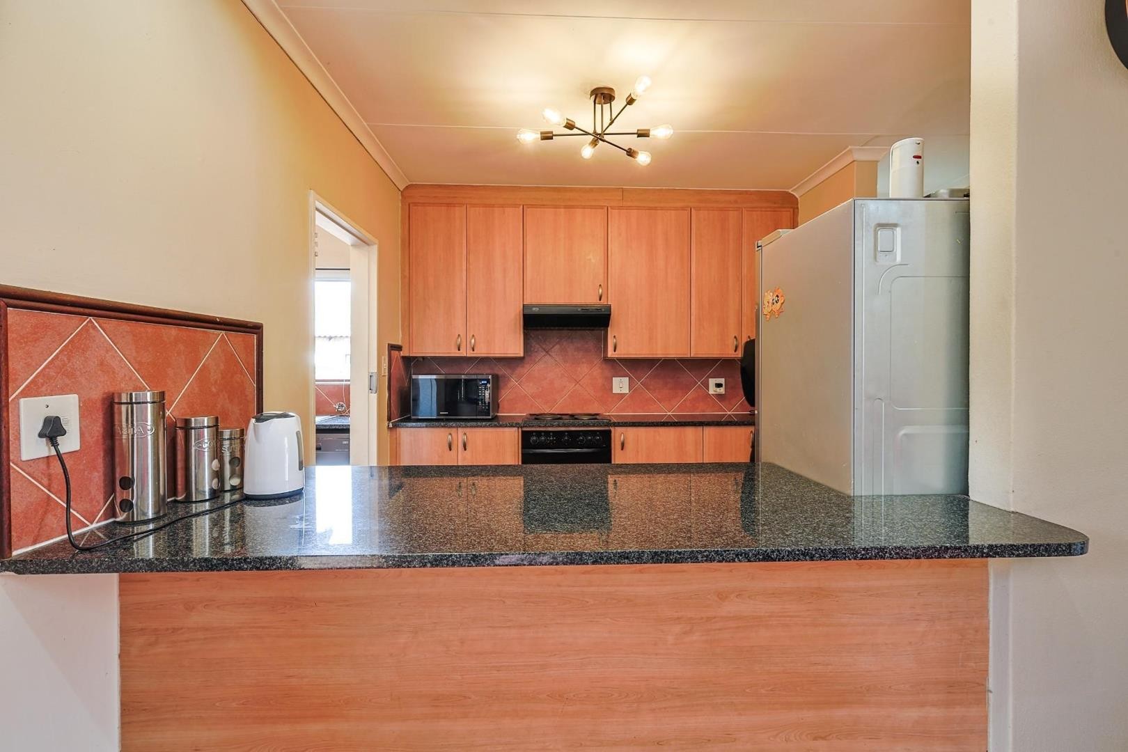 Modern Kitchen – Granite countertops, ample cupboard space, and a separate scullery with room for 3 undercounter appliances and a double fridge.