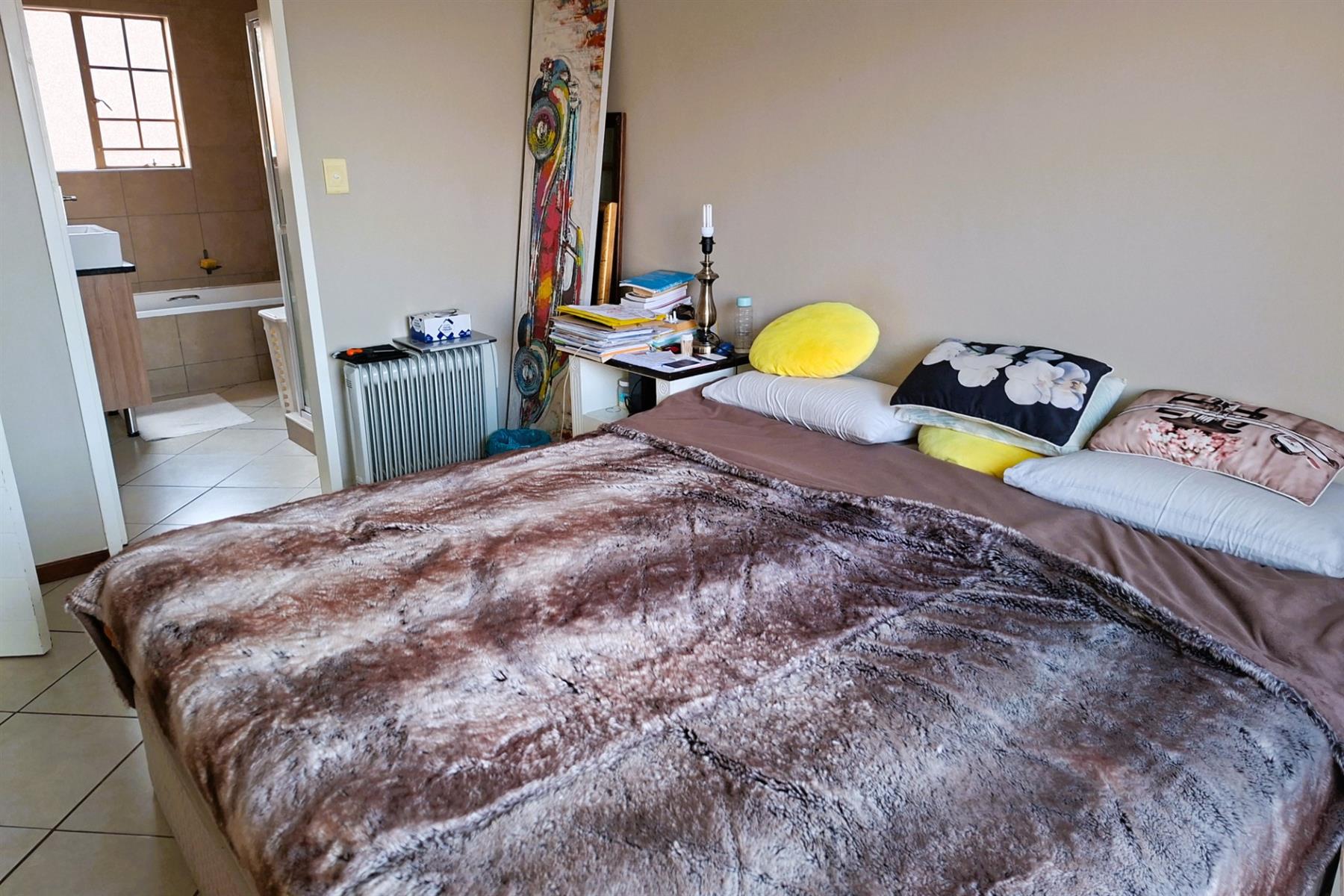 This neat townhouse offers a modern kitchen with granite tops, space for three electrical appliances, an extractor fan above the stove, and room for a double-door fridge/freezer. Enjoy a comfortable lounge and dining area, plus three spacious bedrooms. Both bathrooms feature baths, showers, toilets, and basins, with the main bedroom boasting an en-suite.