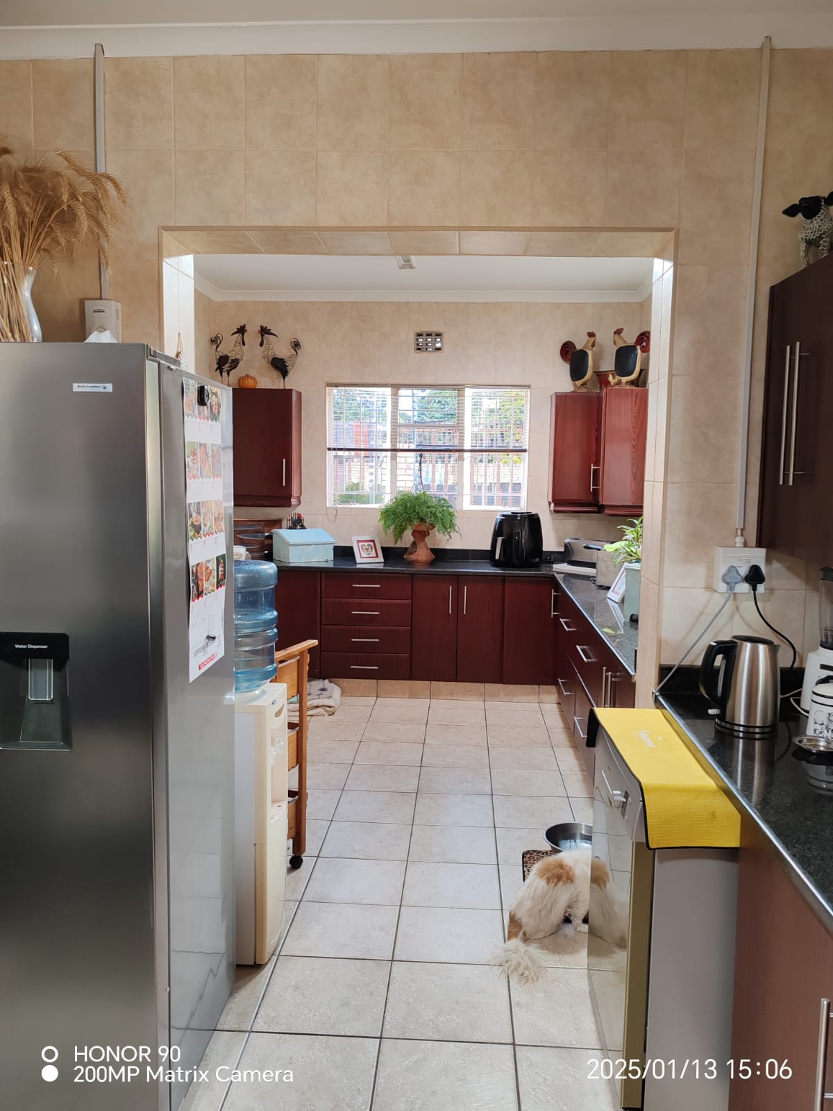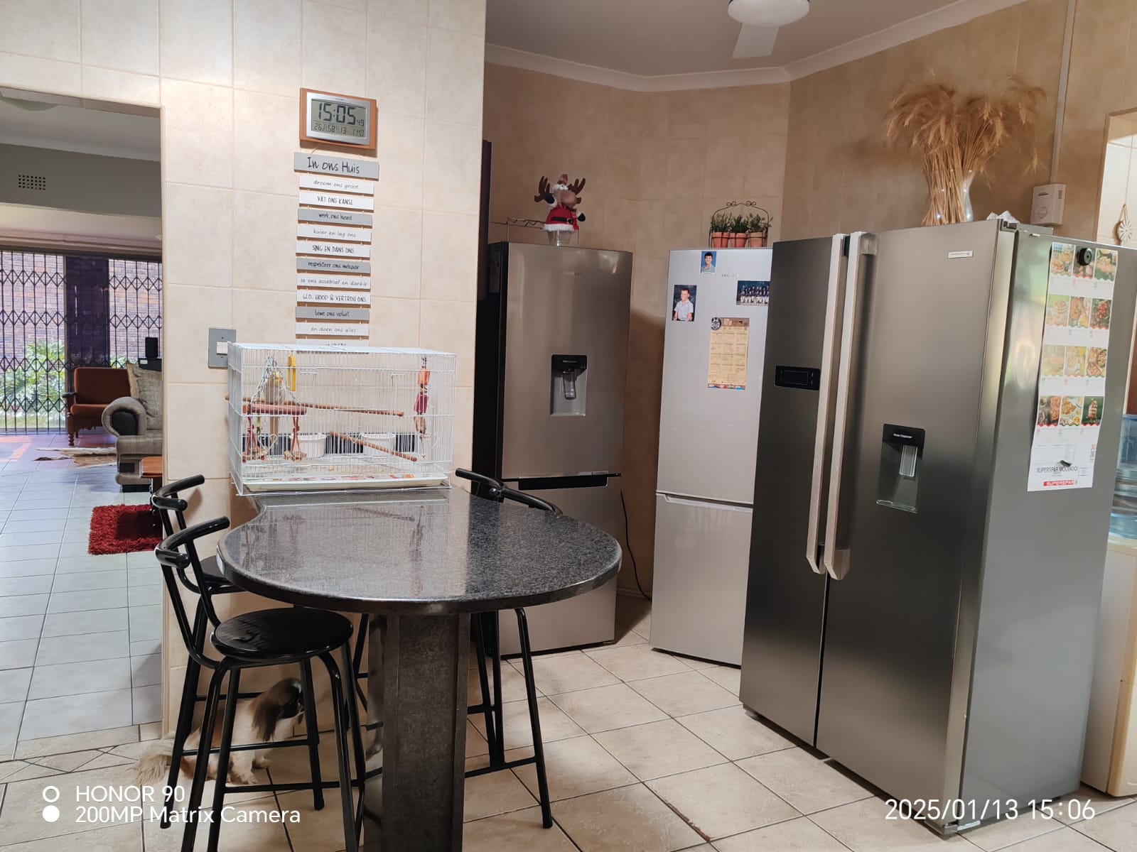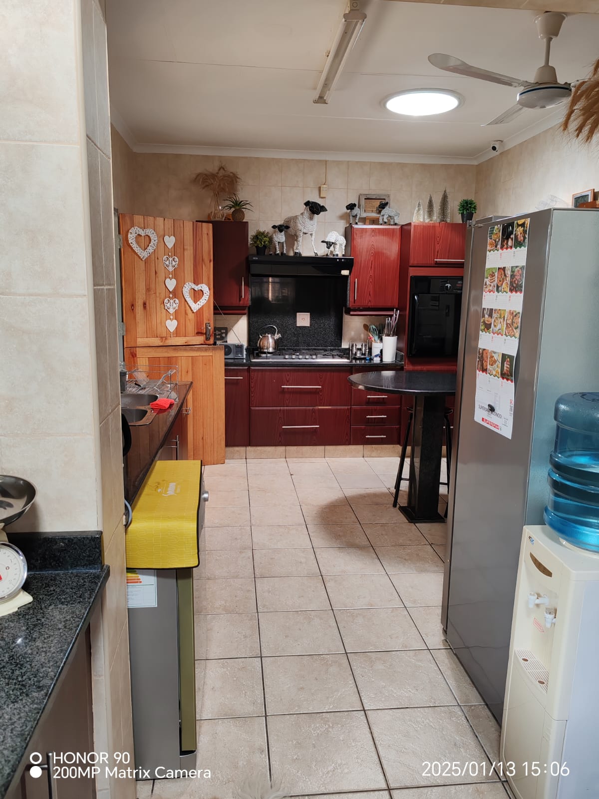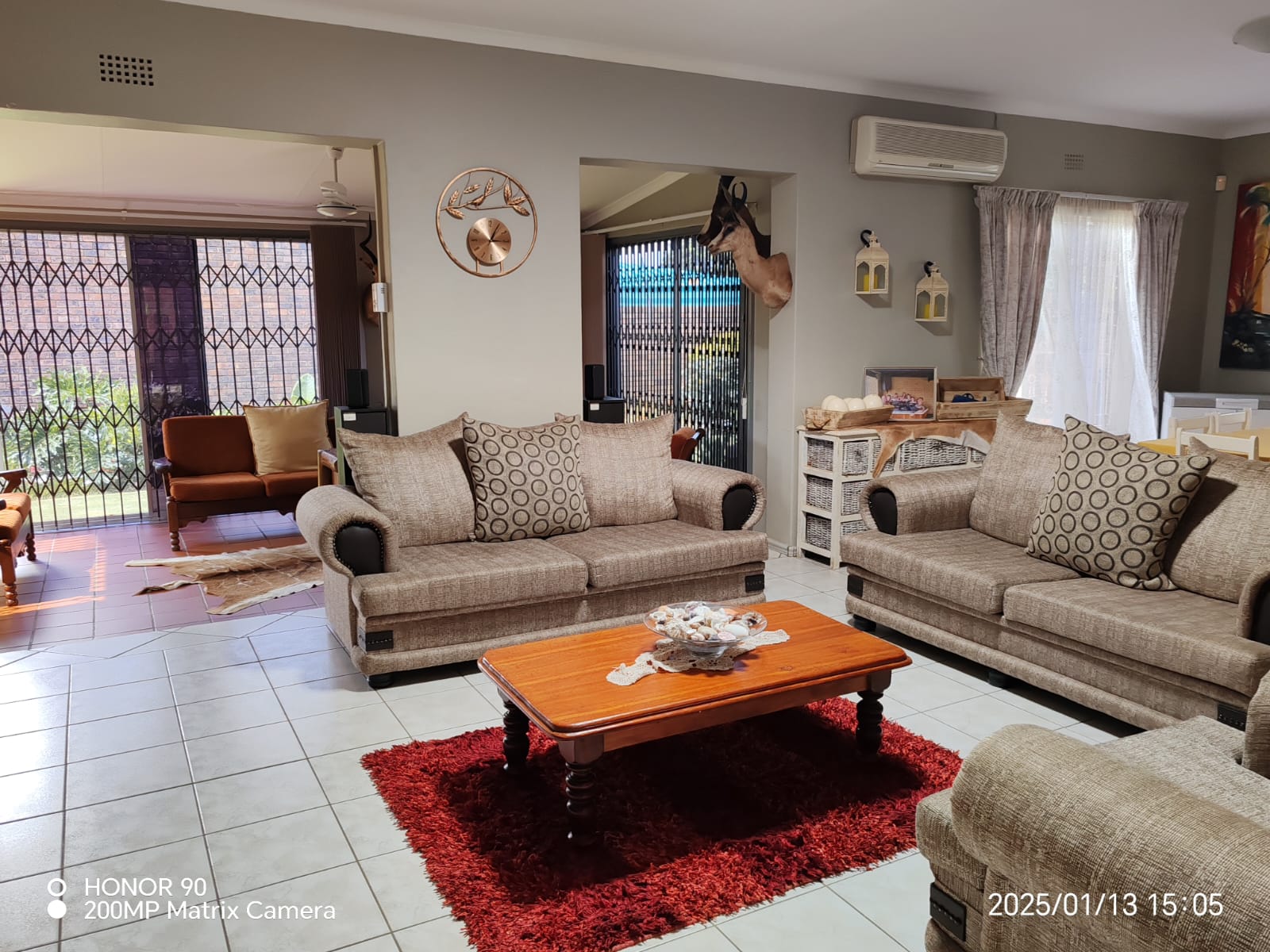 The main bedroom is en-suite and fitted with ample cupboard space, while the two additional bedrooms share a full bathroom. Living areas include two lounges and a dining room, providing more than enough space for relaxation and entertainment.