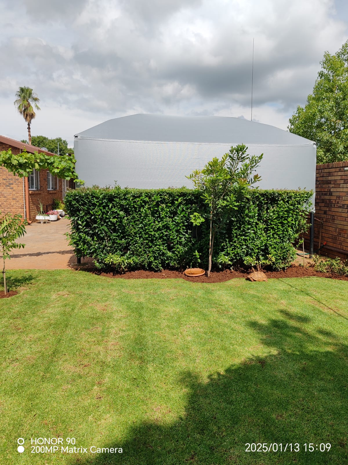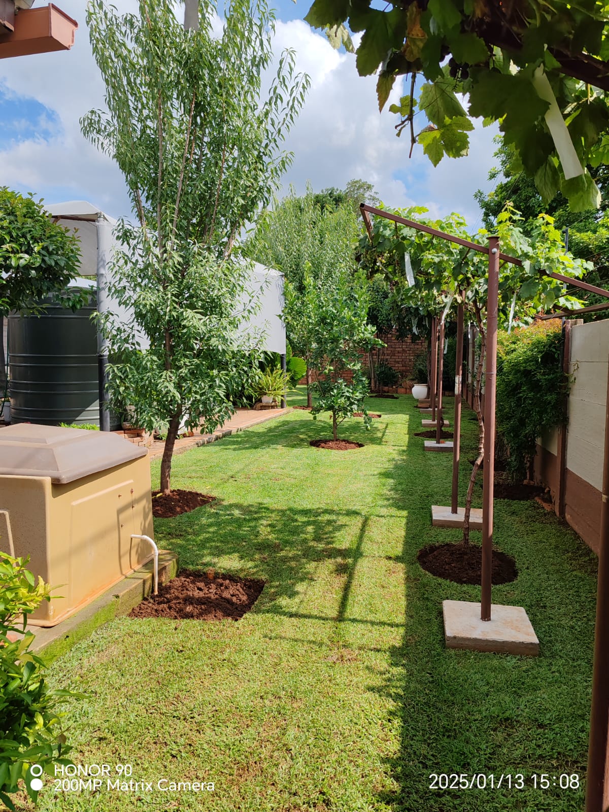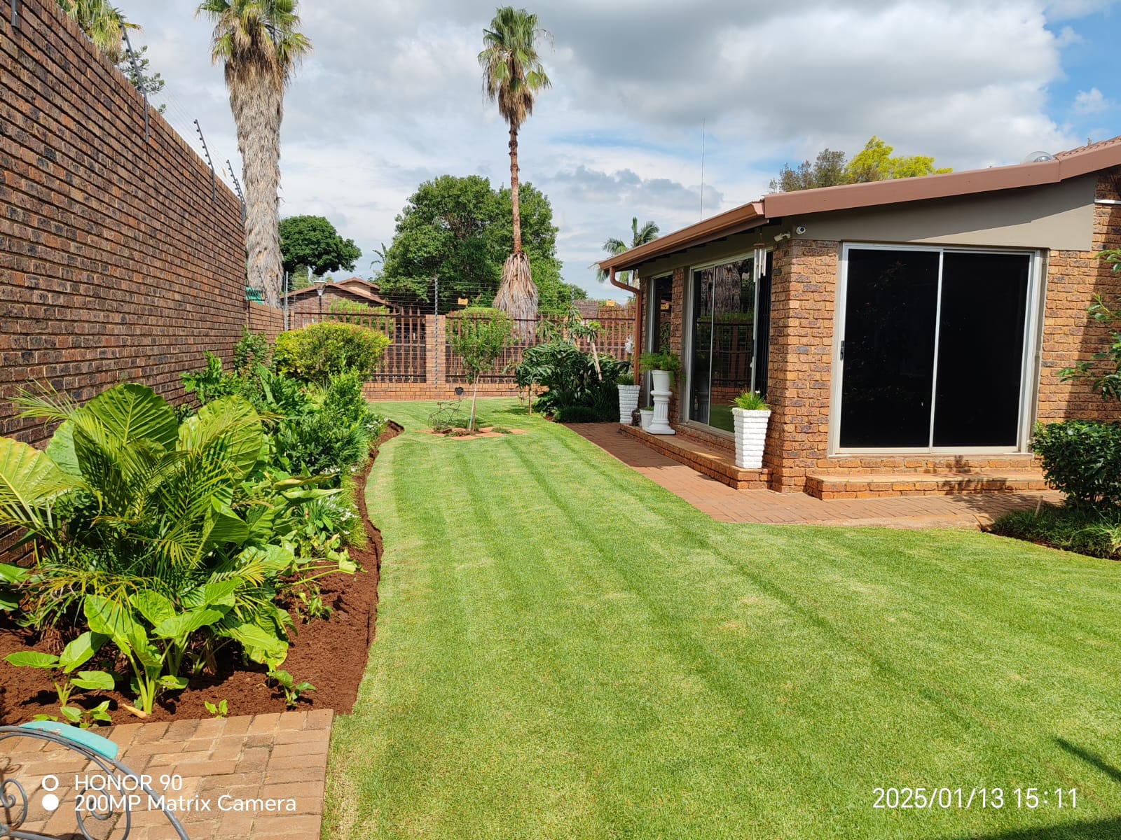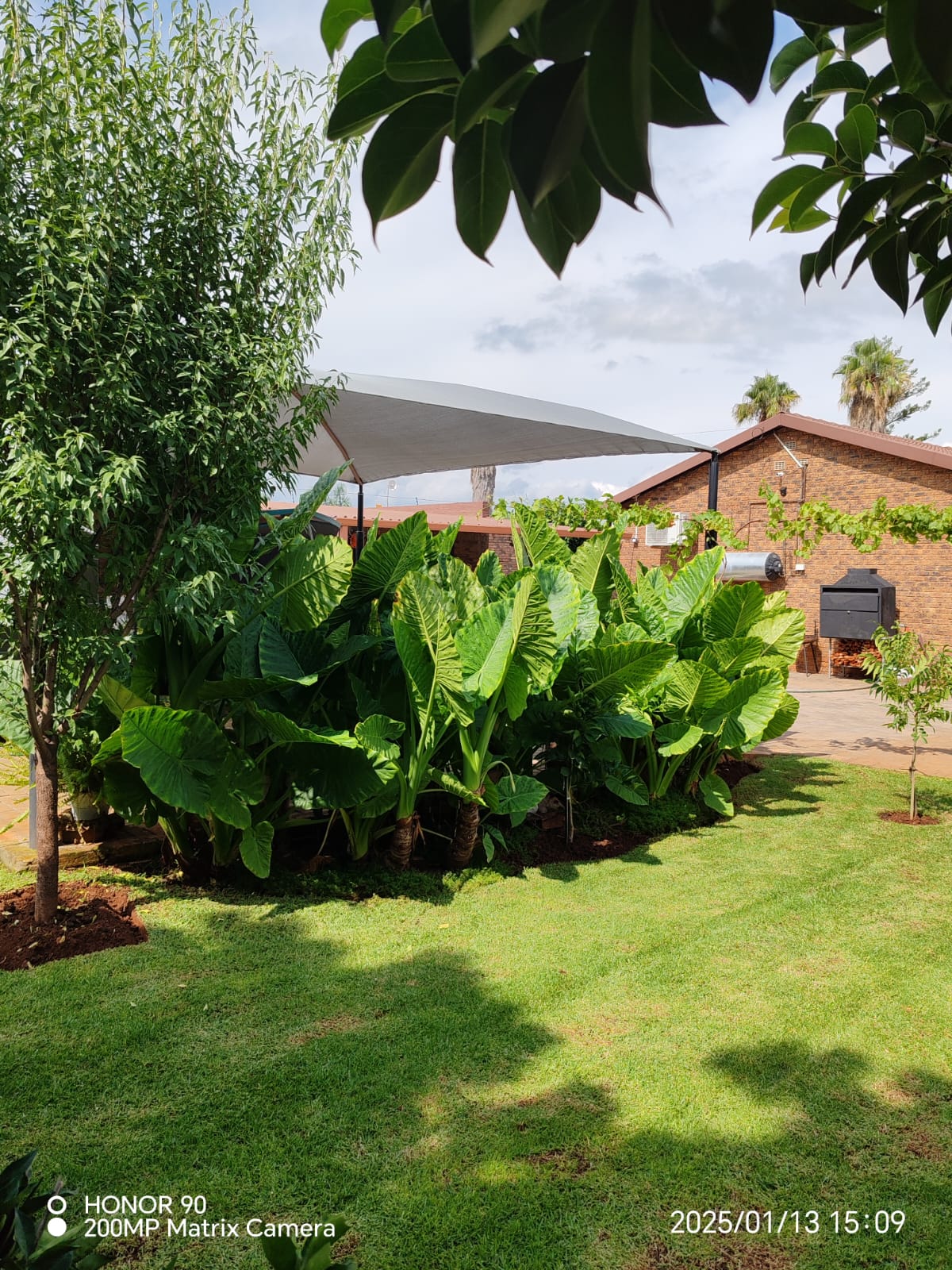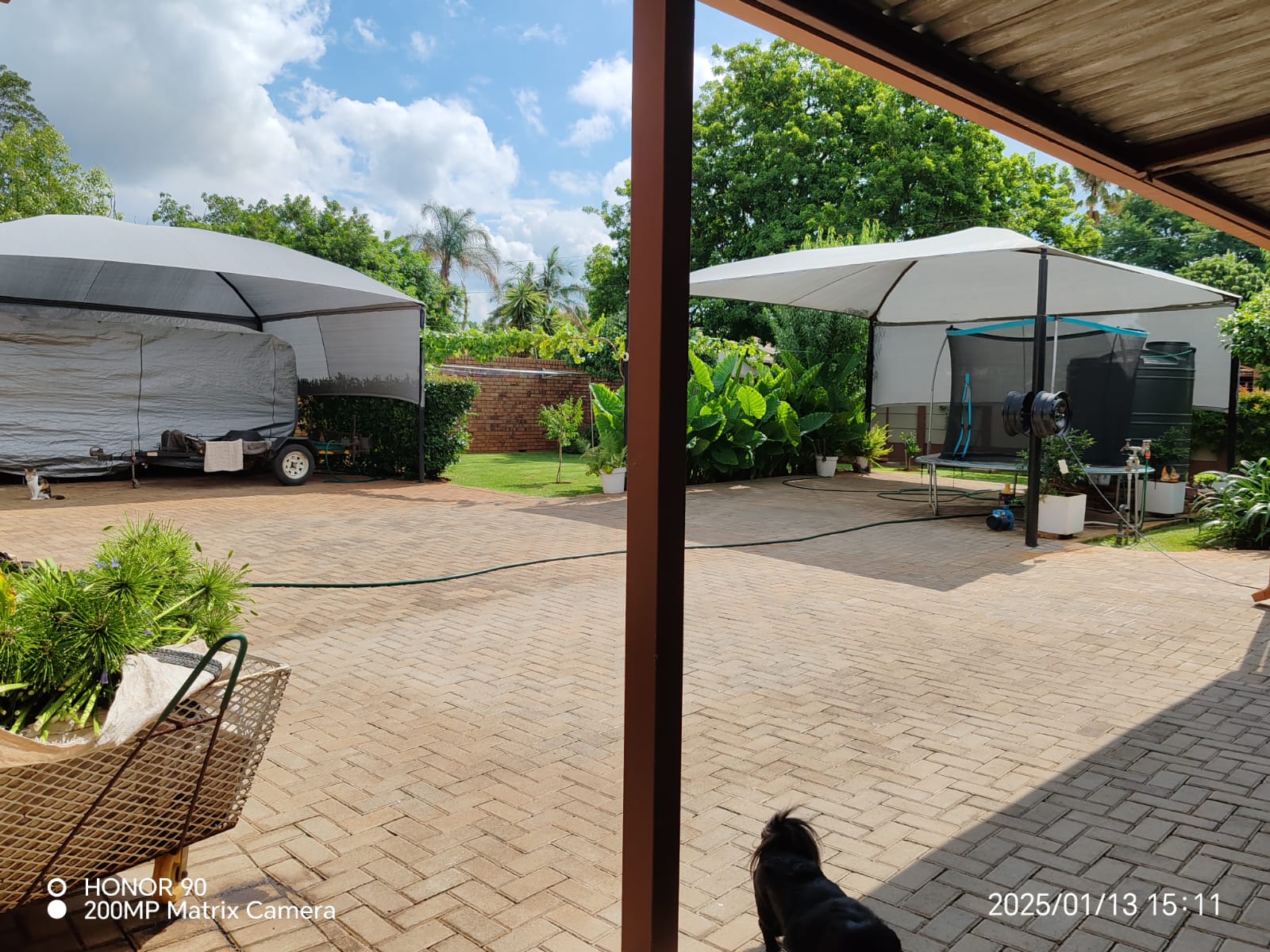 Outdoor living is just as impressive, with a landscaped garden that stays lush and green year-round thanks to a borehole, JoJo tank with pressure pump, and an automated sprinkler system. The covered entertainment area, complete with its own toilet and basin, makes hosting family and friends effortless.