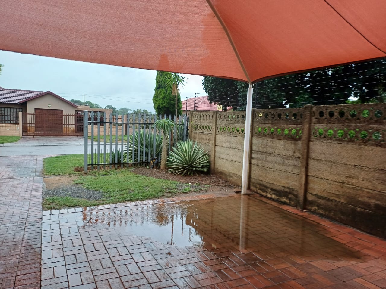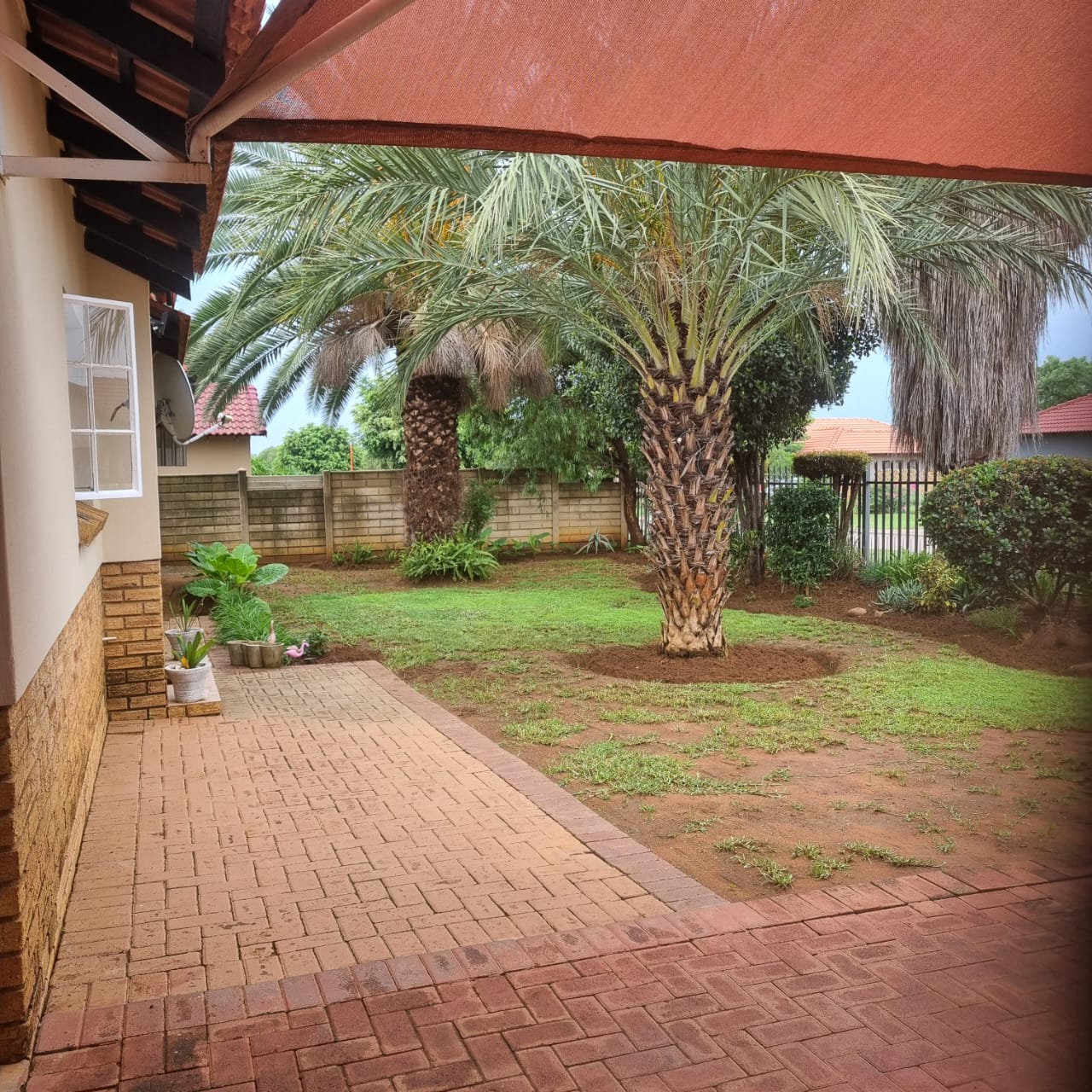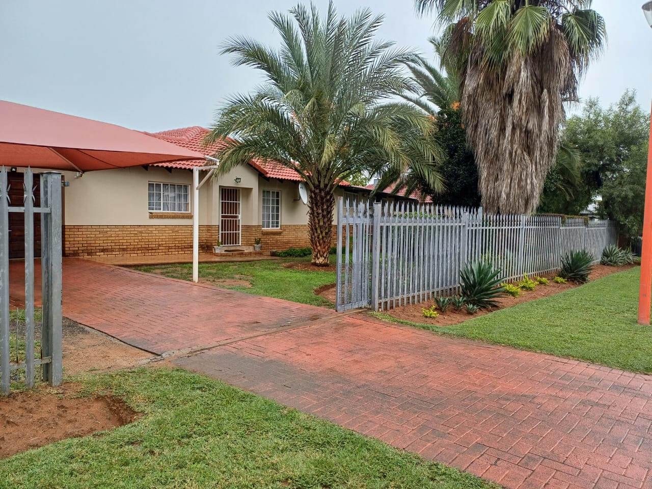 Palisade fencing at the front with solid concrete walls around the rest of the property.