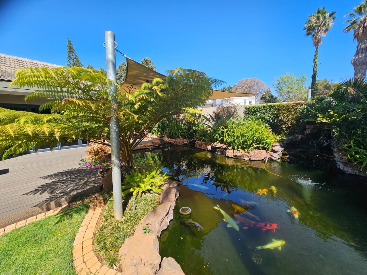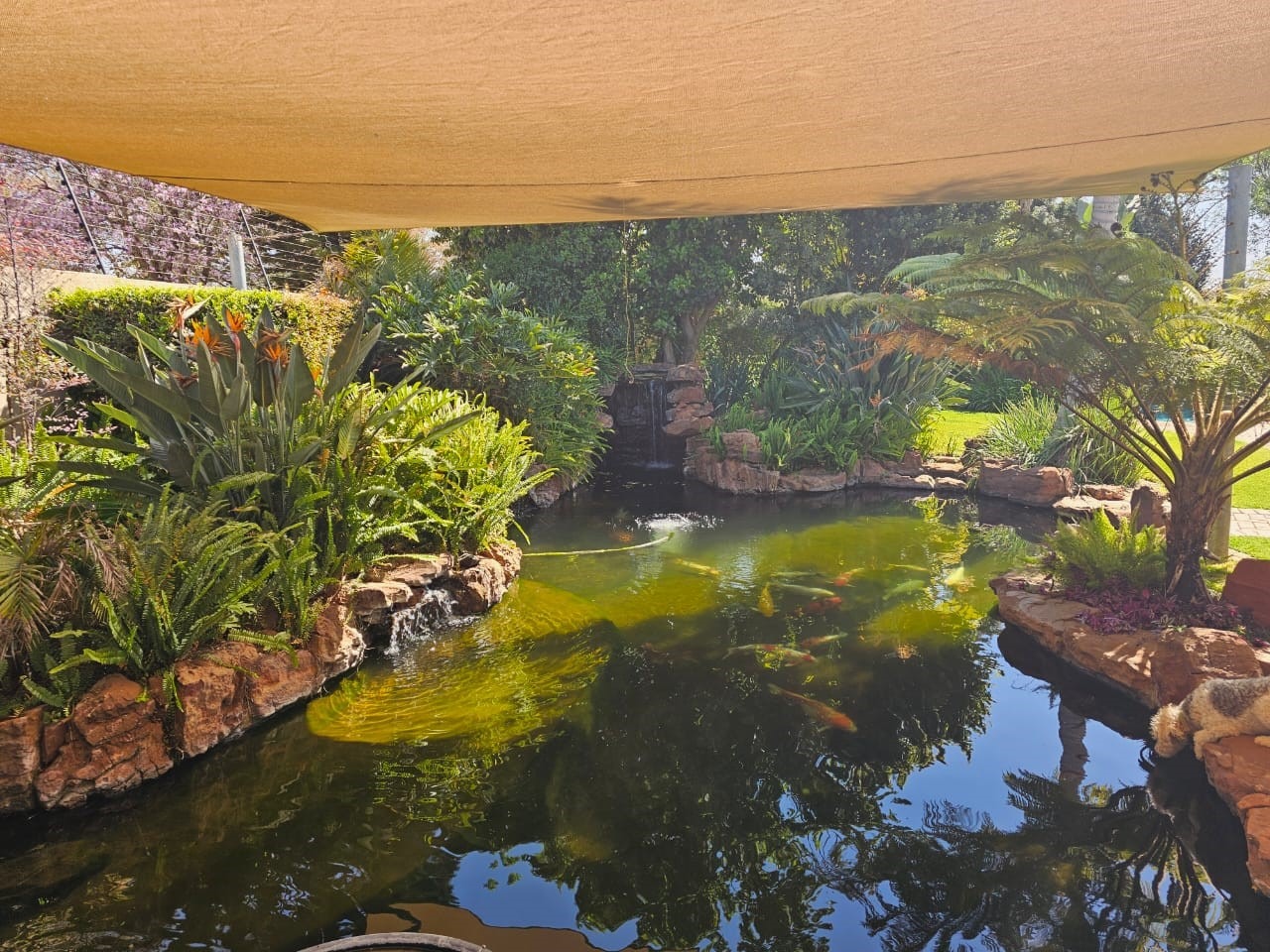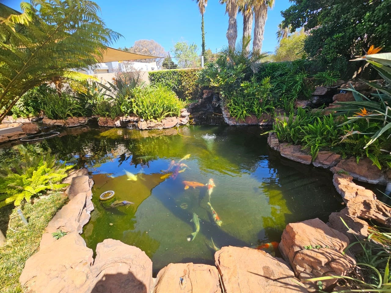 oA stunning koi fish dam, creating a peaceful view around the pool area