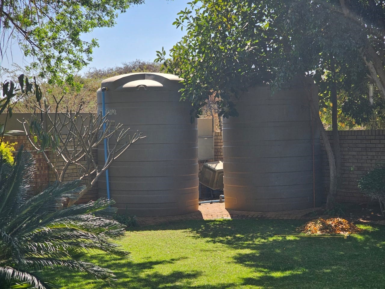 oWater storage with two tanks and pressure pumps, along with a borehole for uninterrupted water supply