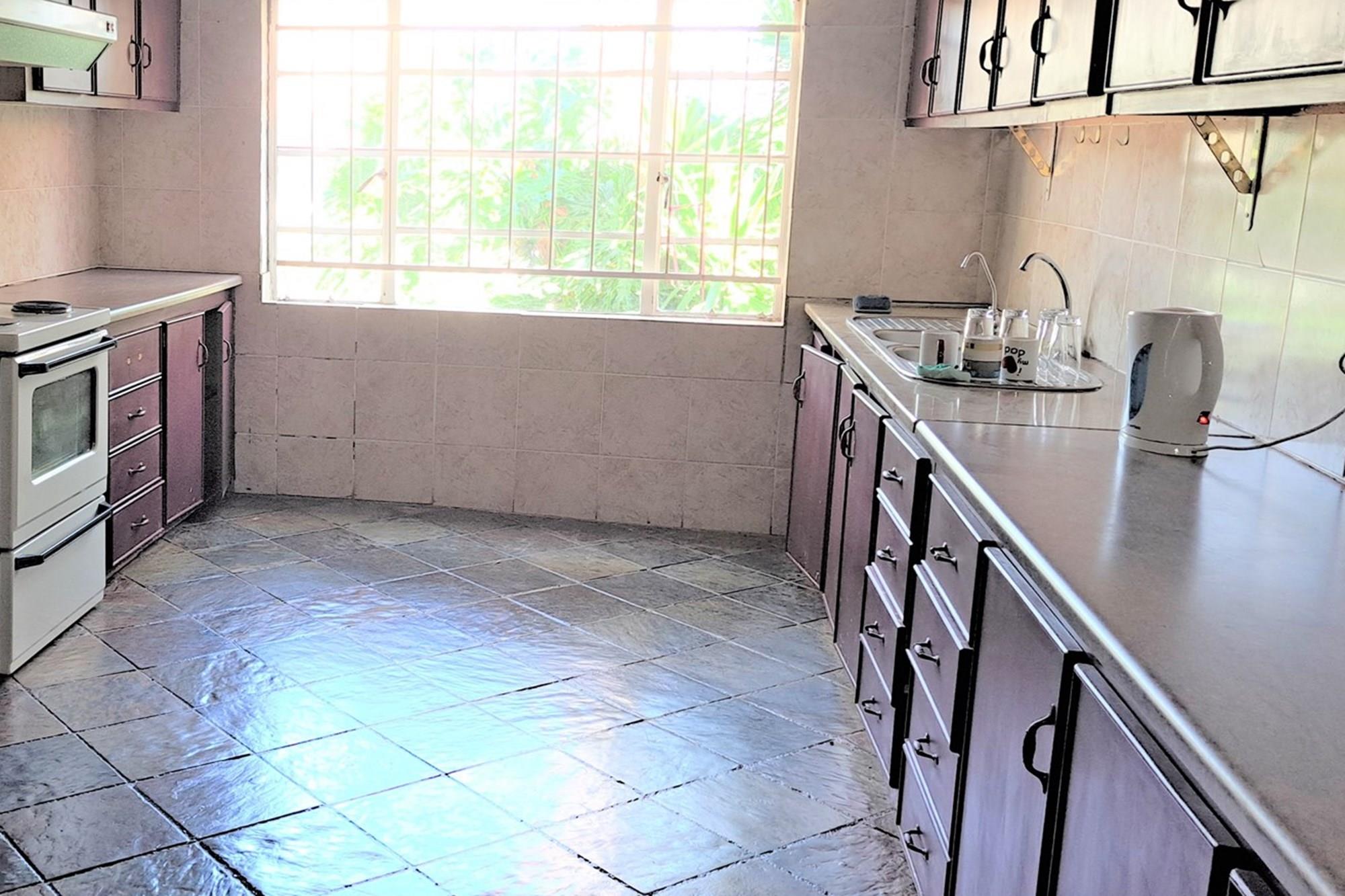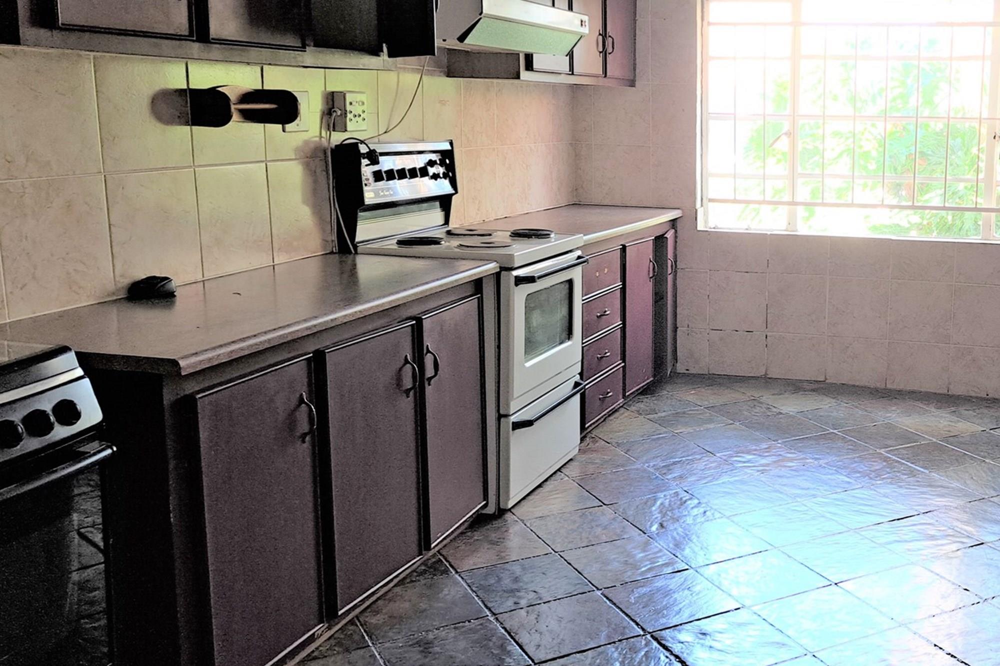 Spacious kitchen with ample cupboards and storage space.