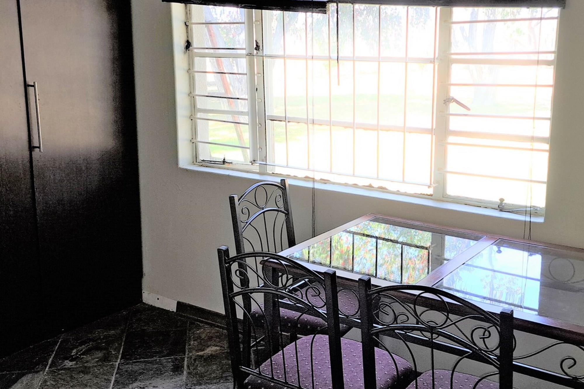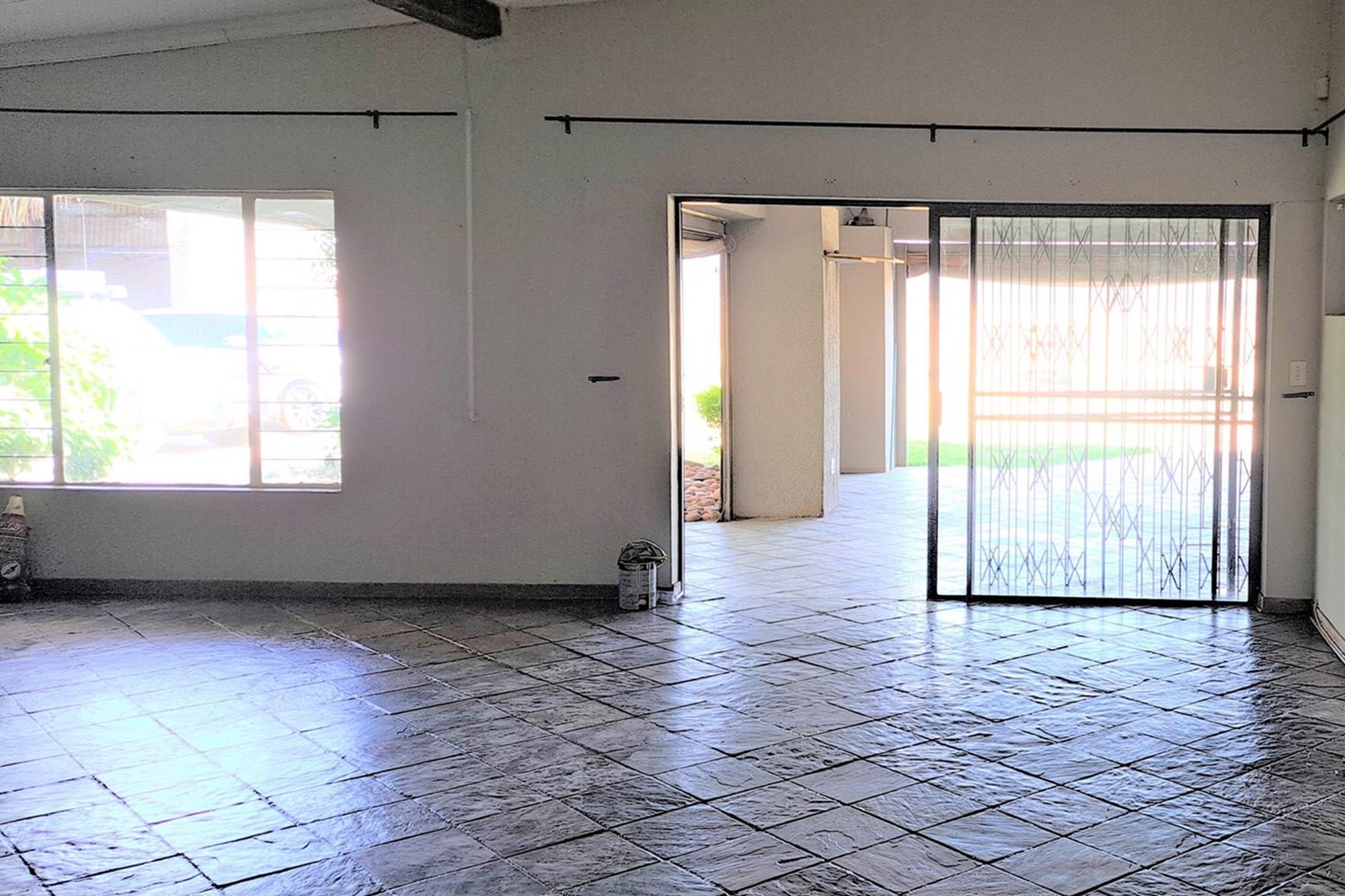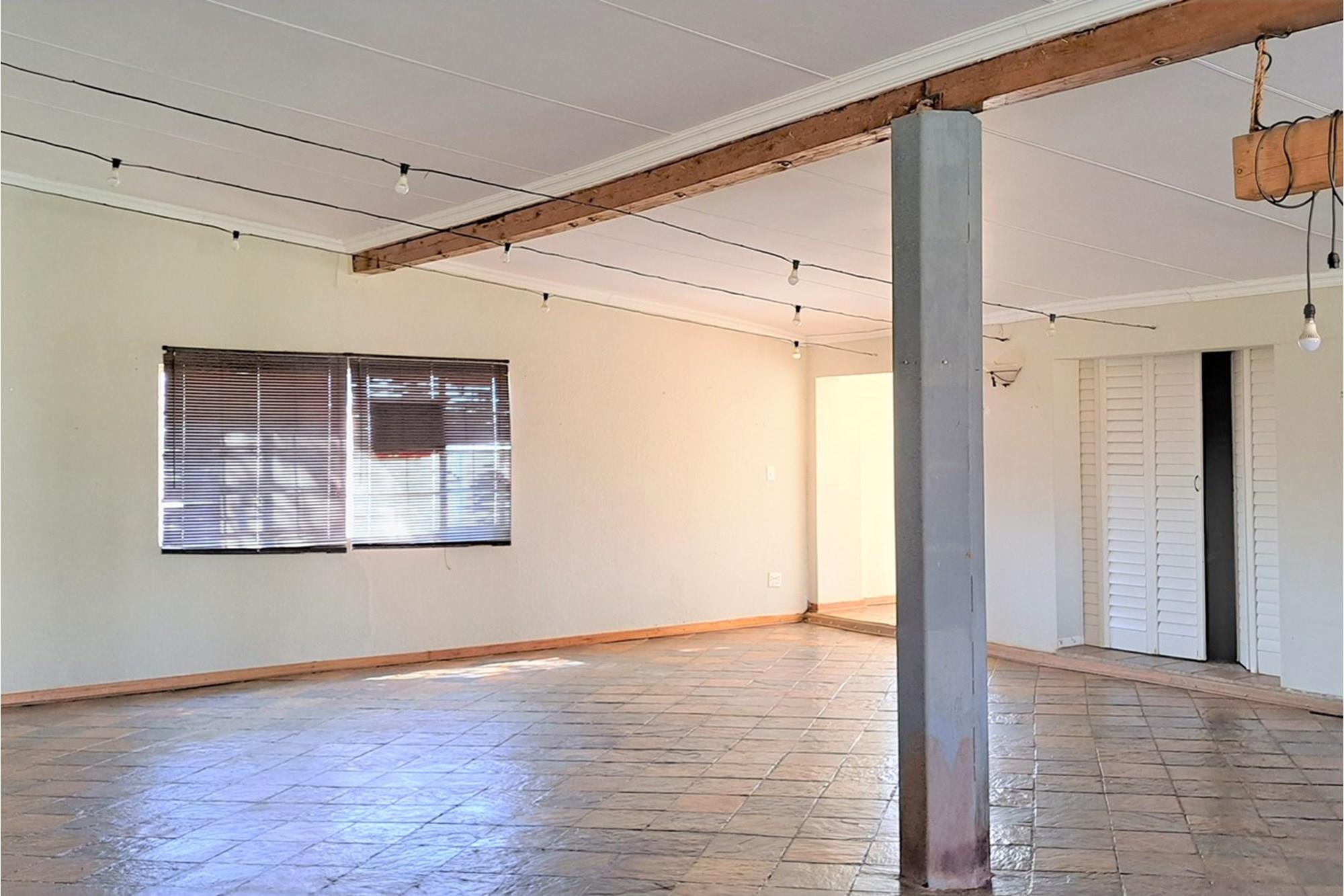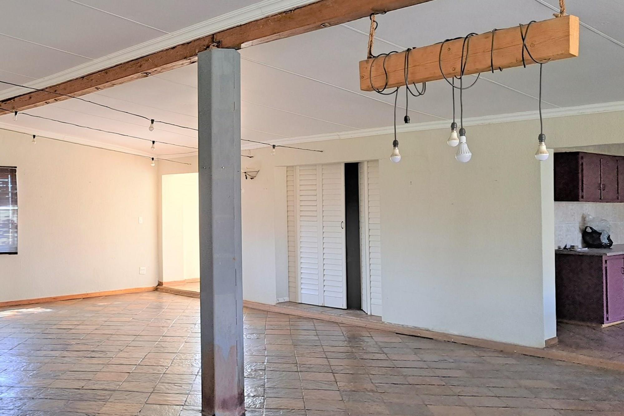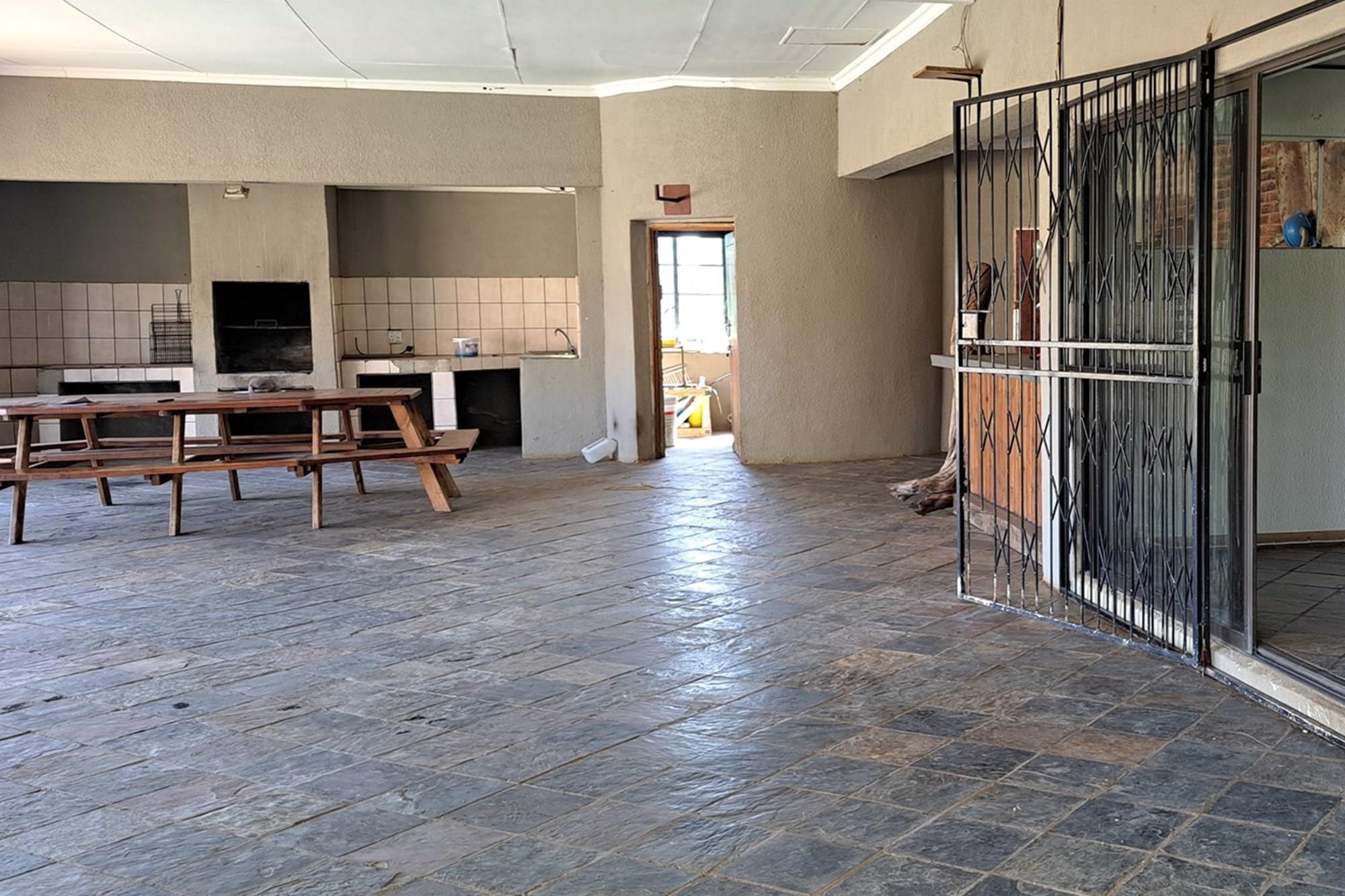 Swimming pool and large underroof entertainment area with built-in braai and basin.