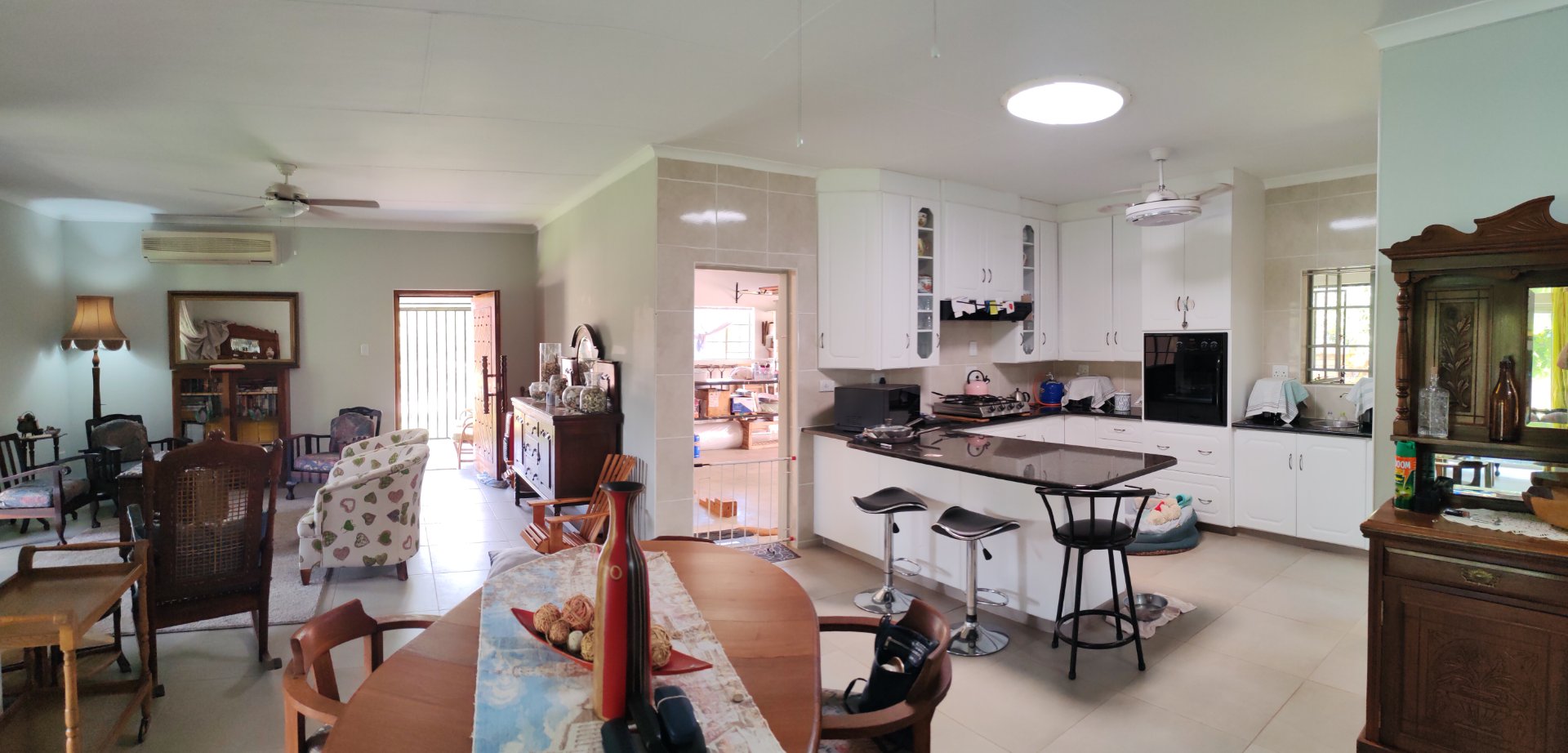 Open-plan lounge, dining room, and kitchen.