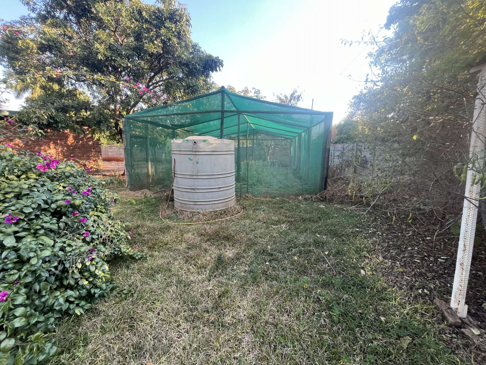 Additional features include a storeroom, 3 garages, and a shade-net carport for 3 vehicles. The property is equipped with a borehole, a 2,500L water tank, and has lemon trees. The paved driveway ensures low maintenance, while the spacious grounds offer plenty of room for a vegetable garden or further development.