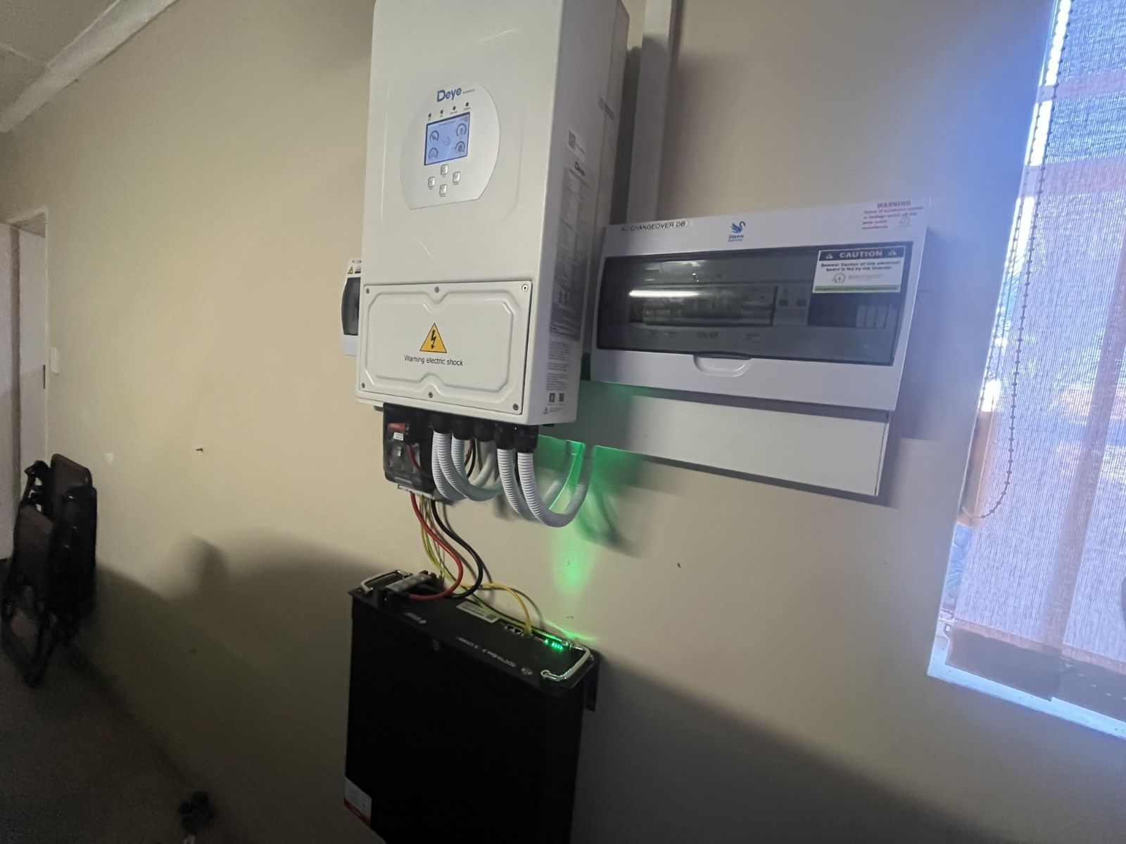 This home is equipped with a 5kVA inverter, six solar panels, and a lithium battery for reliable backup power. A 2000-liter water tank with pressure pump ensures efficient water usage.
