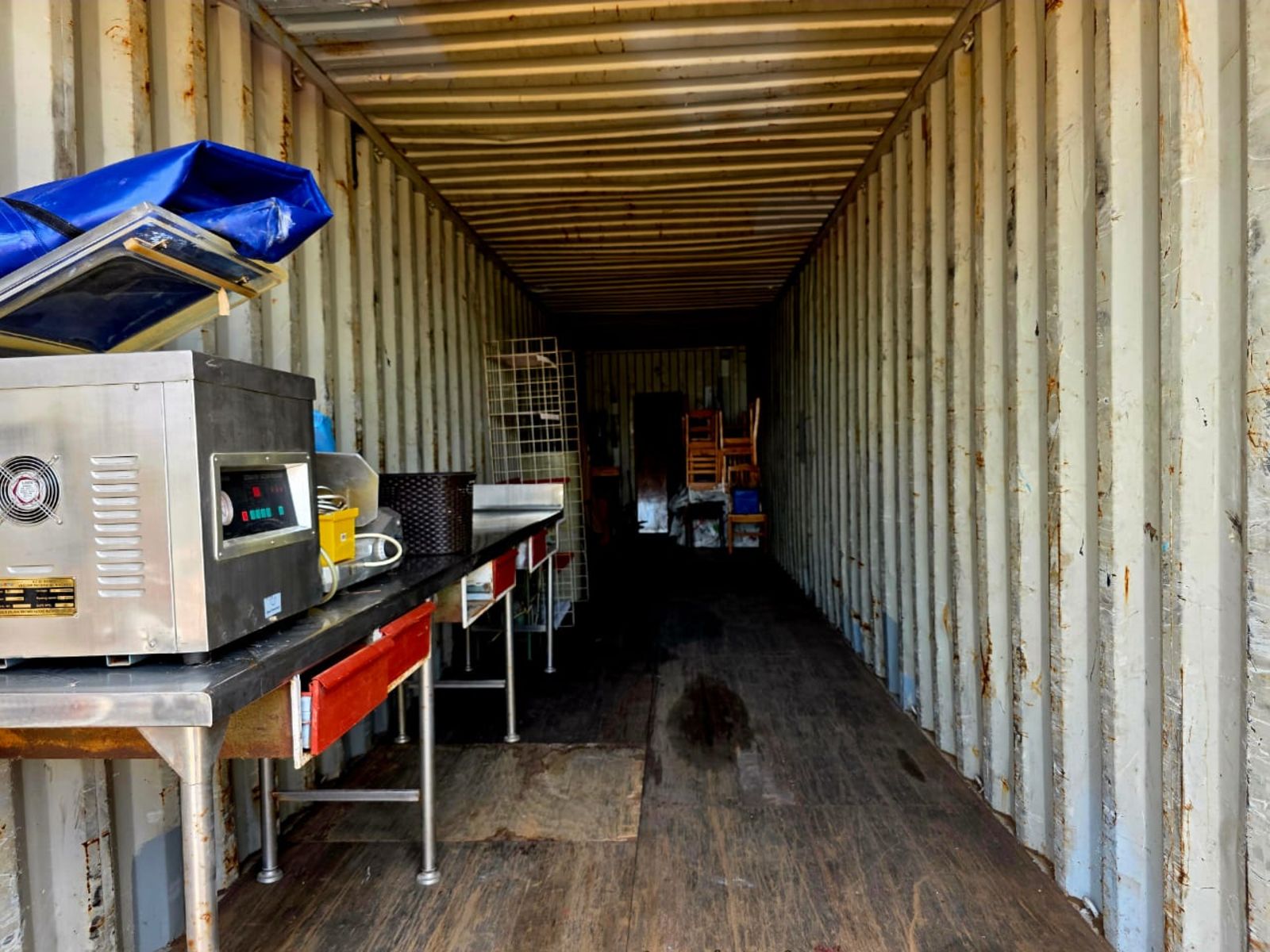 Open Store (100m2) with 2.5x22m container for secure storage.