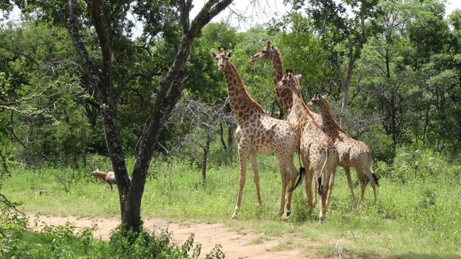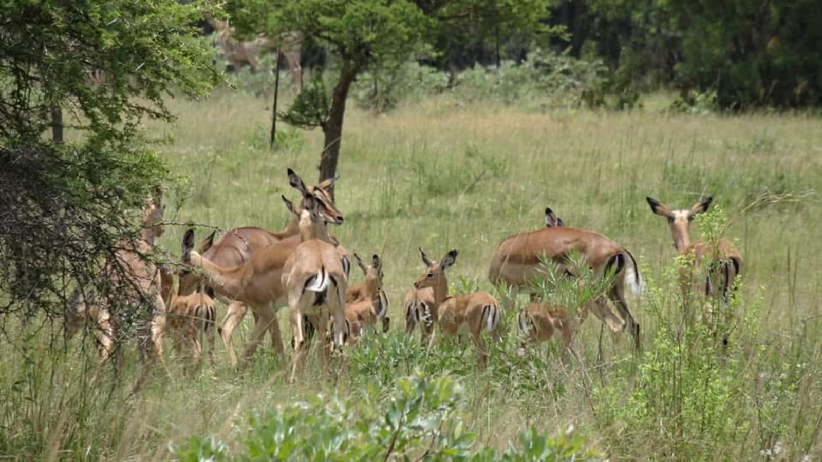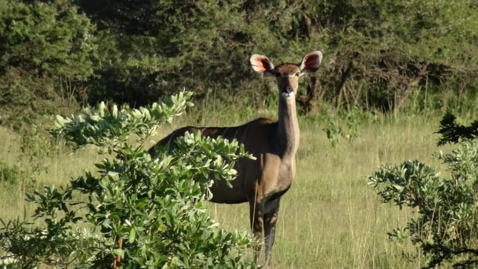 3 Giraffes , 5 Zebras , 4 Blue wildebeest ,35 Impalas, 5 Blesbuck , 2 Nyalas , 4 Kudus . There are also some free-roaming species like bushpig, pangolin, aardvark, duiker, klipspringer and some lovely birds.