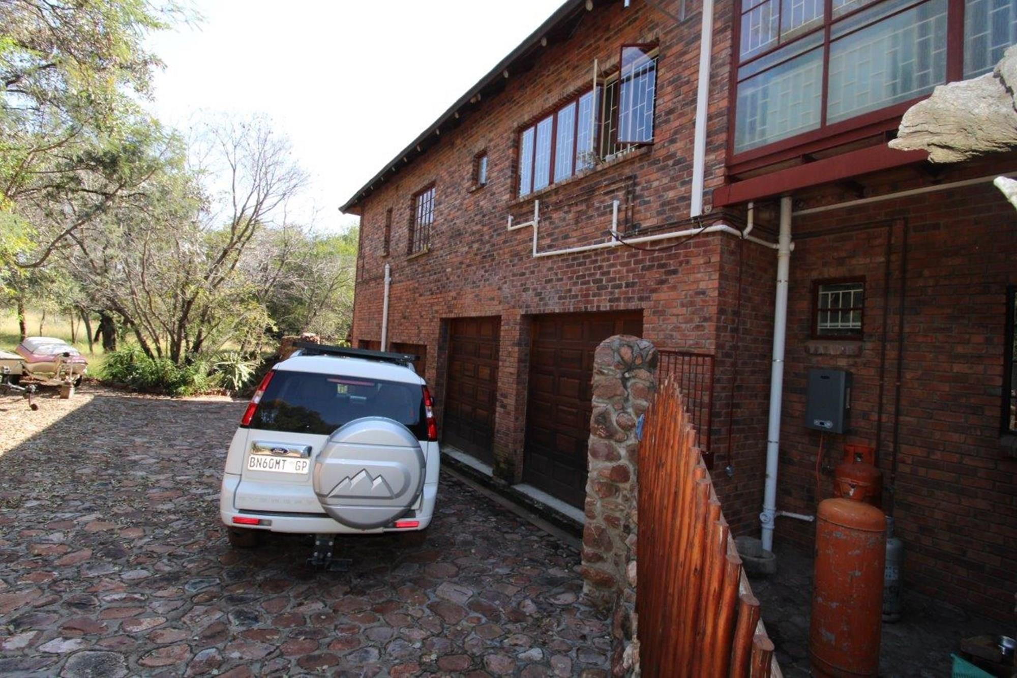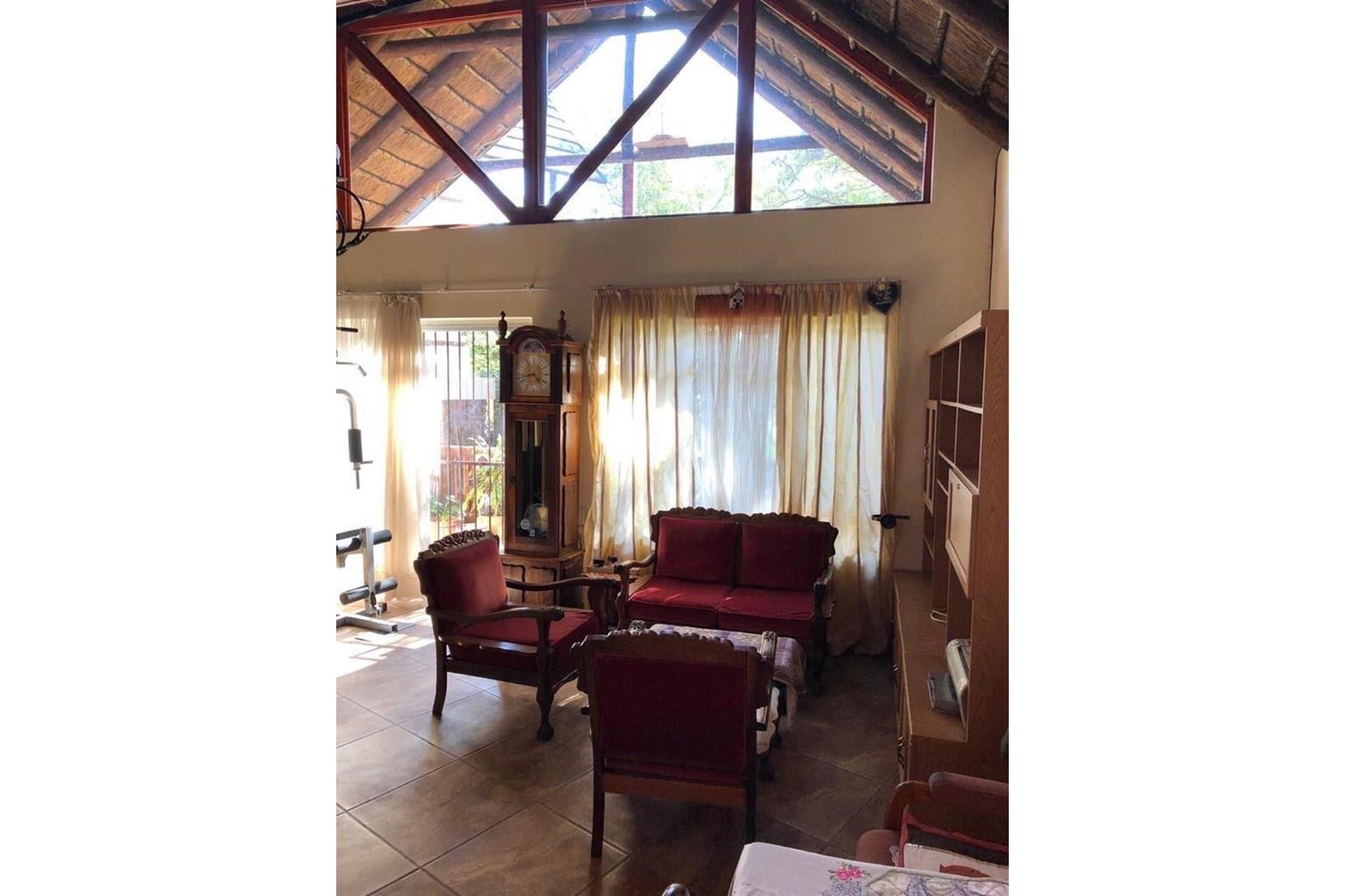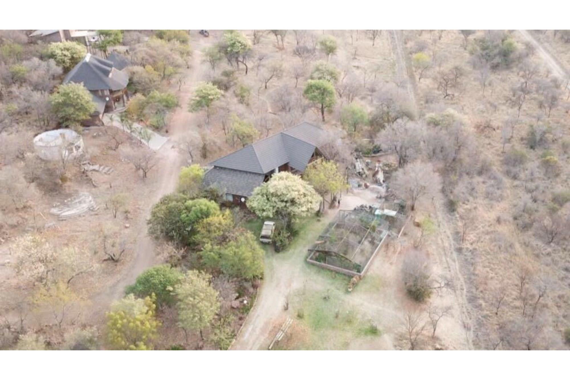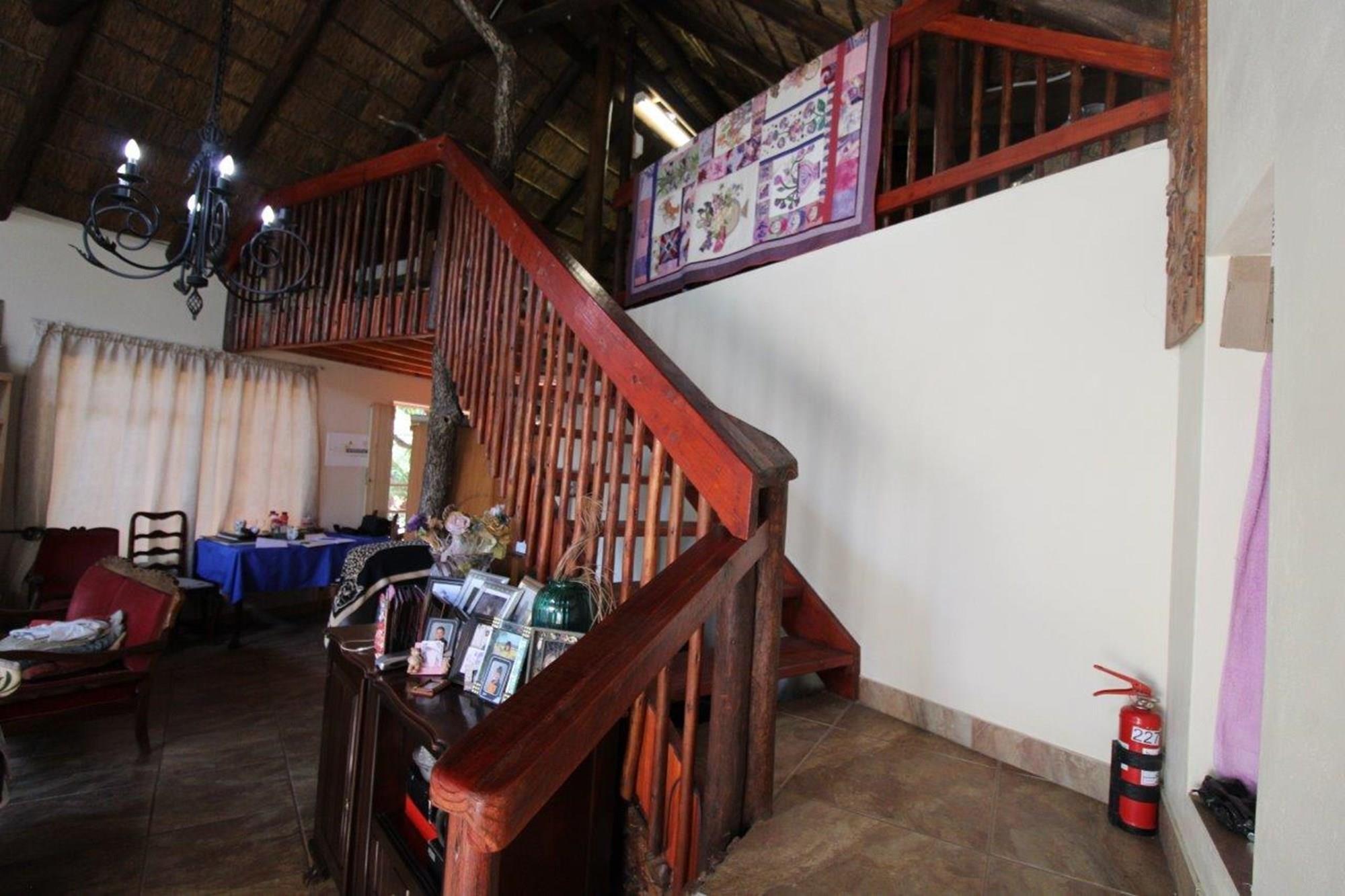 This large house is an absolute bargain in the beautiful Pulani Park reserve only 12 km from Naboomspruit in Limpopo. If peace and tranquility is important to you, you found the right destination. The main house is on the first floor with an open plan lounge, dining room and kitchen with pantry. The house includes 3 bedrooms (one currently used as a sewing room) and two bathrooms. The main bedroom with en-suite bathroom with shower, bath, toilet and double vanity. Study. Four garages with automated doors and one extra high door for caravan or game viewing vehicle.