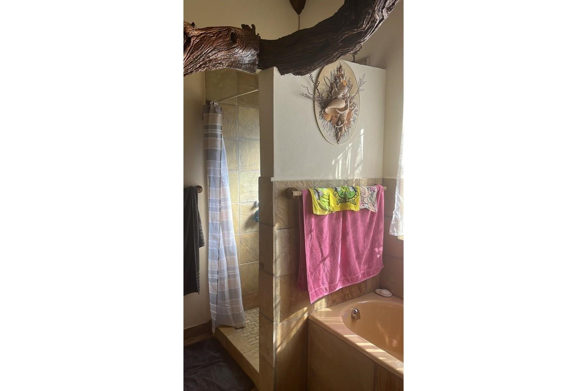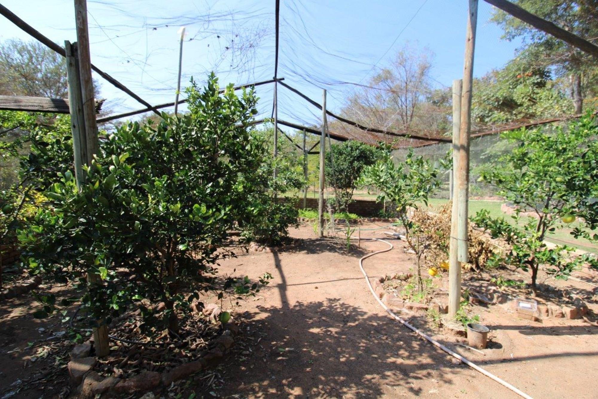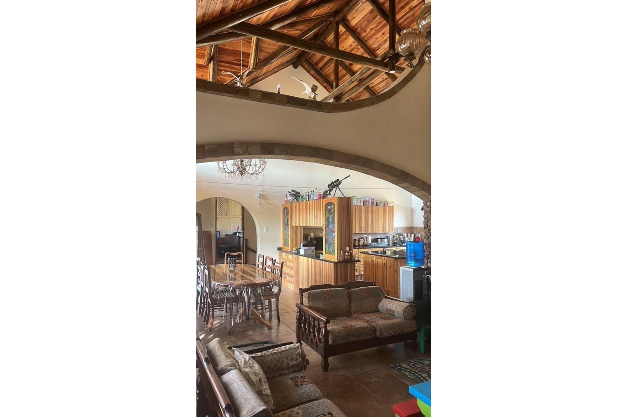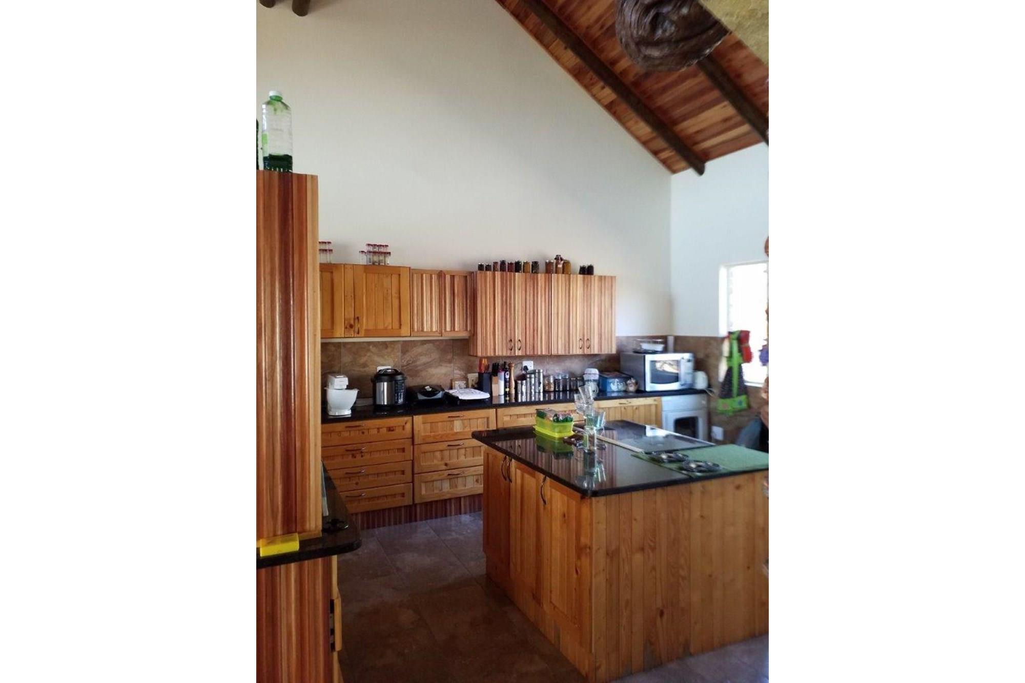 This large house is an absolute bargain in the beautiful Pulani Park reserve only 12 km from Naboomspruit in Limpopo. If peace and tranquility is important to you, you found the right destination. The main house is on the first floor with an open plan lounge, dining room and kitchen with pantry. The house includes 3 bedrooms (one currently used as a sewing room) and two bathrooms. The main bedroom with en-suite bathroom with shower, bath, toilet and double vanity. Study. Four garages with automated doors and one extra high door for caravan or game viewing vehicle.
