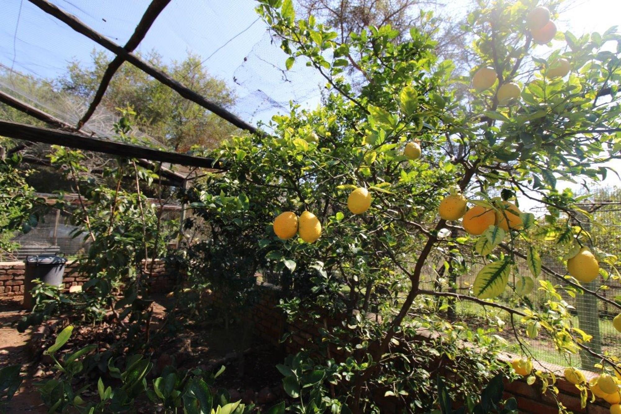 The flat is situated on the ground floor and has two bedrooms and two bathrooms with open plan kitchen and lounge area. One bedroom is on the 1st floor loft area. Secure greenhouse of 150 square meters with a number of citrus trees. Solar system includes a two x 5 kw (Total 10Kw) Inverters with 16 solar panels.